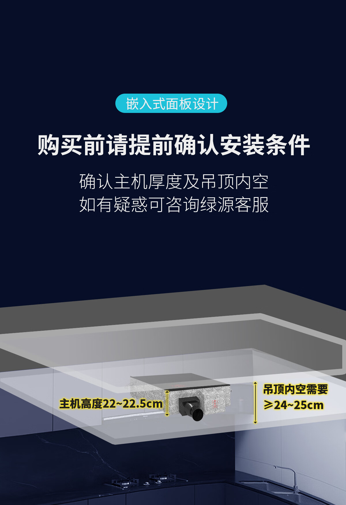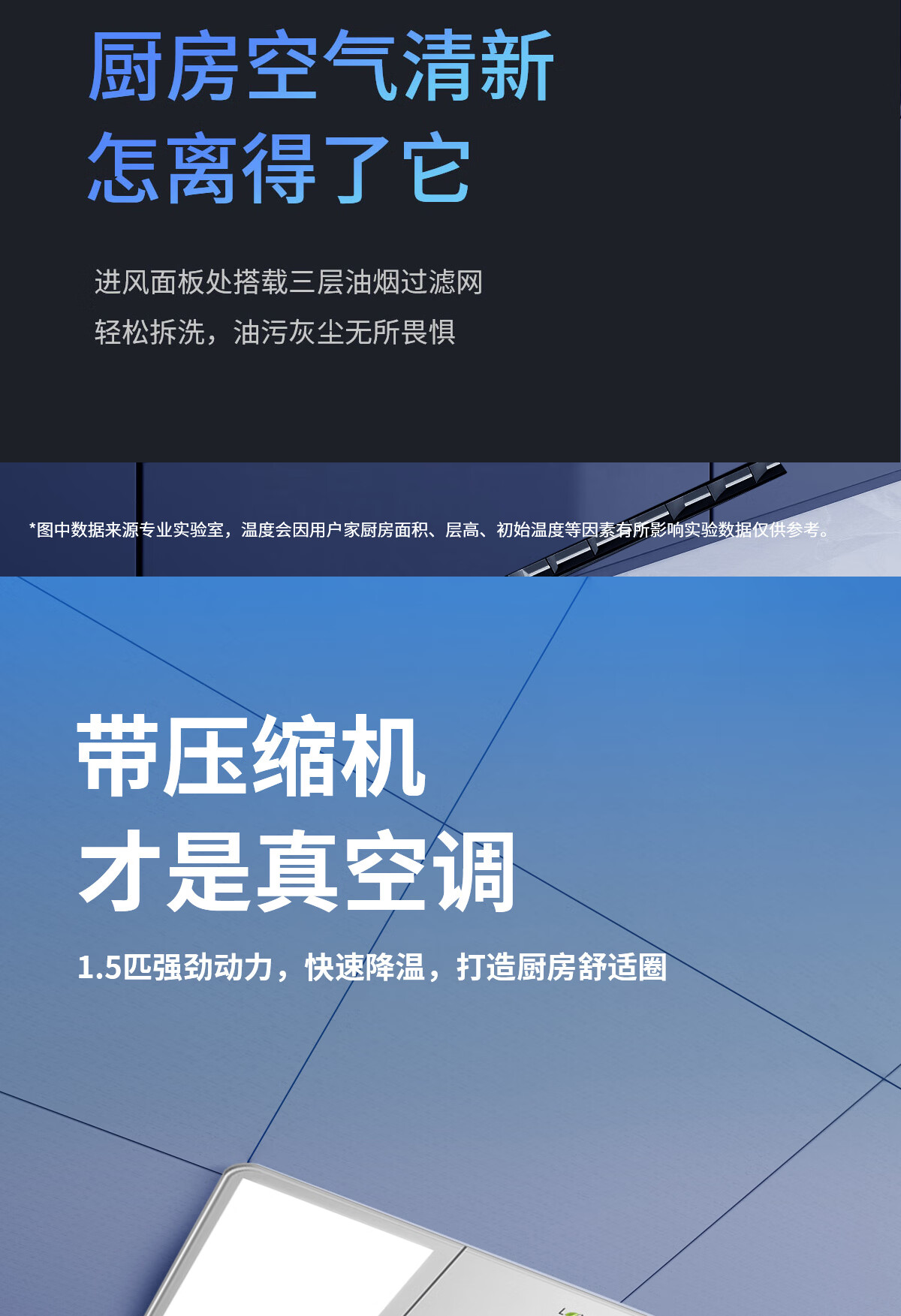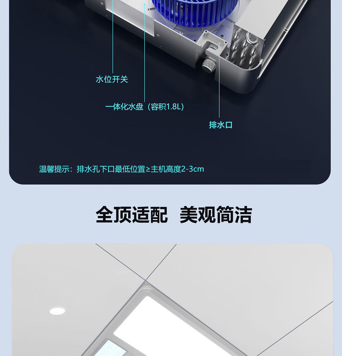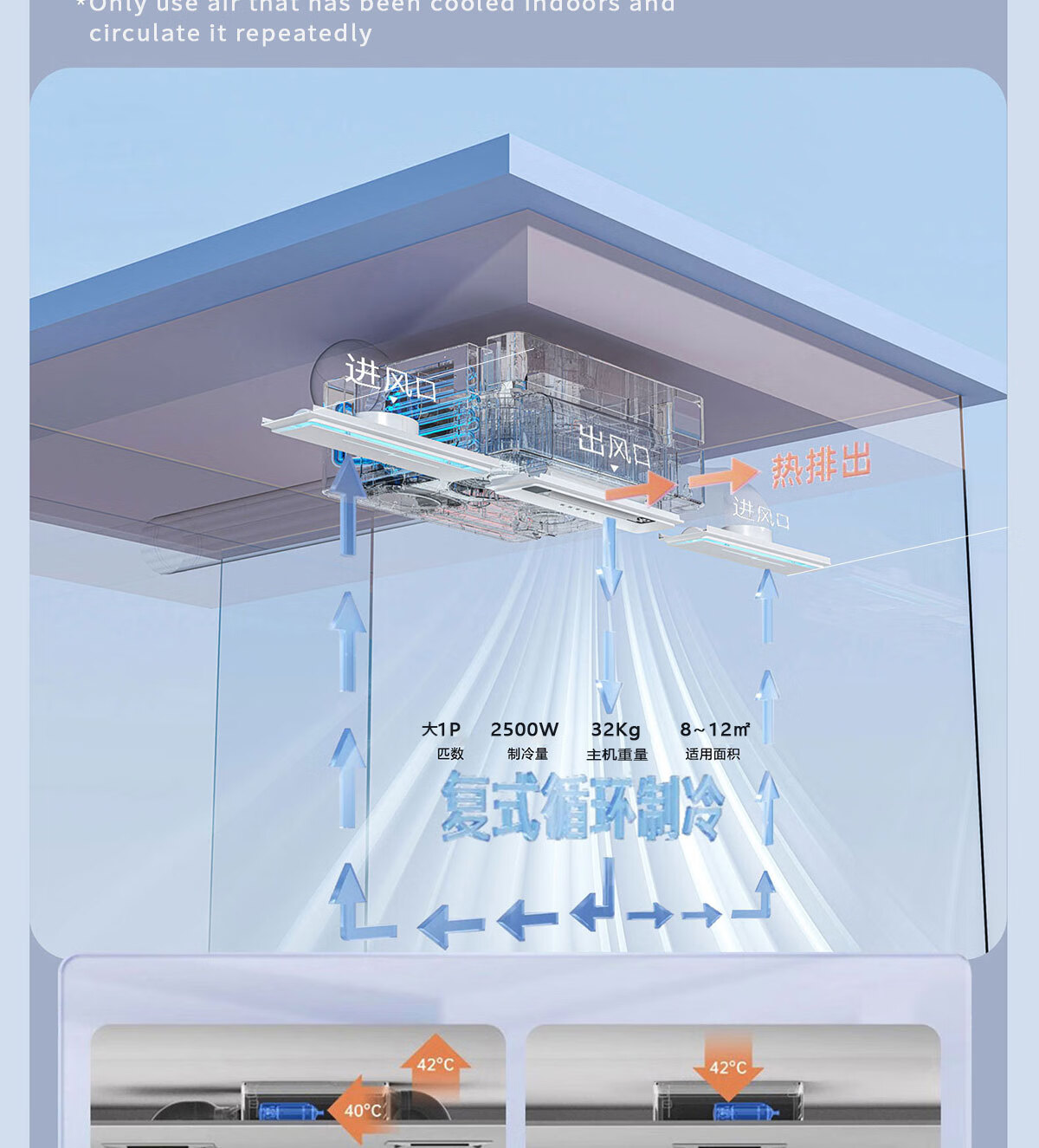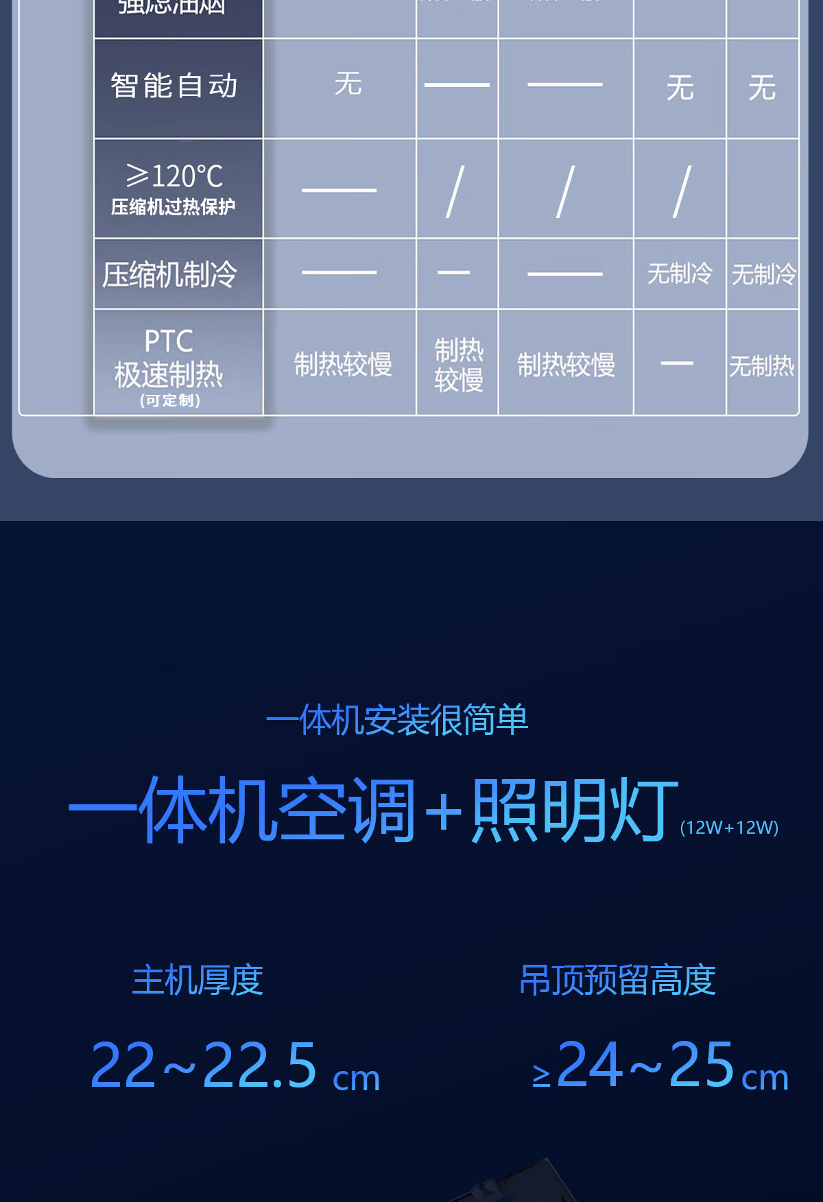 LVYUAN large kitchen single-cooling air conditioner, hidden all-in-one unit, large 1P, 2500W strong cooling capacity, lighting + dehumidification dual functions, no external unit, space-saving ceiling unit, large 1 piece set, lighting + cooling capacity 2500W-2 holes, T10 (single cooling)