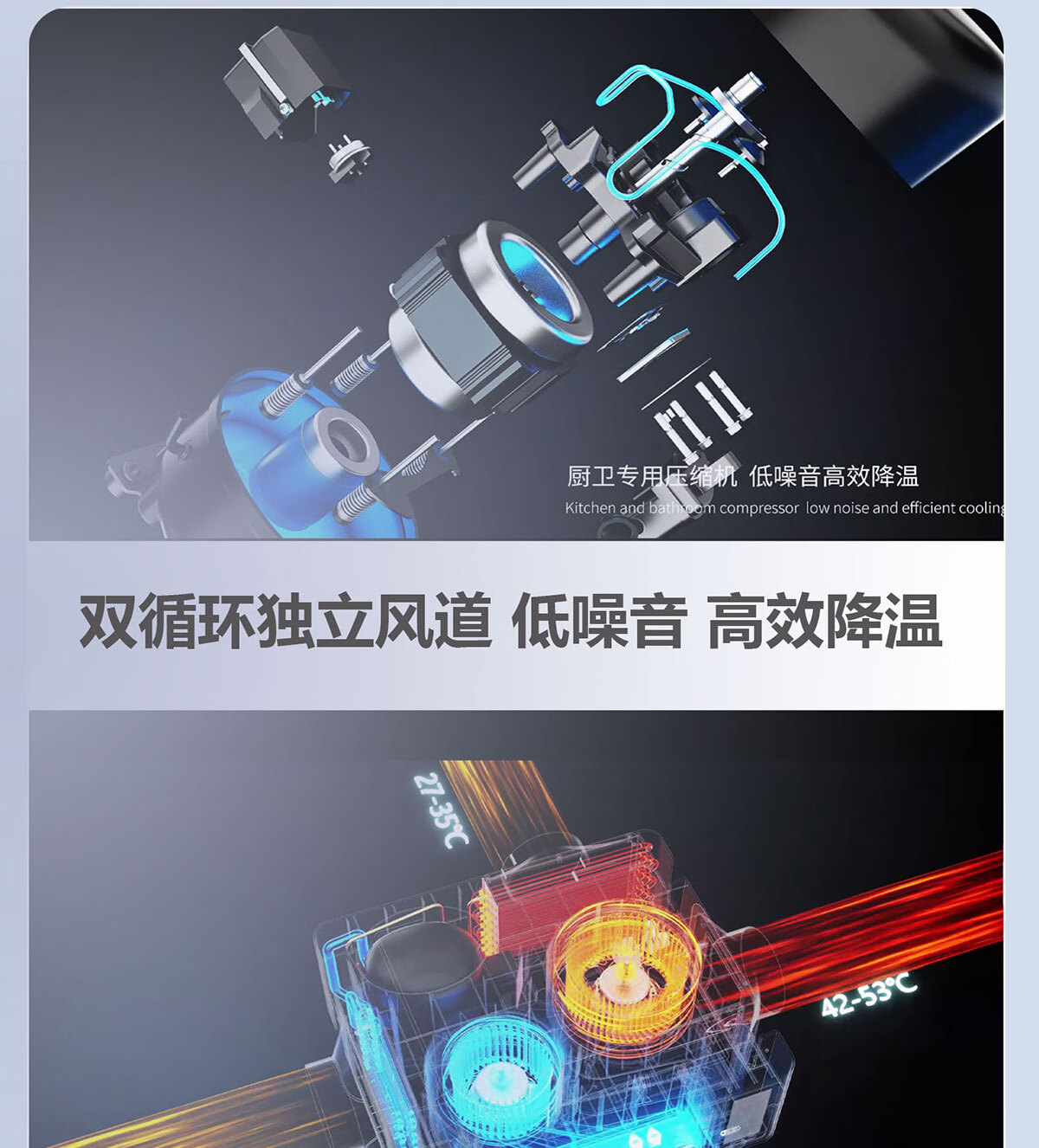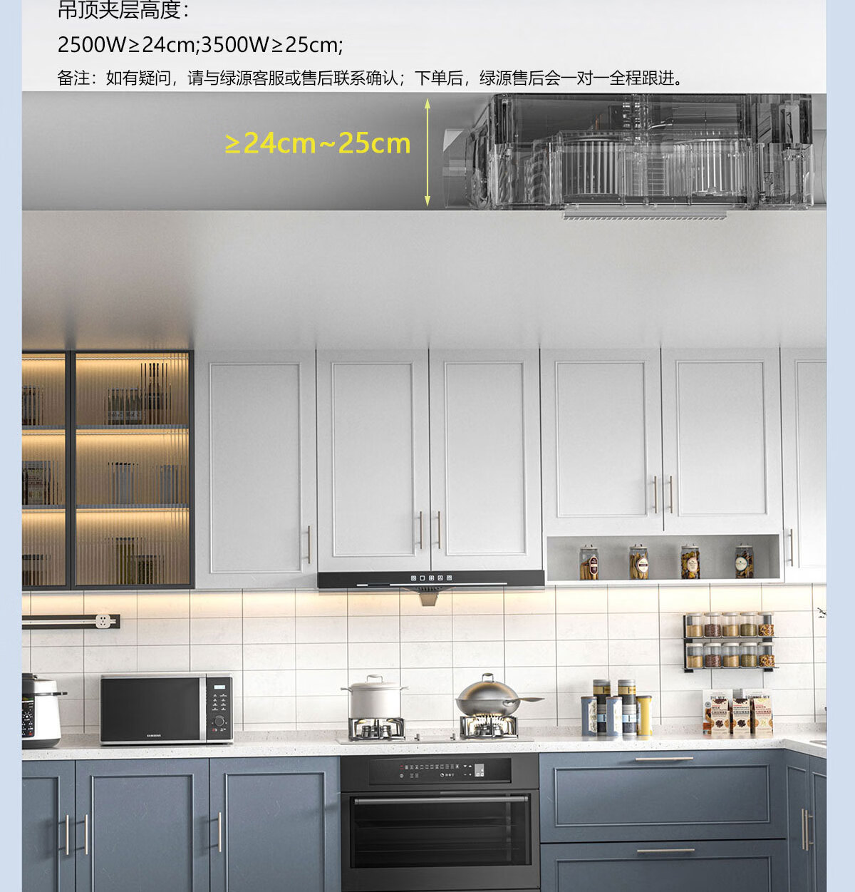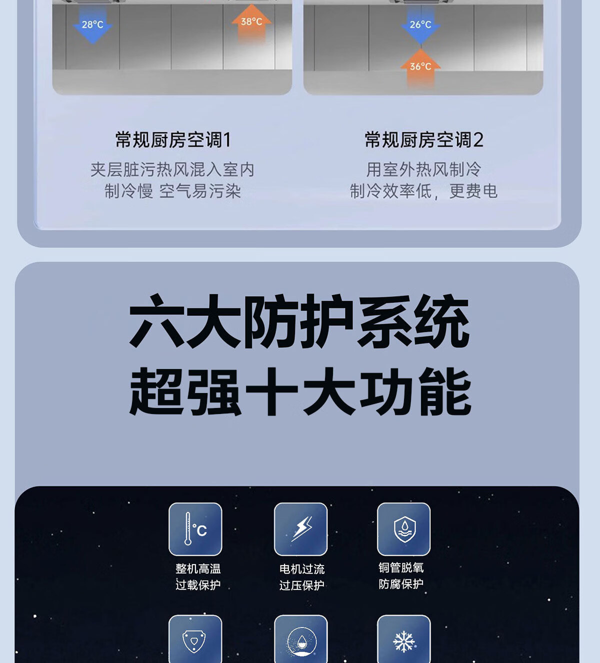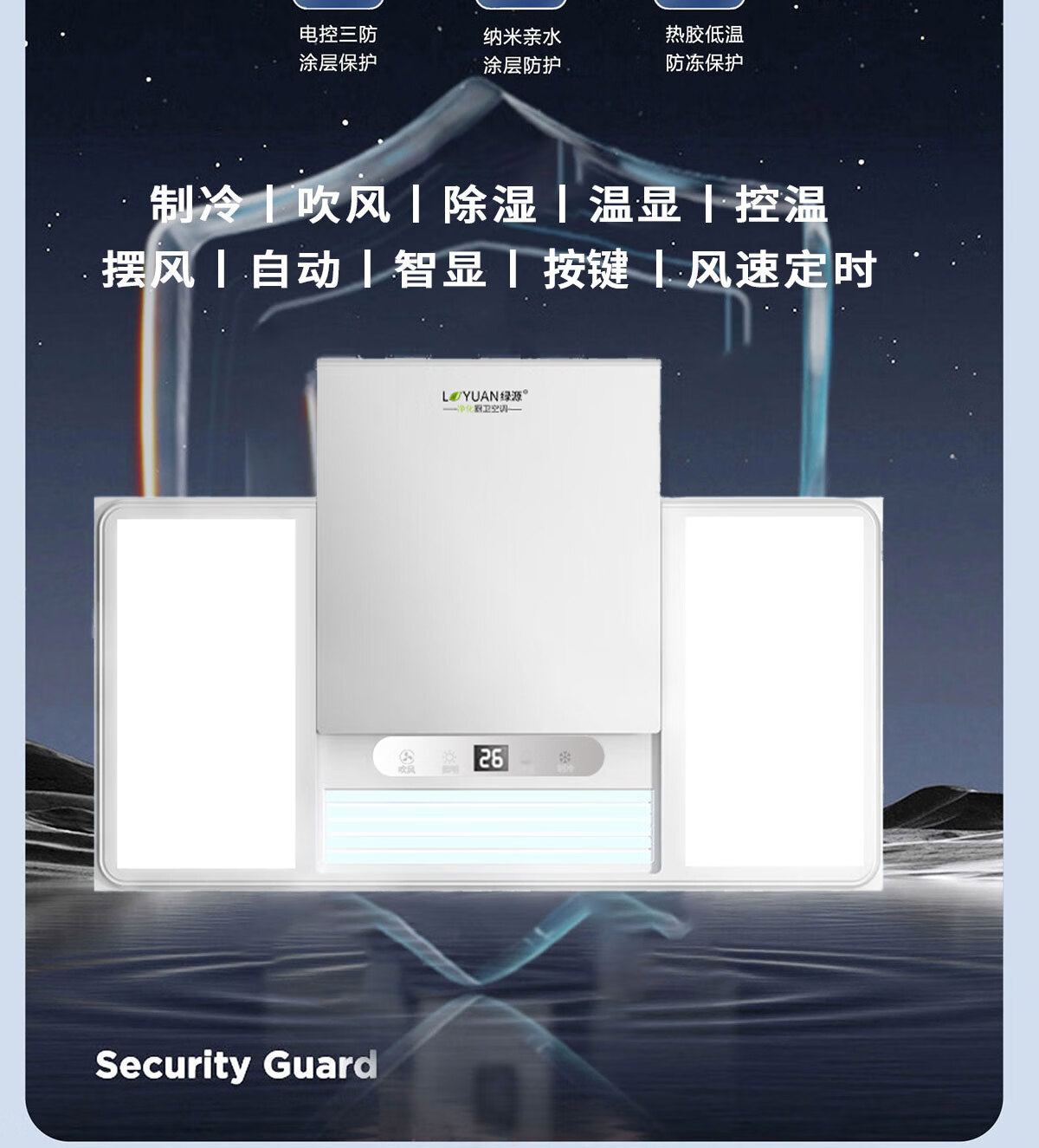 LVYUAN large kitchen single-cooling air conditioner, hidden all-in-one unit, large 1P, 2500W strong cooling capacity, lighting + dehumidification dual functions, no external unit, space-saving ceiling unit, large 1 piece set, lighting + cooling capacity 2500W-2 holes, T10 (single cooling)