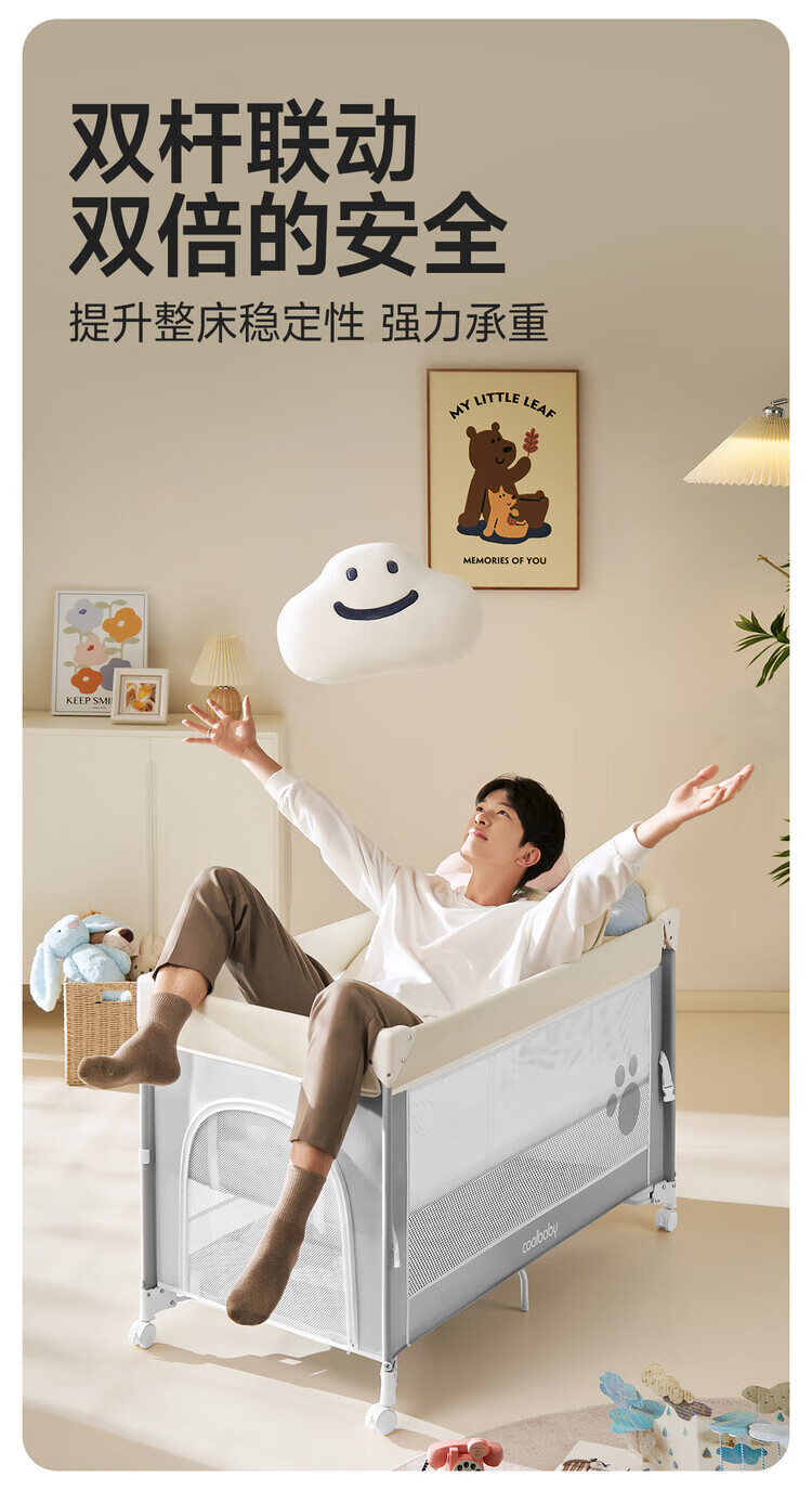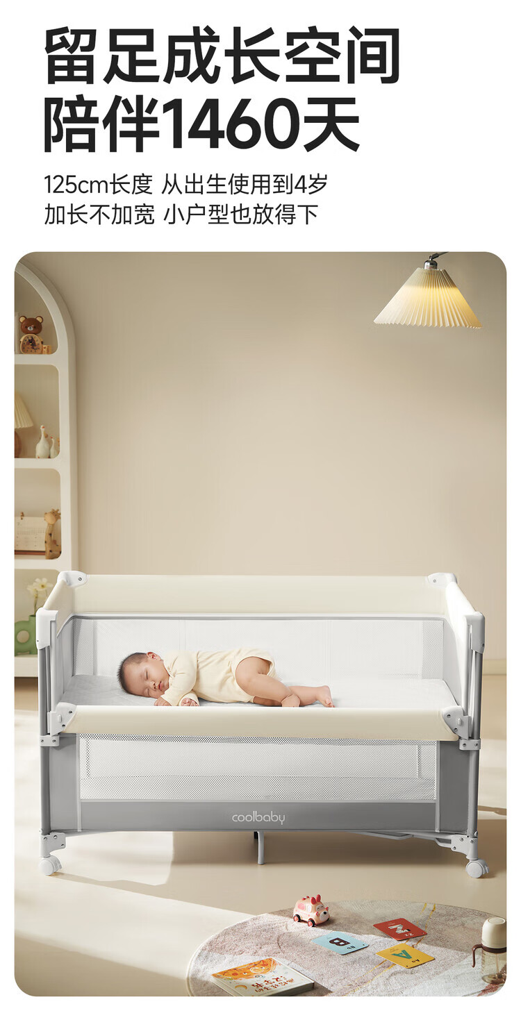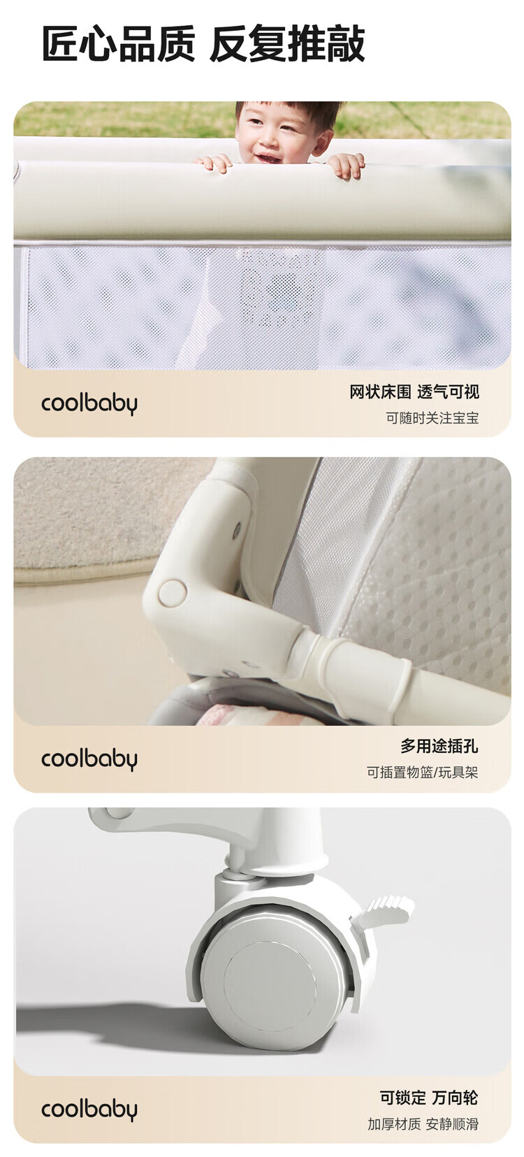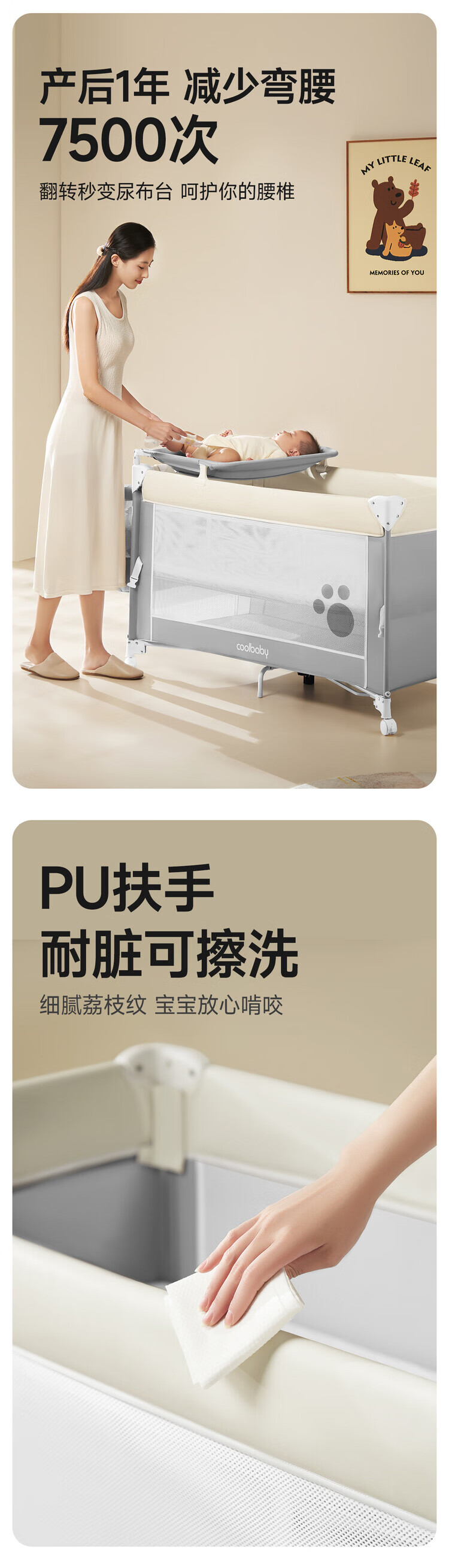 Coolbaby coolbaby baby crib adjustable height removable splicing bed baby multi-functional folding diaper table custard rice luxury model