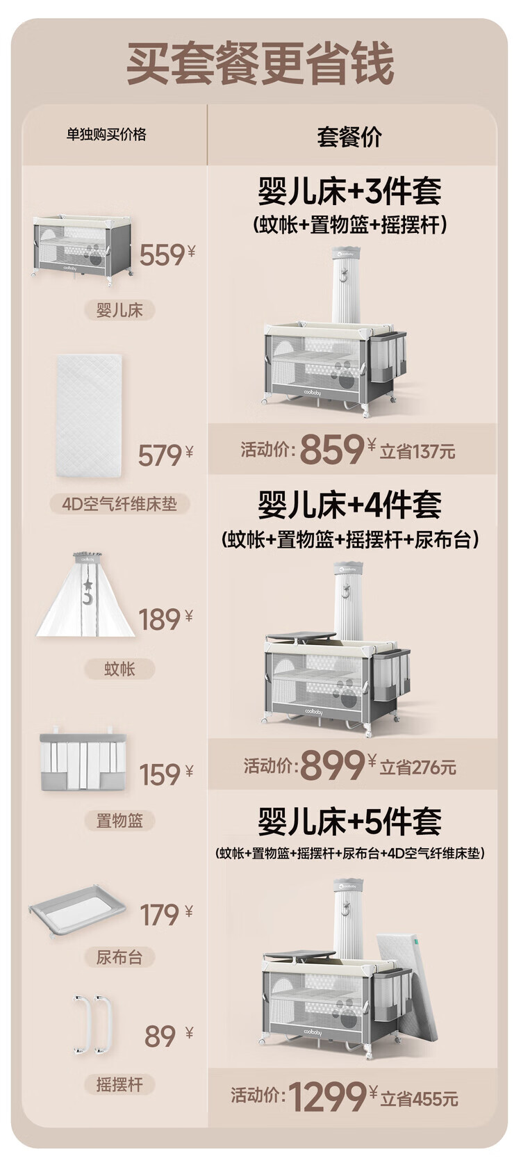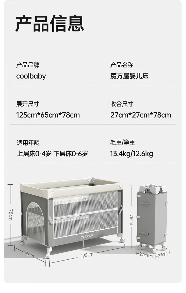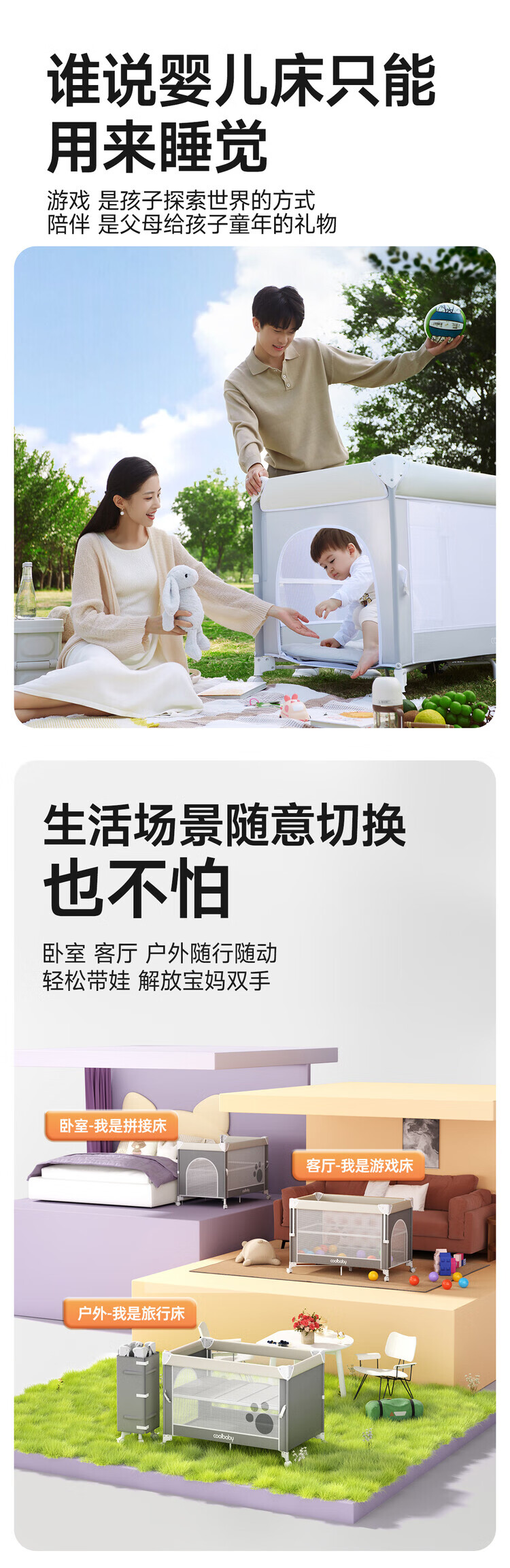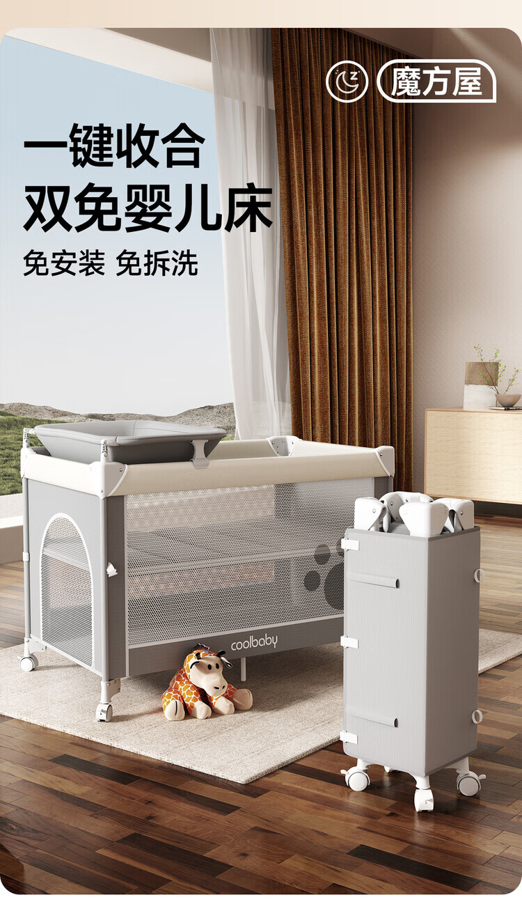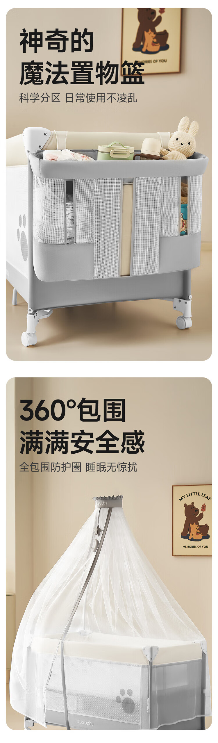 Coolbaby coolbaby baby crib adjustable height removable splicing bed baby multi-functional folding diaper table custard rice luxury model