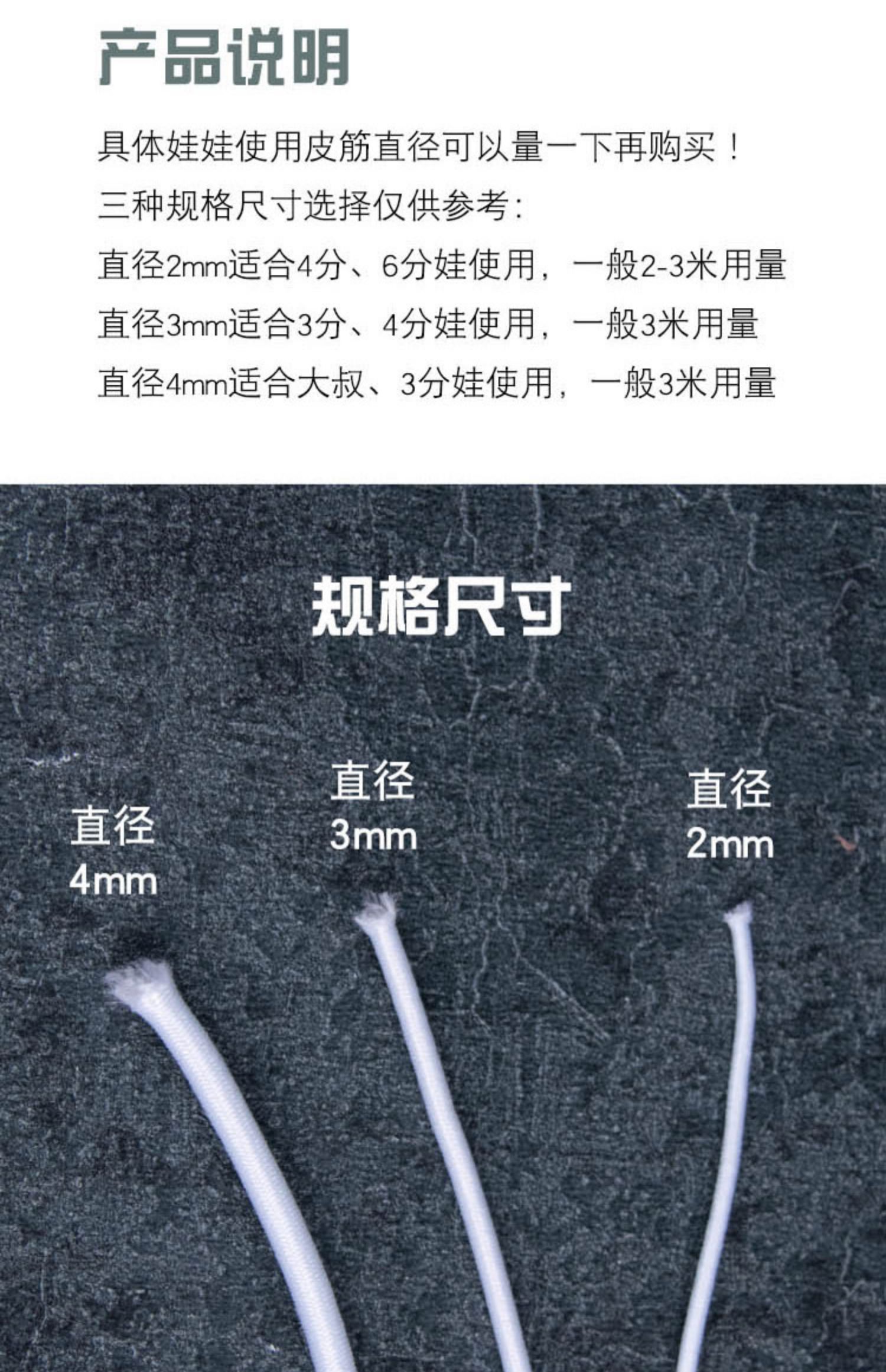 Elastic rope rubber band diameter 234mm 346 cents BJD doll ball joint white 2mm 1/6 baby 3 meters long
