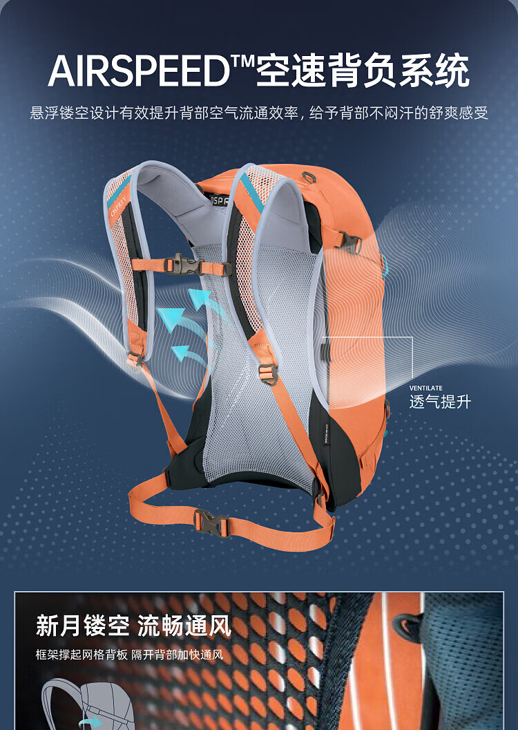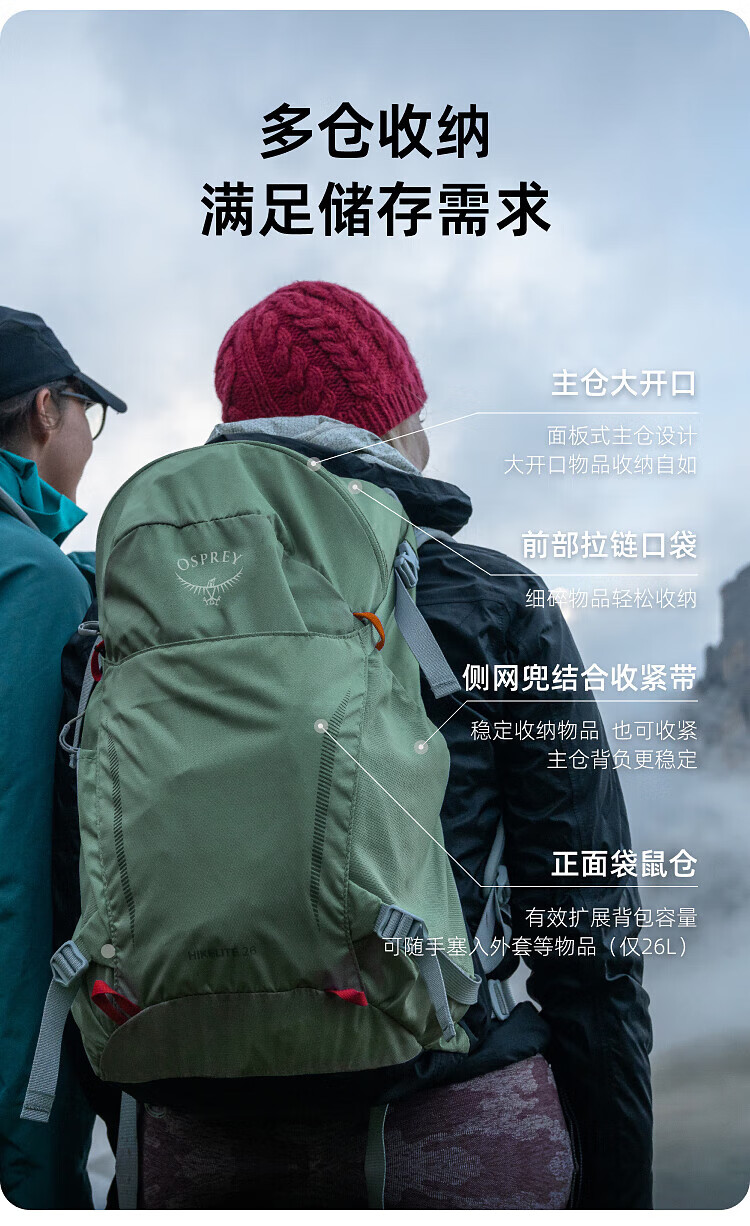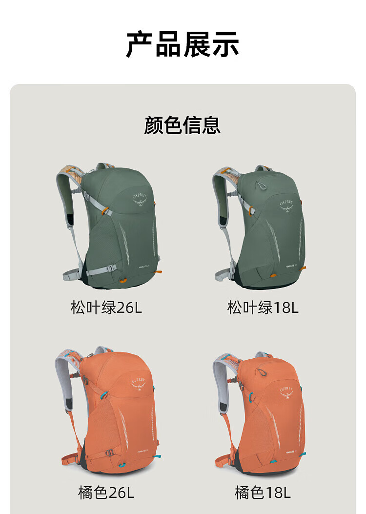 OSPREY HIKELITE 26L Outdoor Backpack Travel Hiking Backpack Comes with Rain Cover Urban Light Outdoor Orange