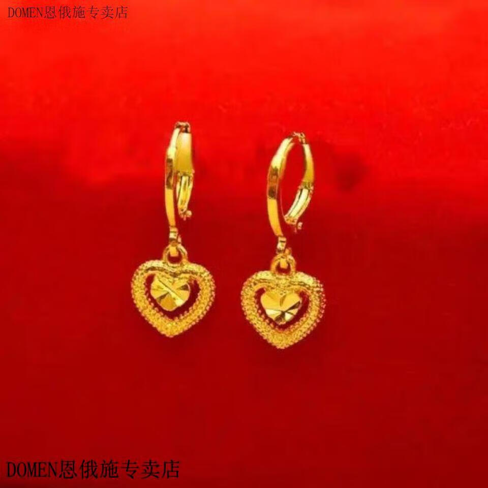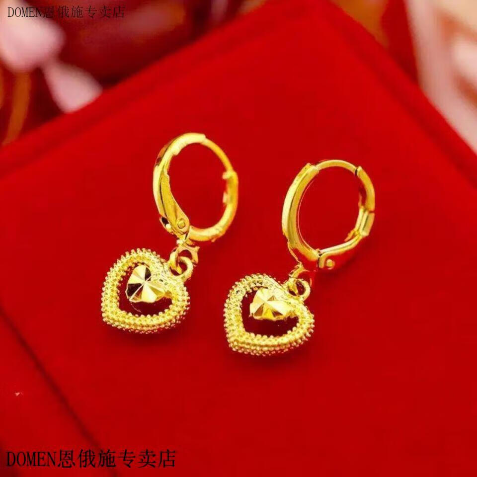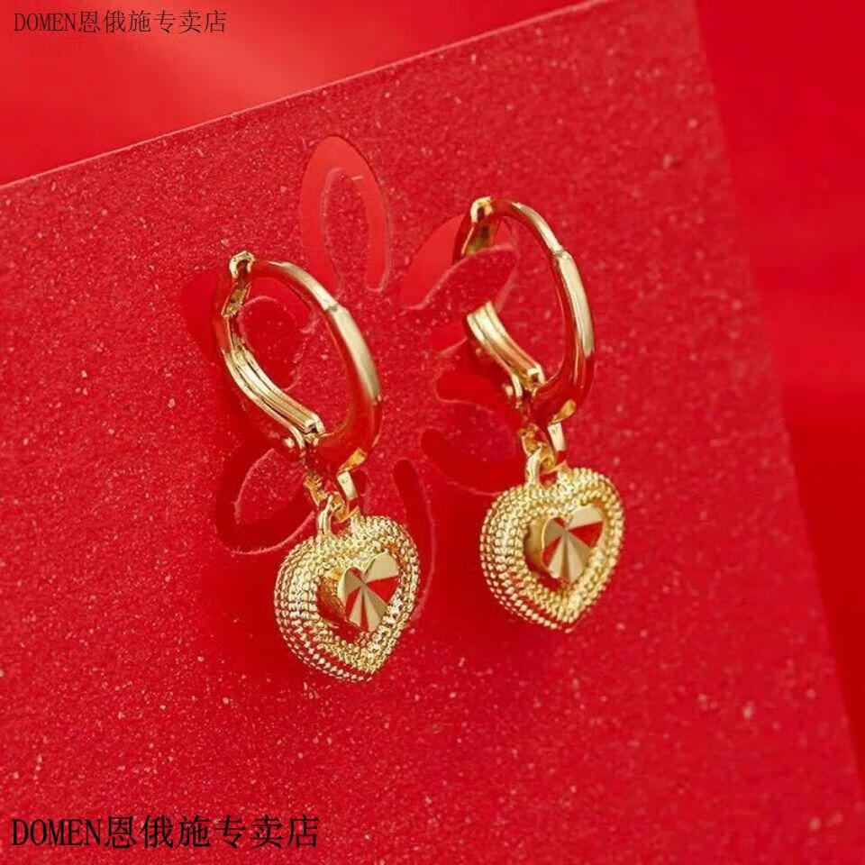 DOMEN Old Phoenix Gold Store Model Imitation 9999 Gold Earrings Women's Love Earrings Temperament Small and Exquisite Earrings Women's 24 Gold Premium Love Earrings