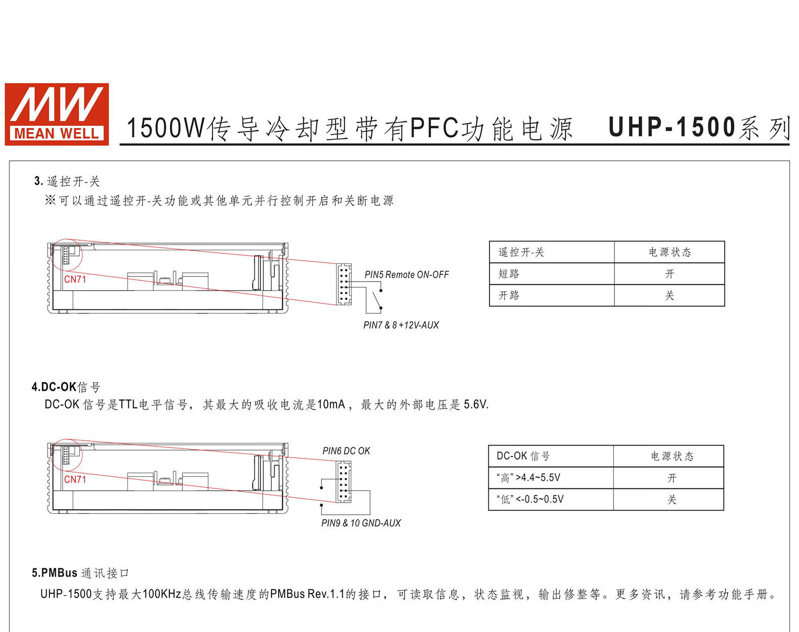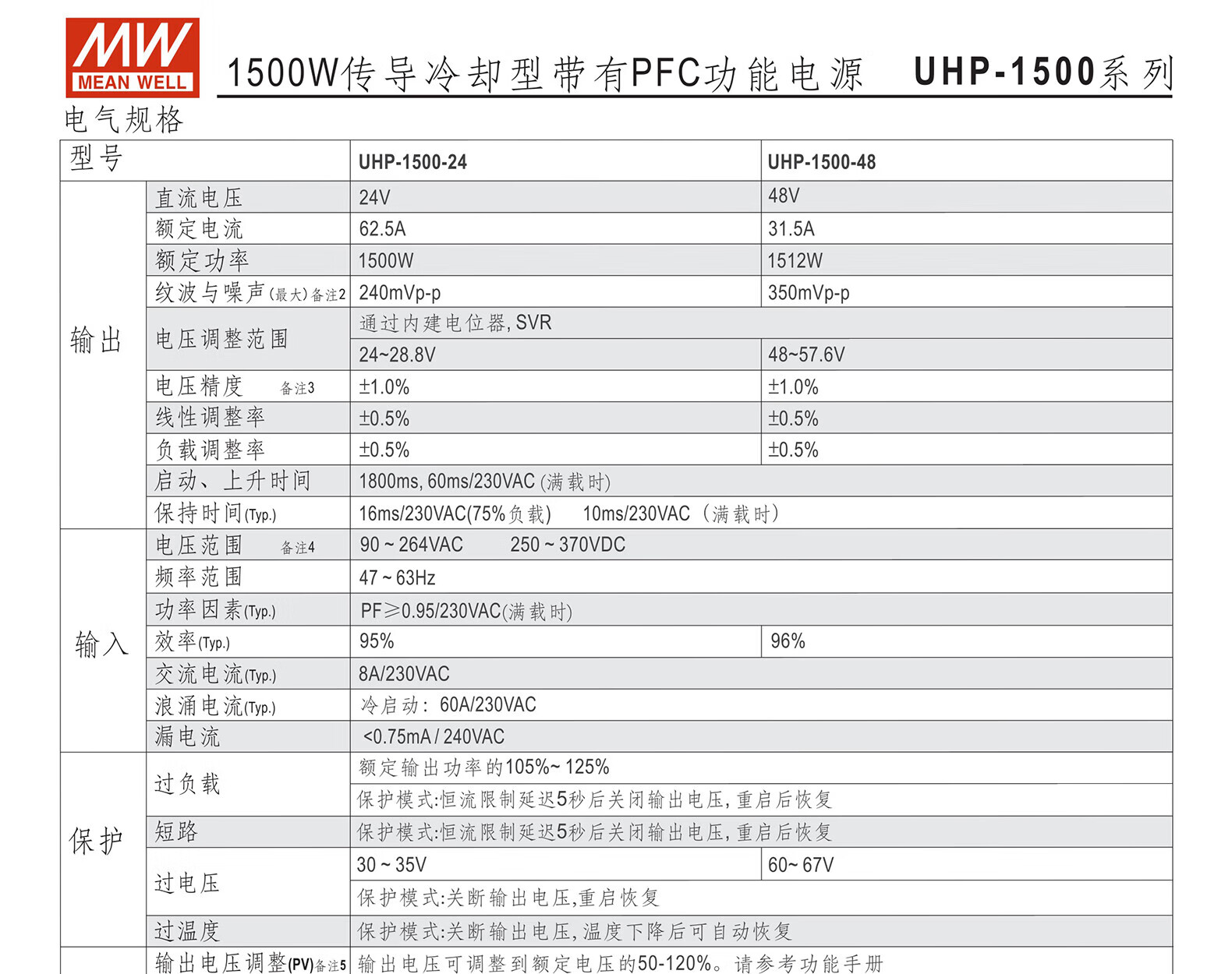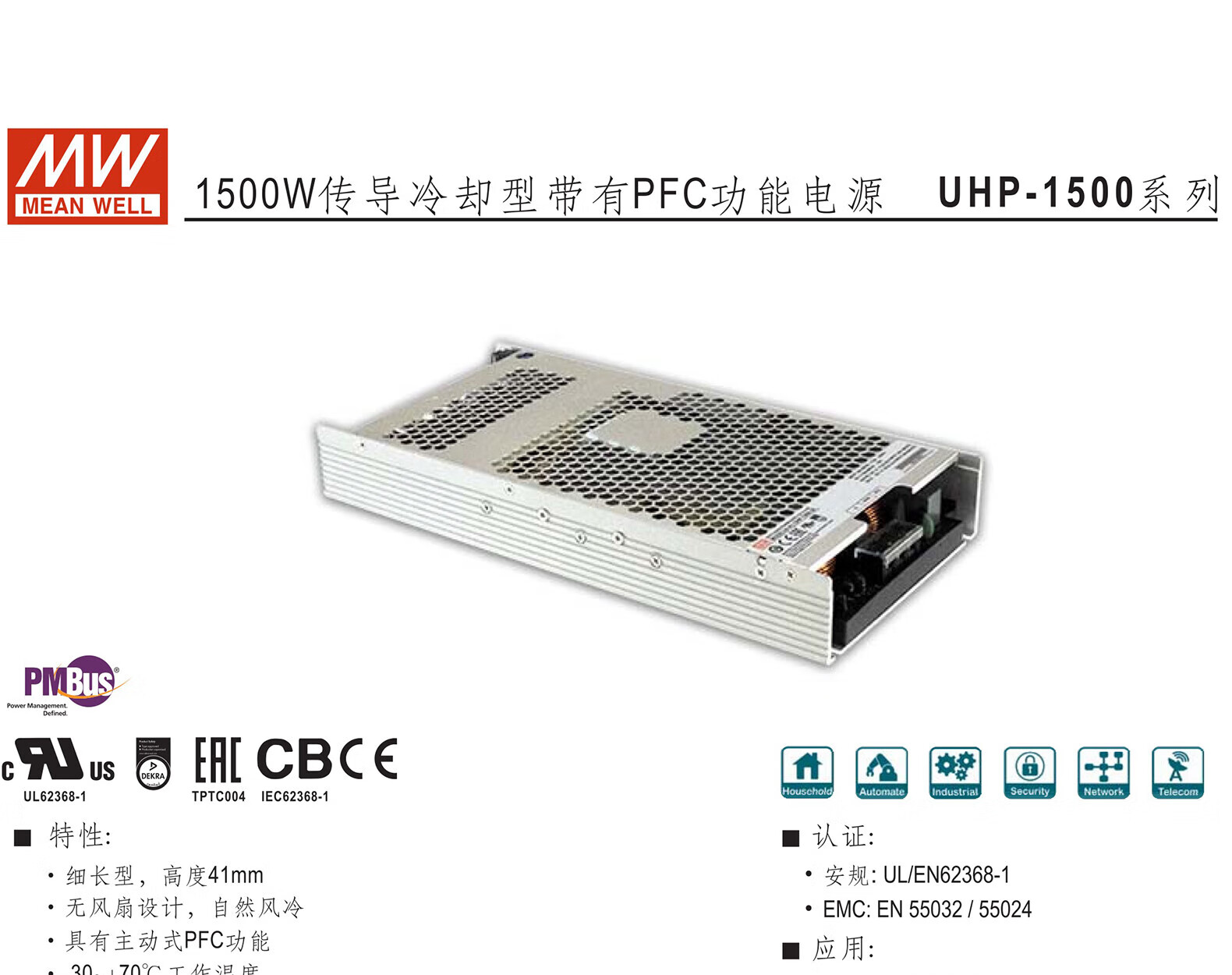 Switching power supply 24V48V1500W single output PFC function fanless RSP UHP-1500-24 24V