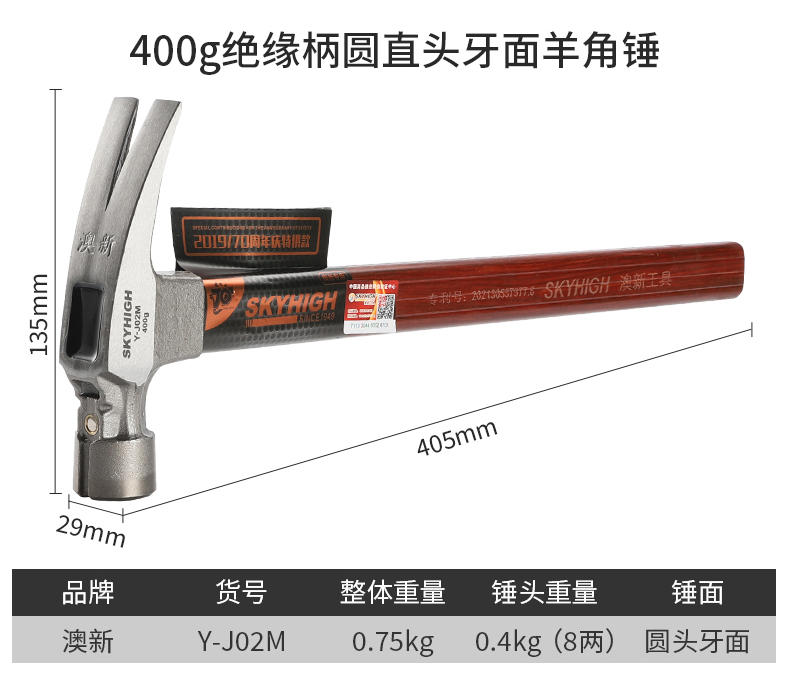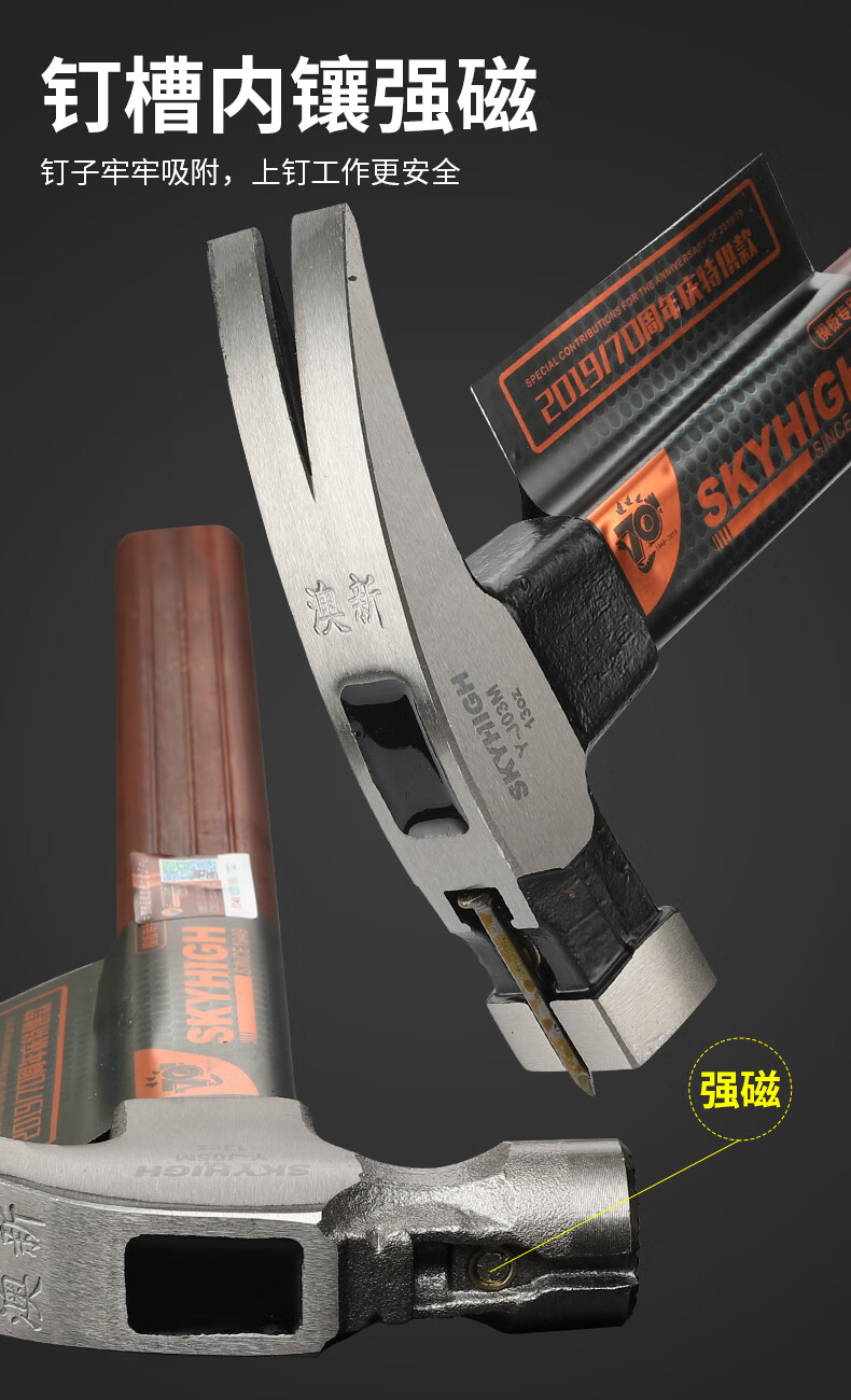 Chengyang Tools Claw Hammer Special Steel Insulated Handle Carpentry Hammer Hammer Subway Hammer Magnetized Pure Steel Nail Hammer Aoxin Special Steel Magnetized Round Head (Flat Hammer Head 8 Liang) Curved Tail