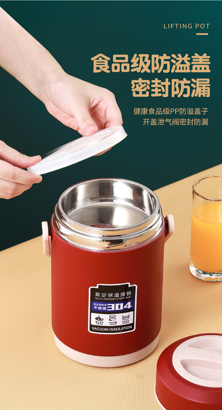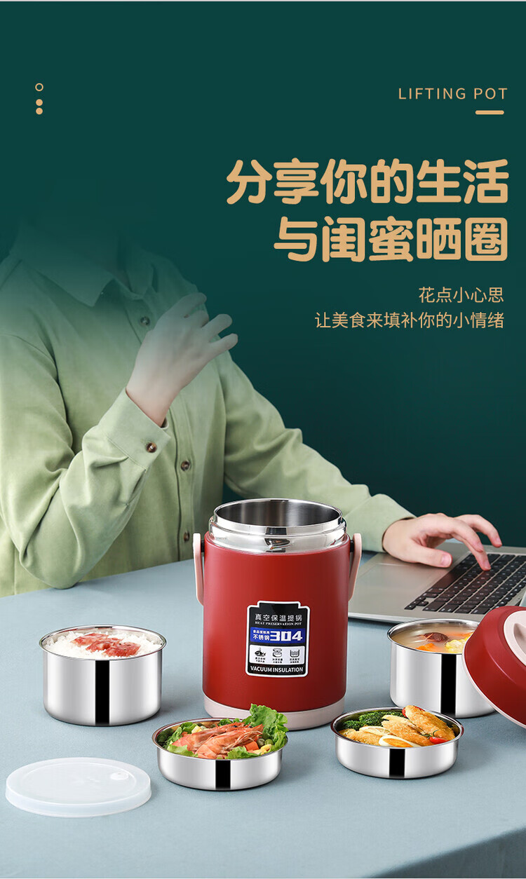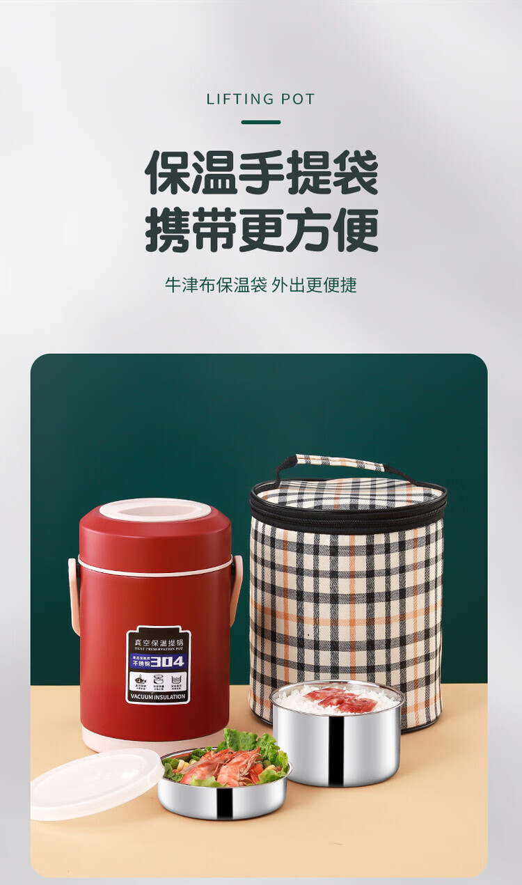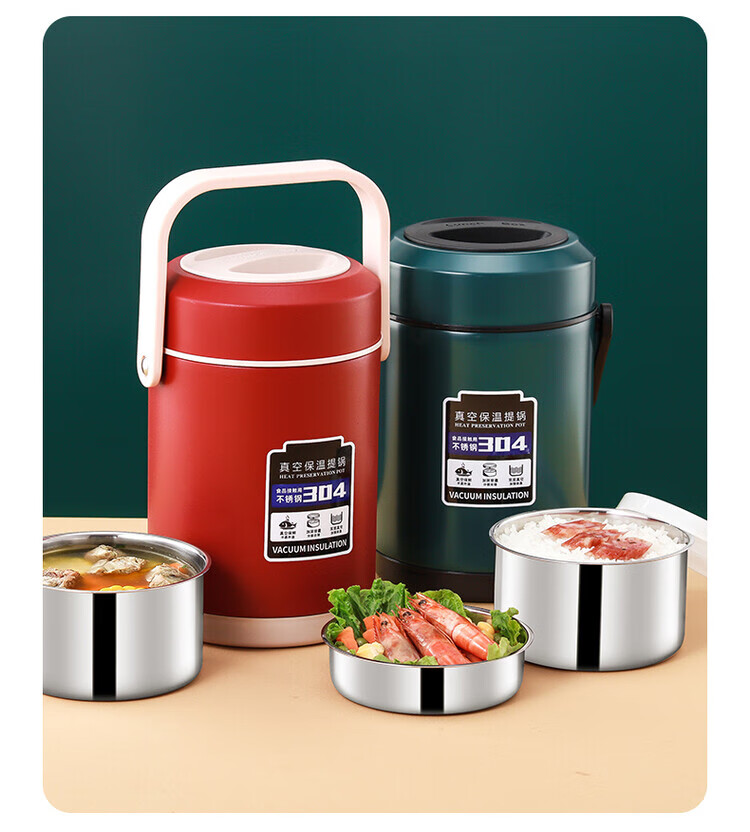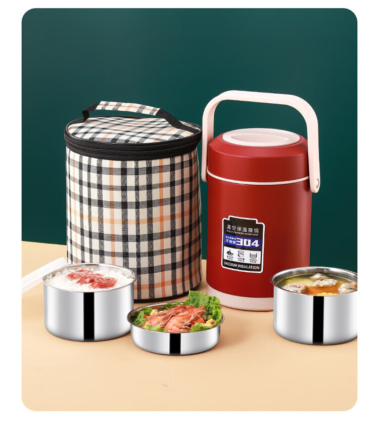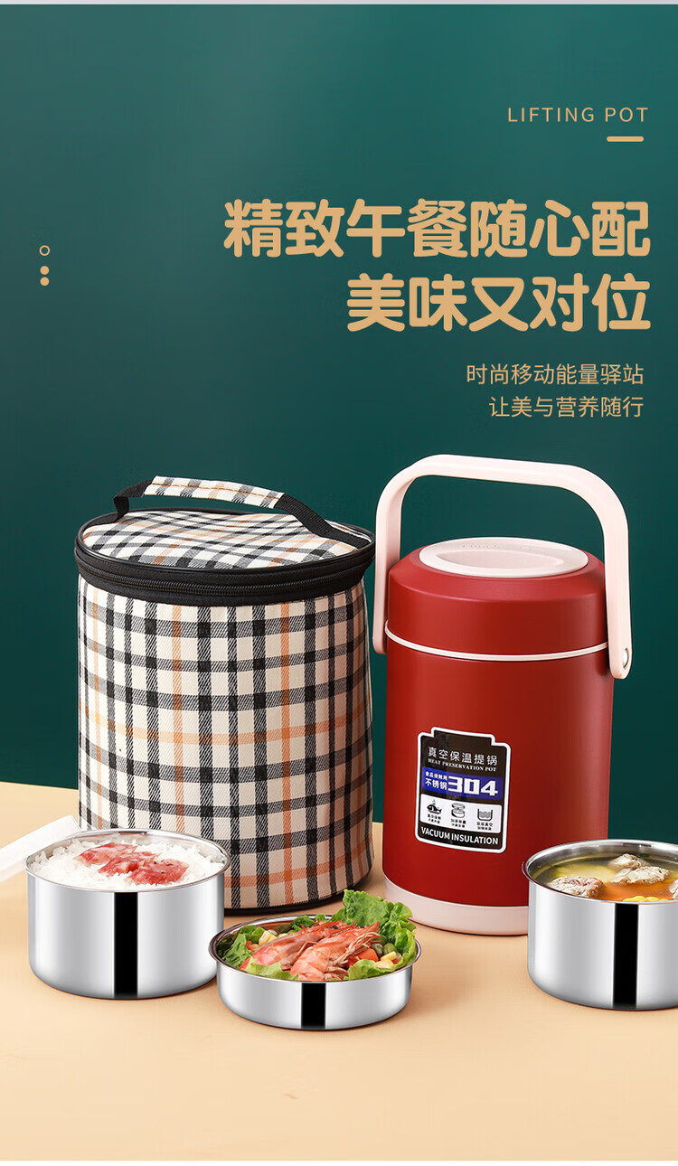 TOZUY Relaxing long-lasting thermal insulation lunch box 304 stainless steel high-looking worker student household lunch box with lid three-layer thermal insulation 1.8L steel gold tableware set