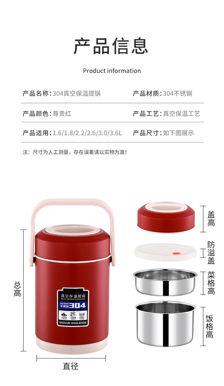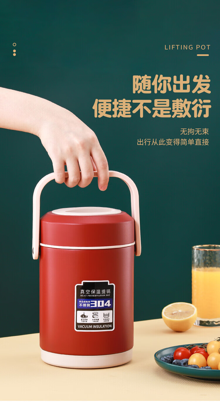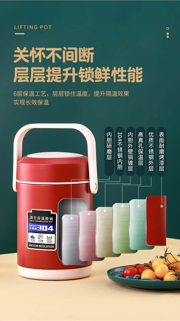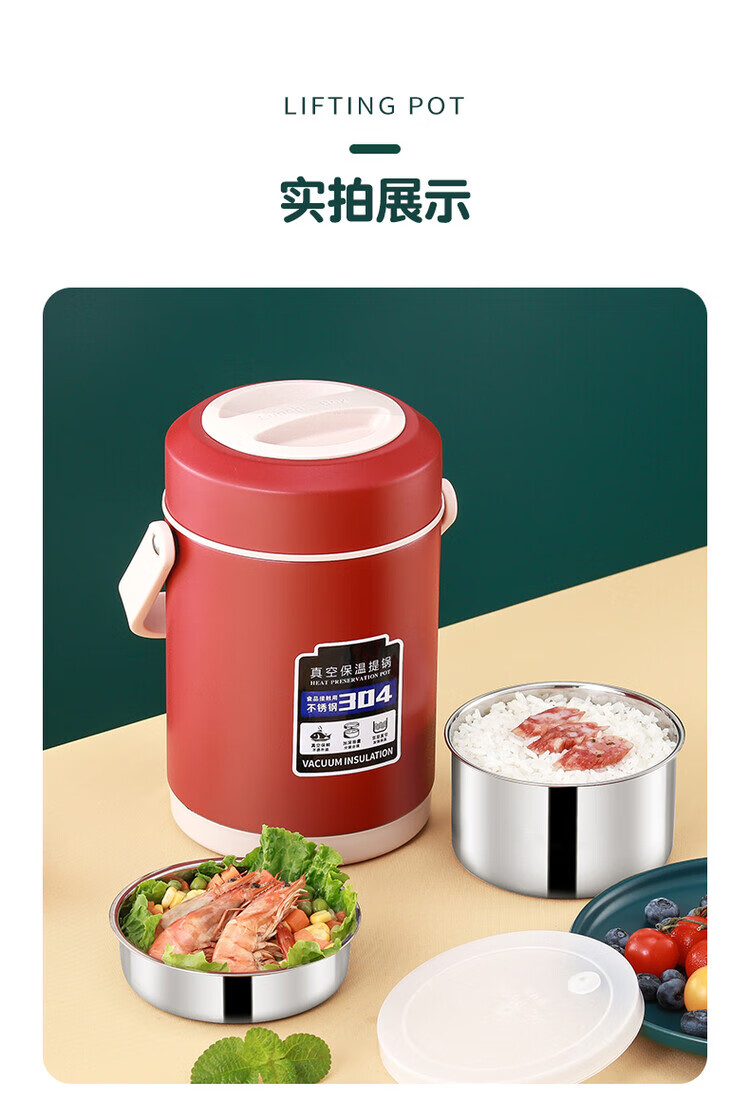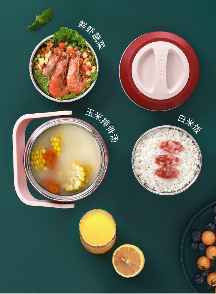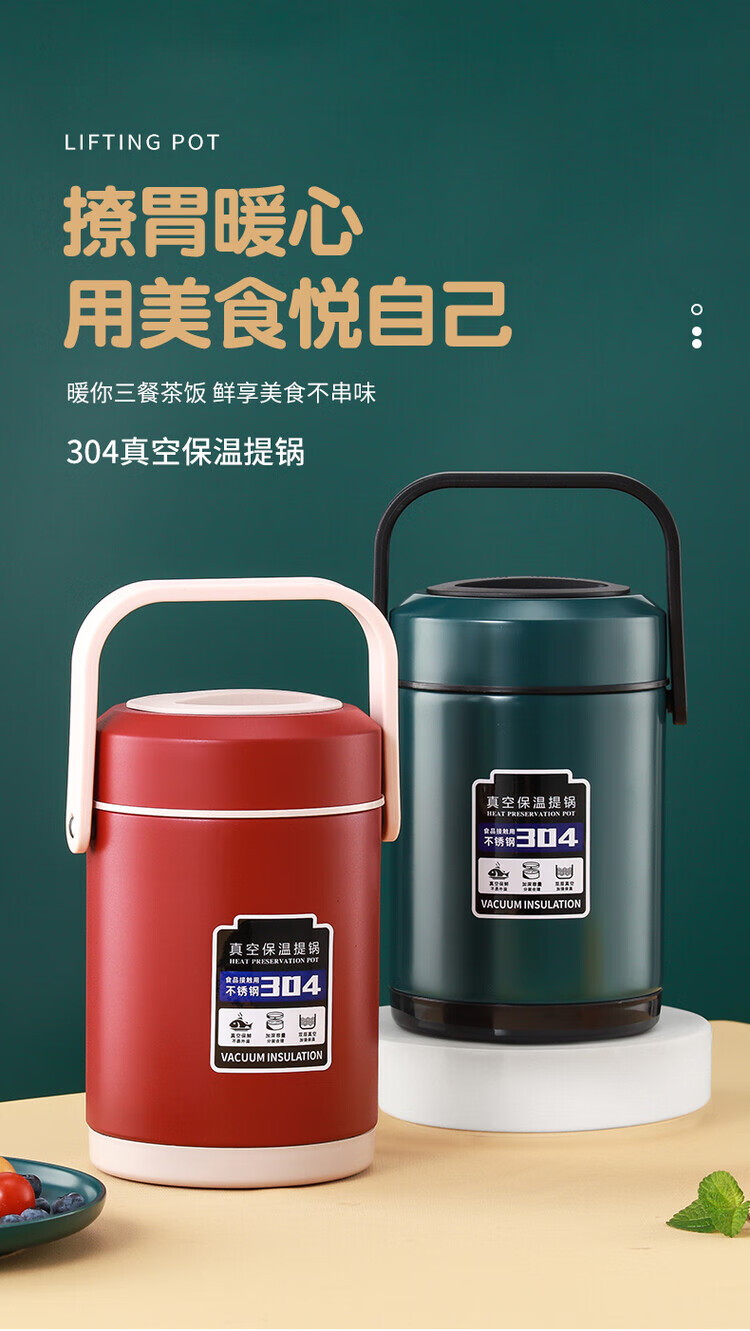TOZUY Relaxing long-lasting thermal insulation lunch box 304 stainless steel high-looking worker student household lunch box with lid three-layer thermal insulation 1.8L steel gold tableware set