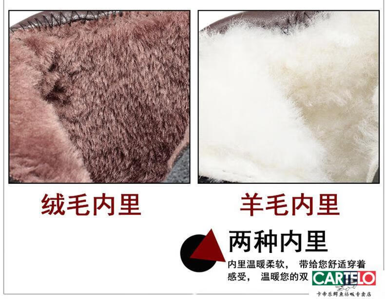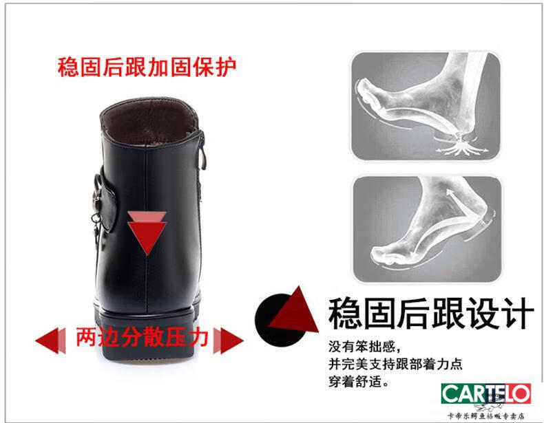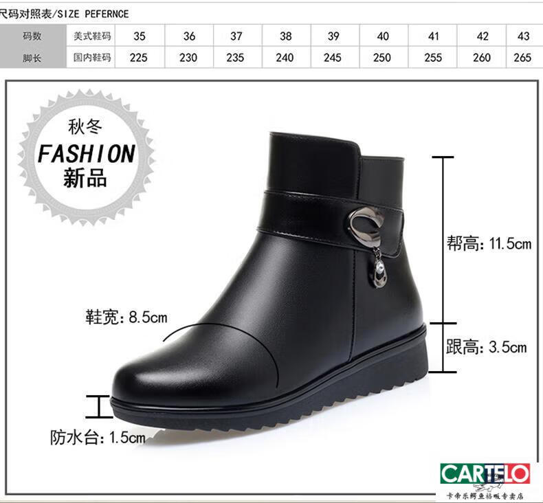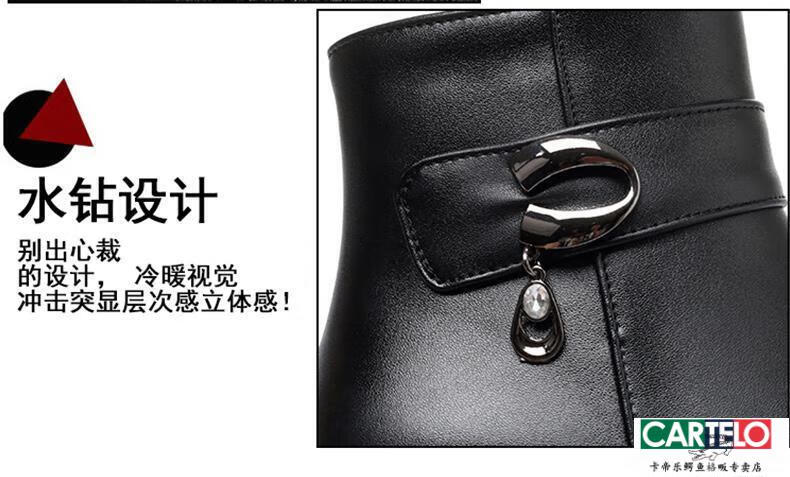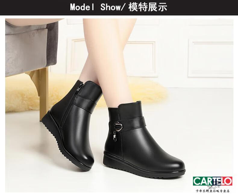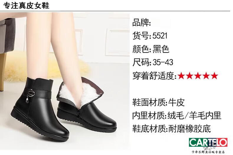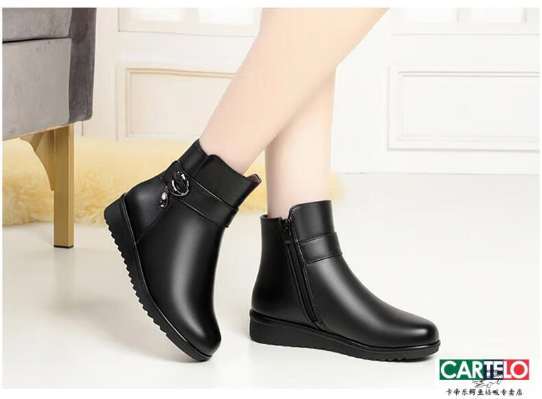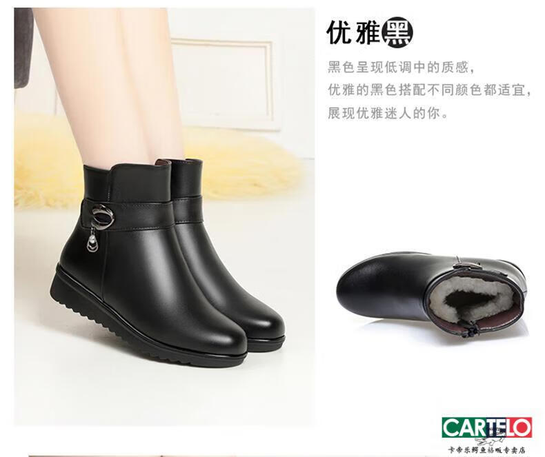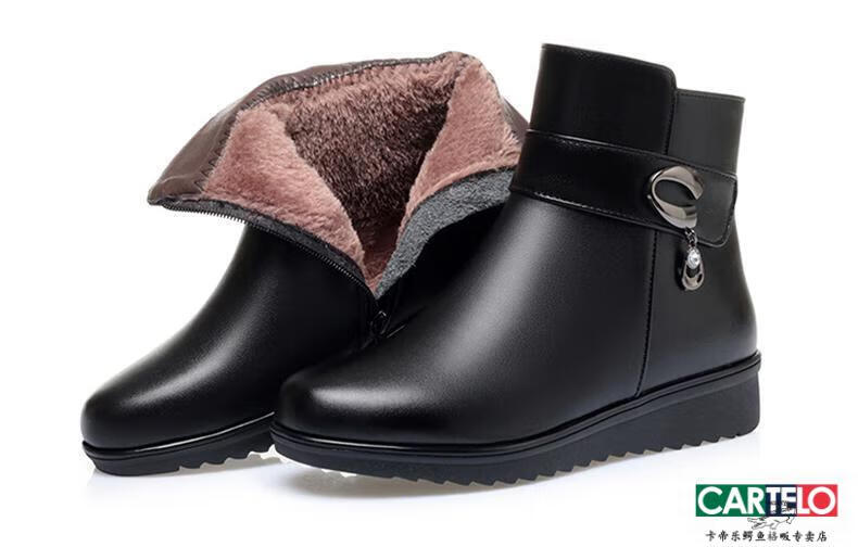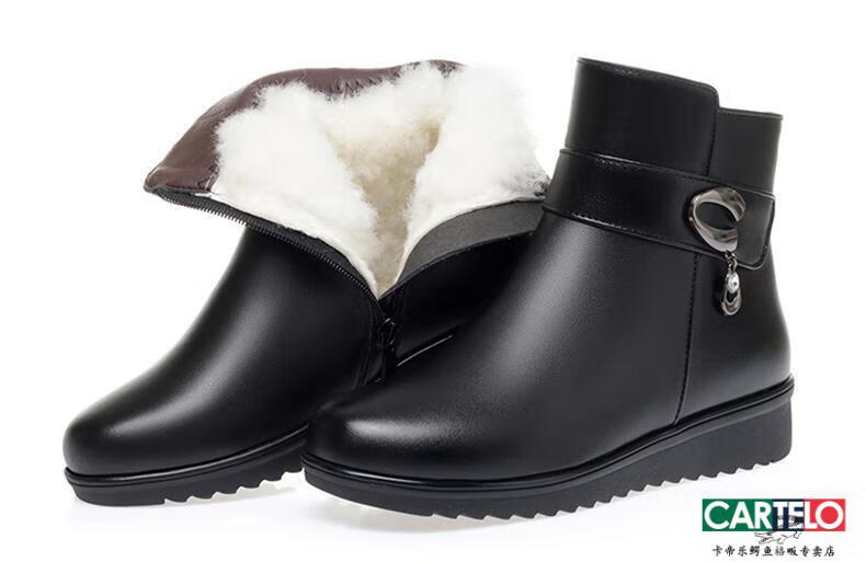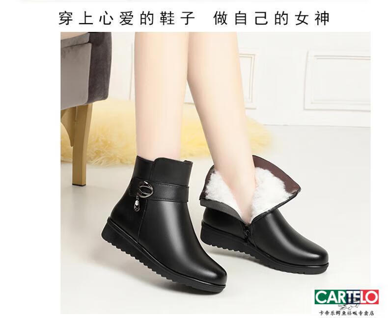 CARTELO crocodile mother's shoes women's winter plus velvet cotton shoes genuine leather flat boots shearling shoes middle-aged and elderly women's shoes elderly warm shoes black first layer of cowhide + thickened wool lining 38