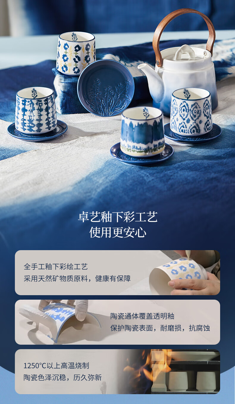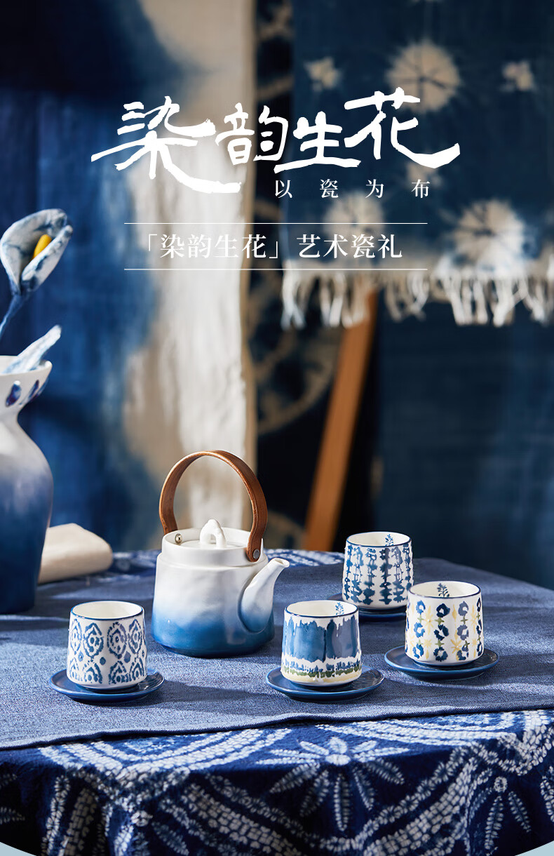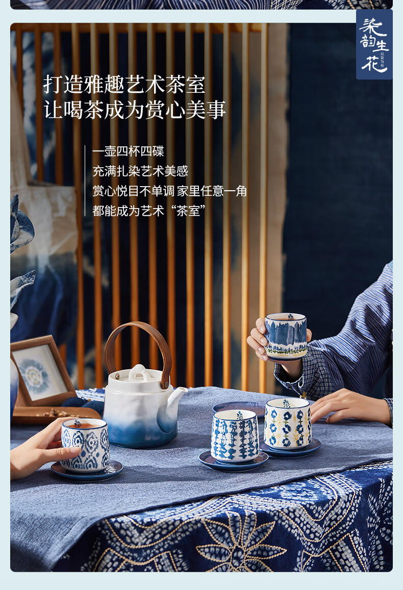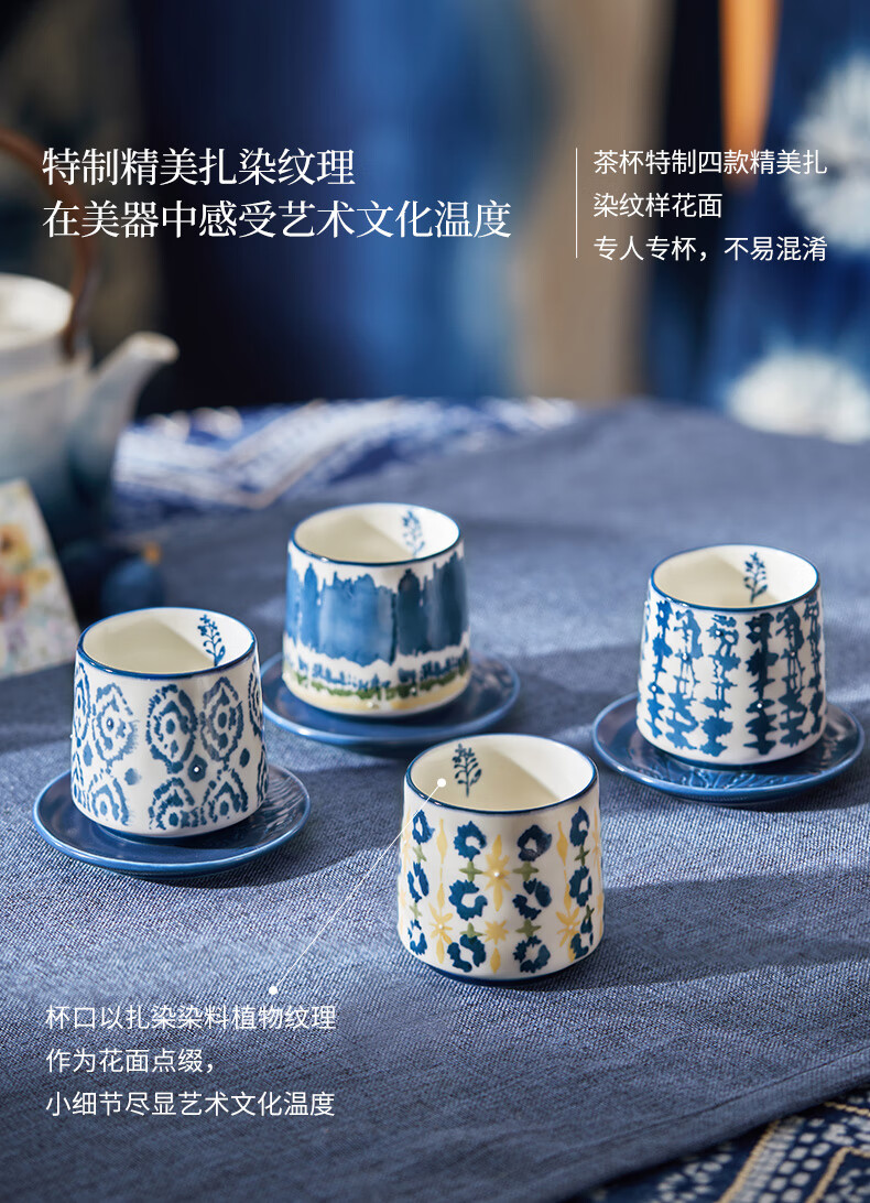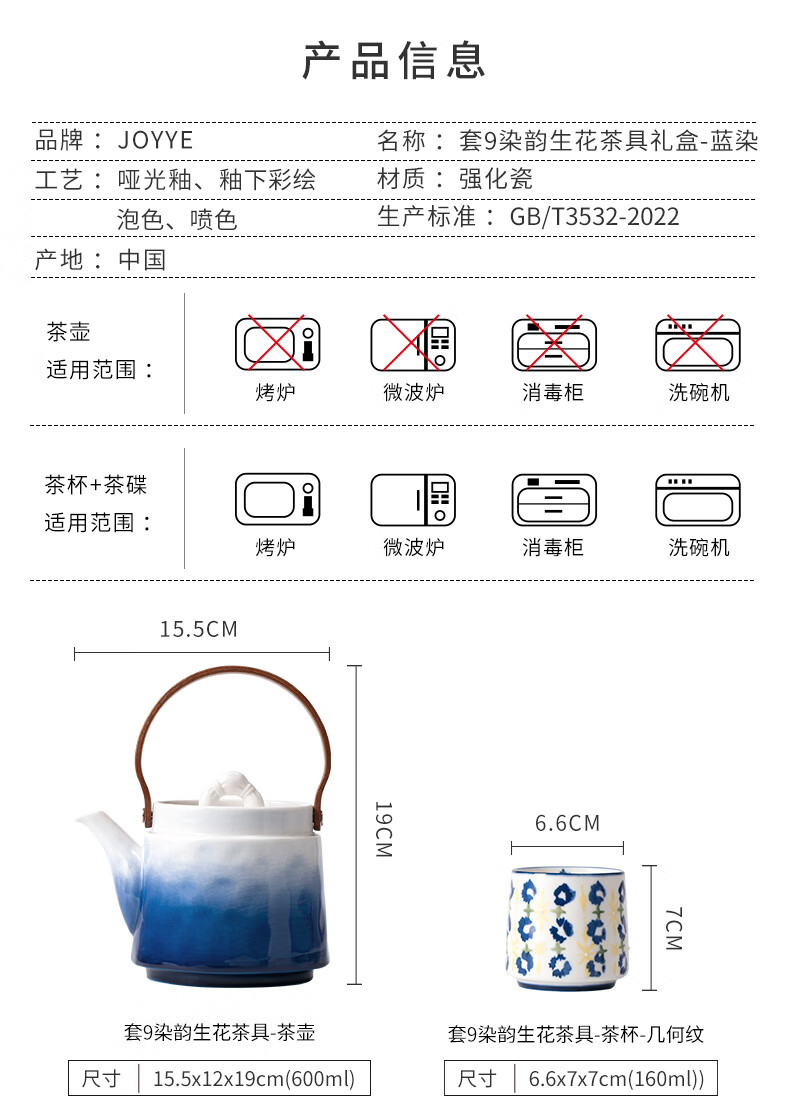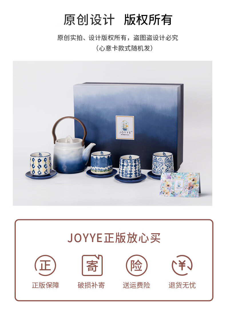 JOYYE tea set complete set for festivals, gifts for relatives, friends and elders dyed rhyme flowers living room home teapot cup companion gift