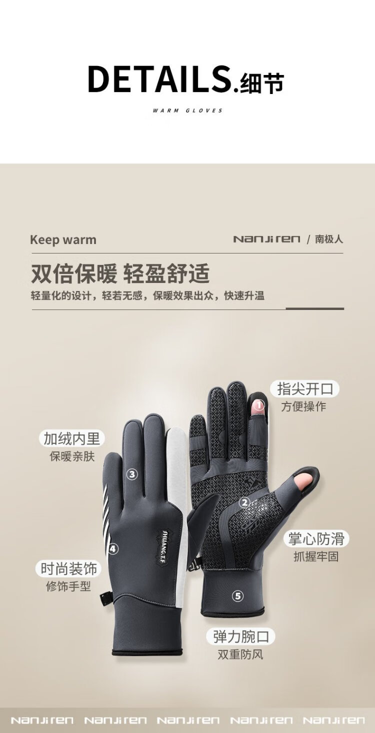 Antarctic Cycling Gloves Men's Thin Velvet Autumn and Winter Warm Driving Anti-Slip Finger Leaking Touch Screen Thickened High Elasticity Leisure Outdoor Fishing Black Two Finger Leaking Lightweight and Warm