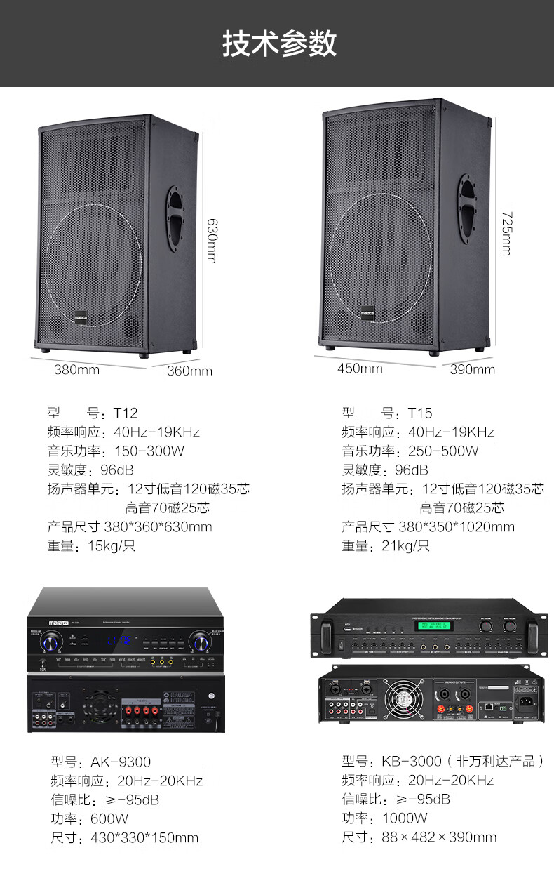 Wanlida outdoor audio set small and medium-sized performance stage wedding full-frequency high-power KTV bar speaker equipment 12-inch audio set + amplifier