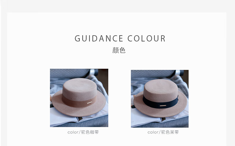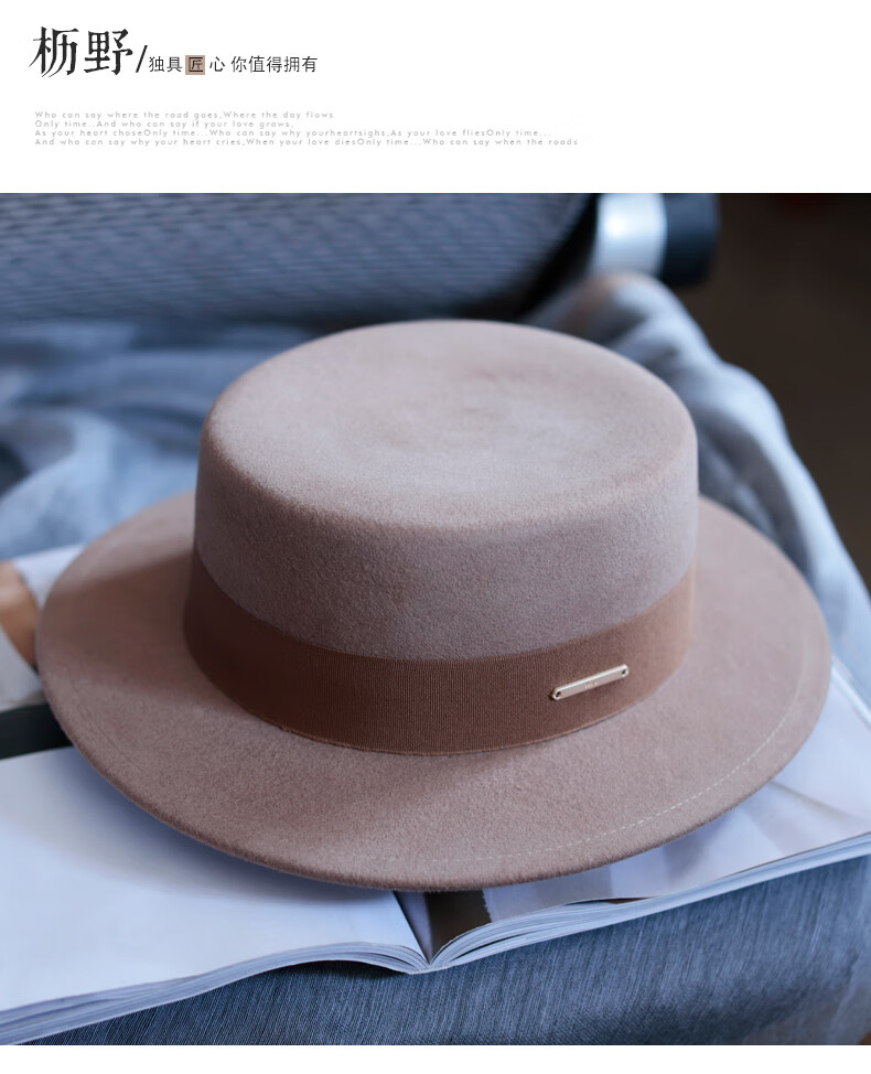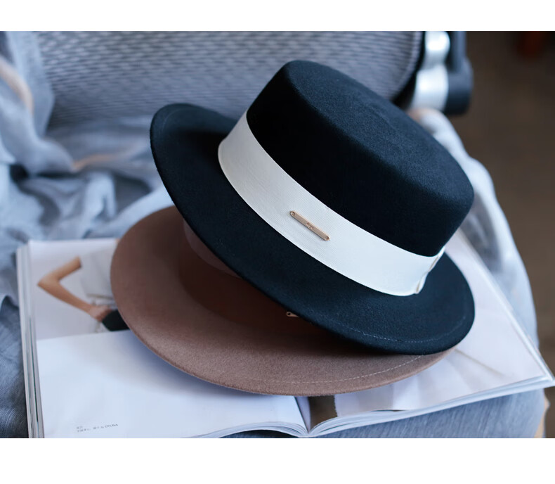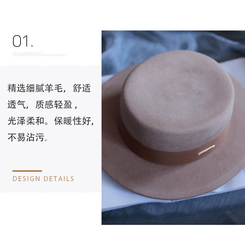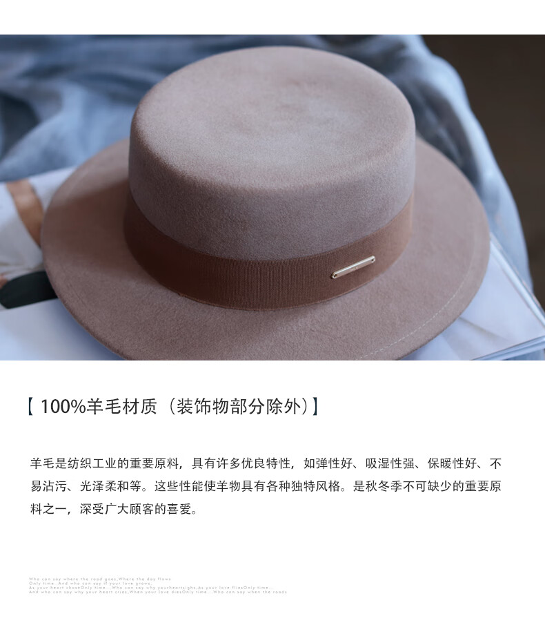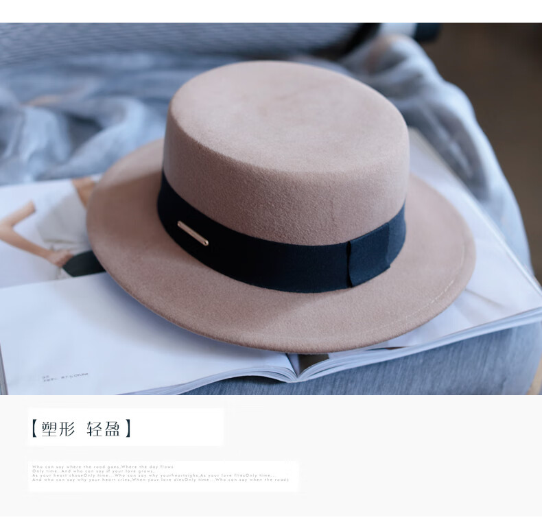 Tochino autumn and winter fashion new woolen hat for women white French large head felt hat high-end elegant flat hat camel coffee belt regular size M (55-57.5CM)
