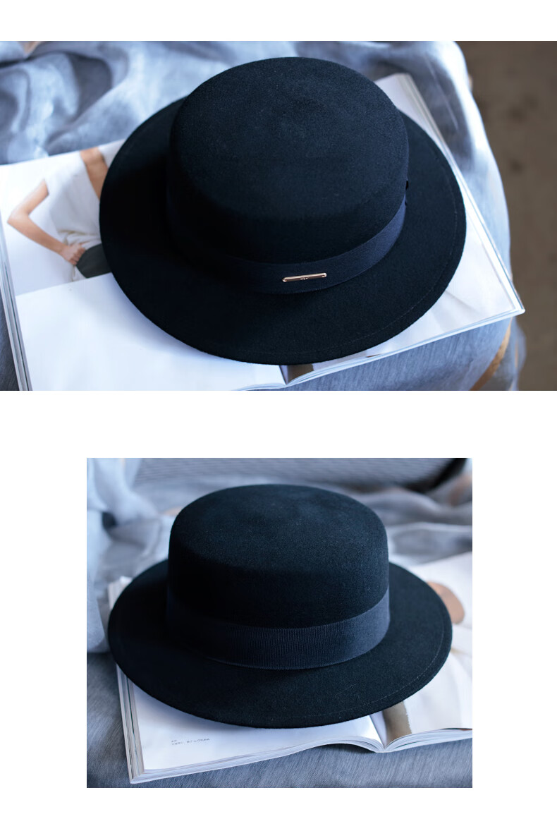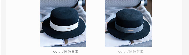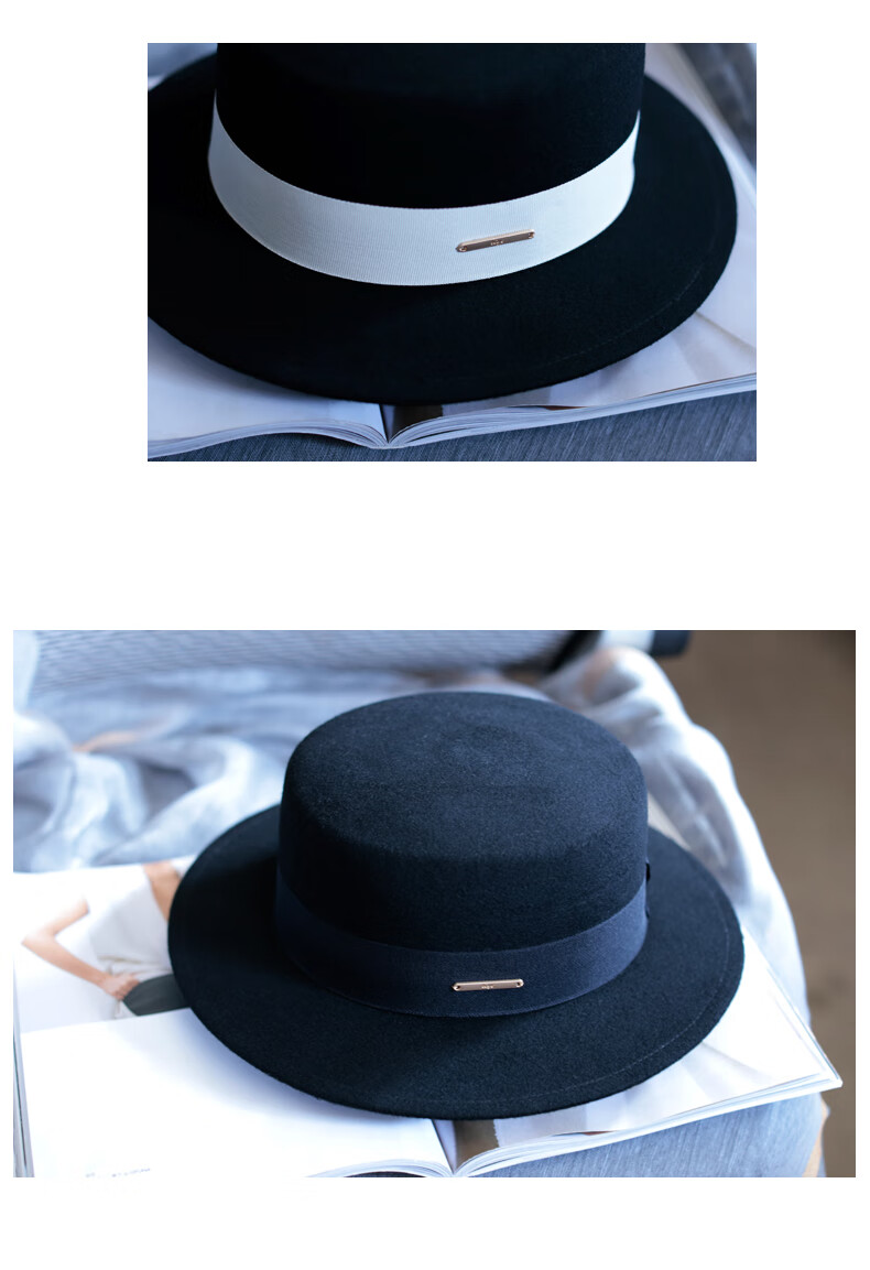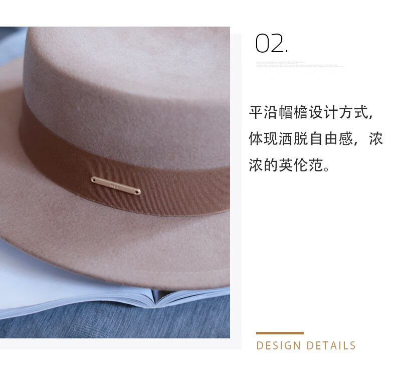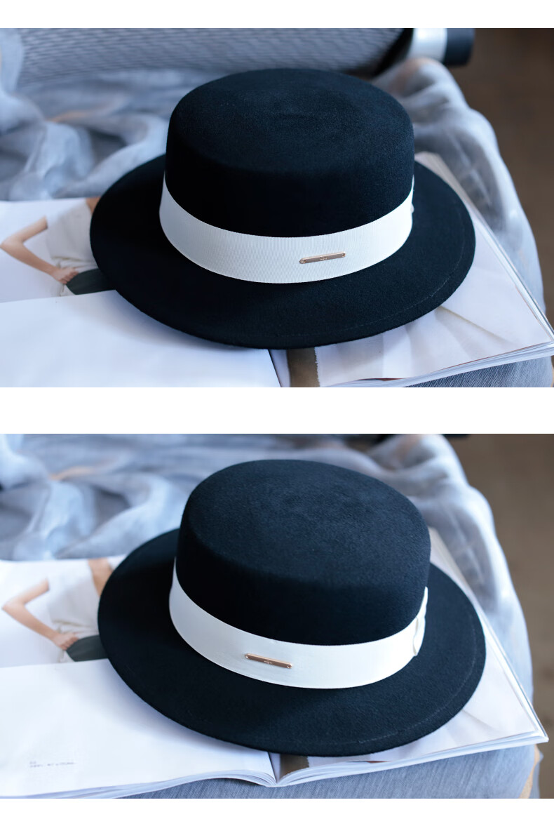 Tochino autumn and winter fashion new woolen hat for women white French large head felt hat high-end elegant flat hat camel coffee belt regular size M (55-57.5CM)