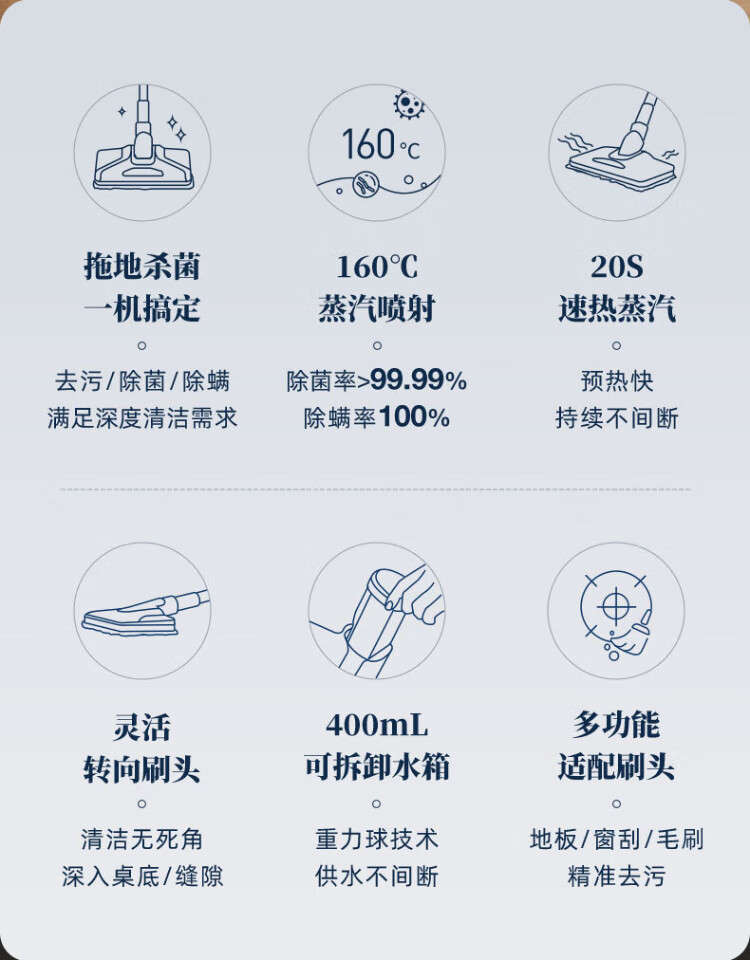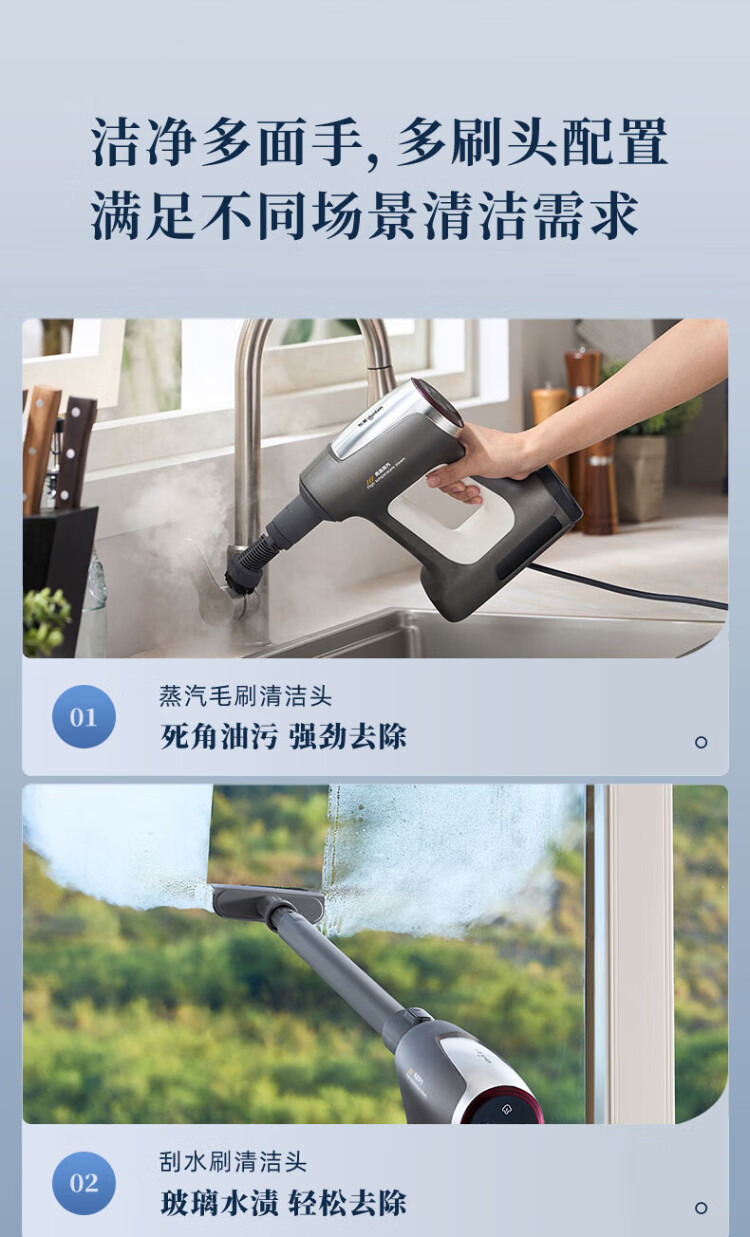 Donlim high-temperature steam cleaner, multi-functional household electric steam mop, floor mopping, window cleaning, sterilization and mite removal, lightweight cleaning machine, New Year's party gift DL-7006 Titanium Gray