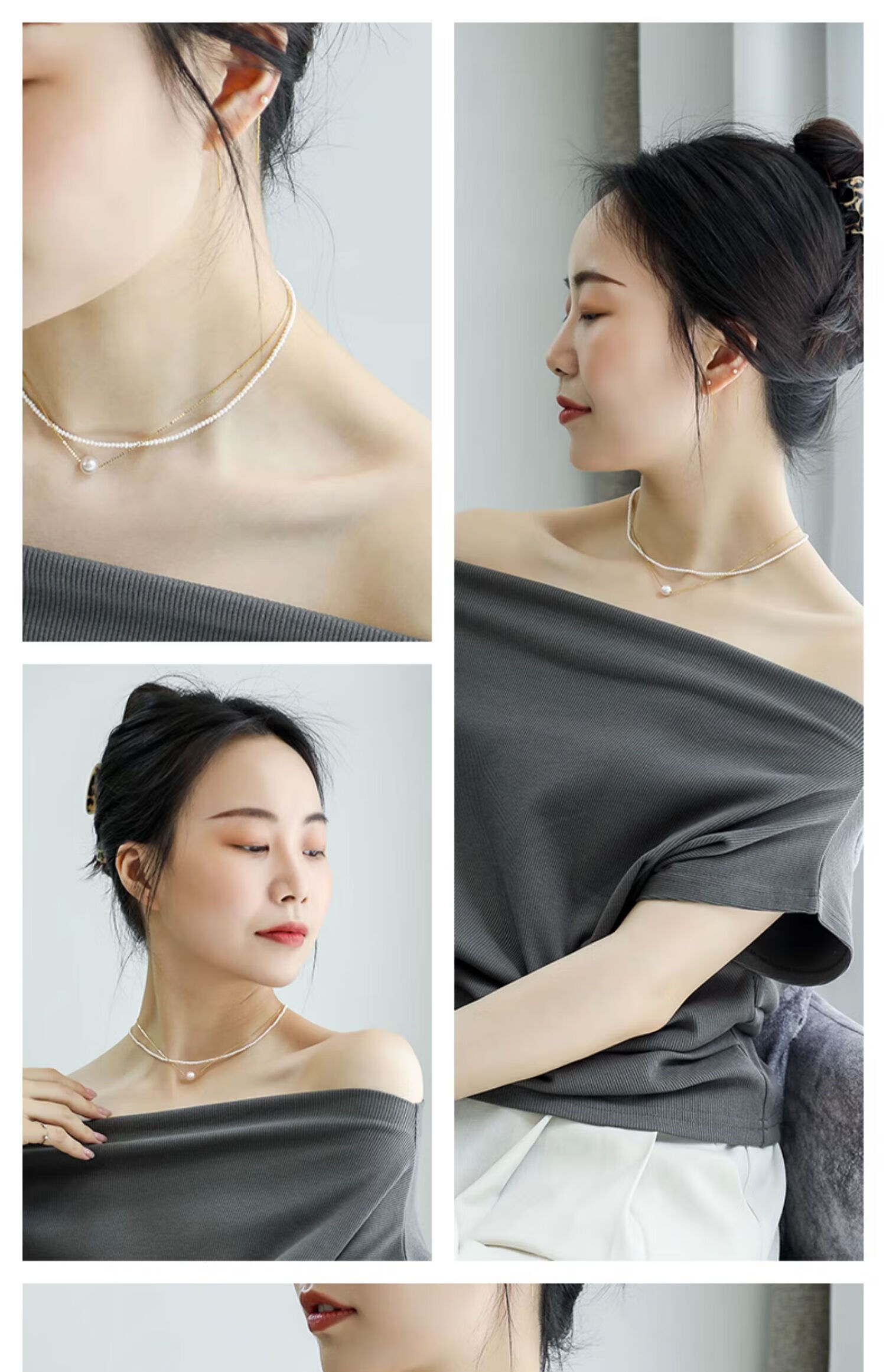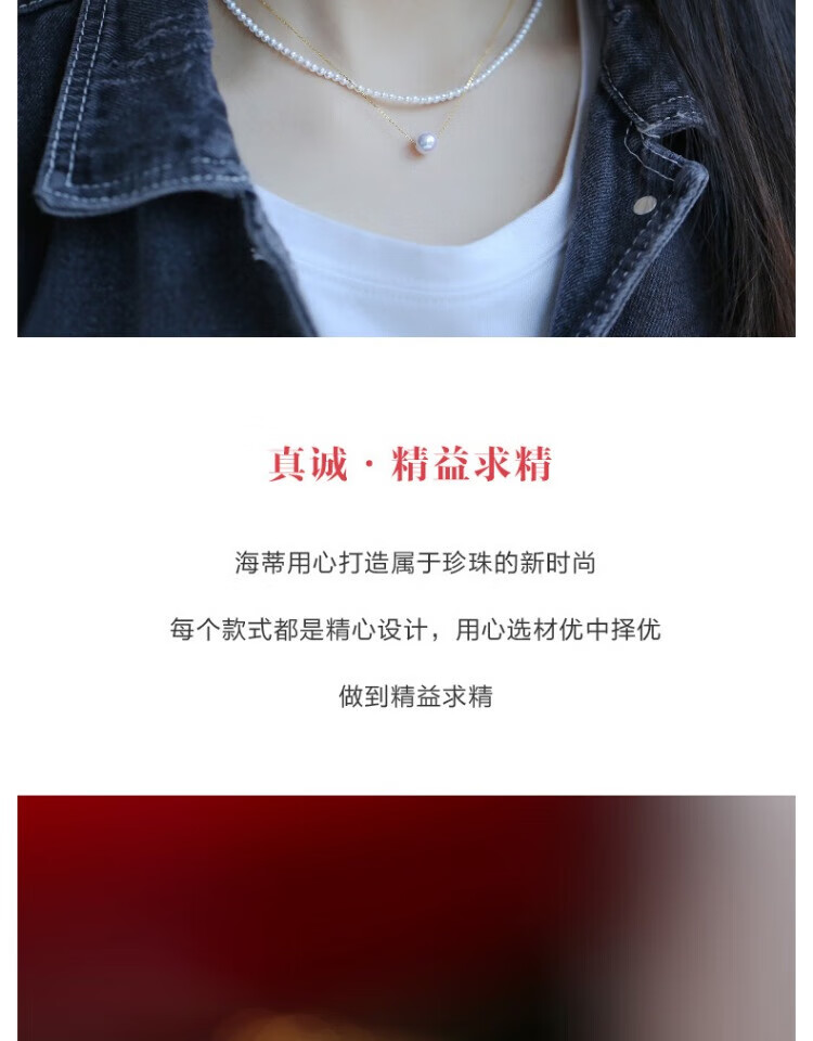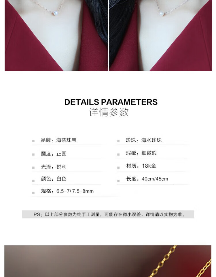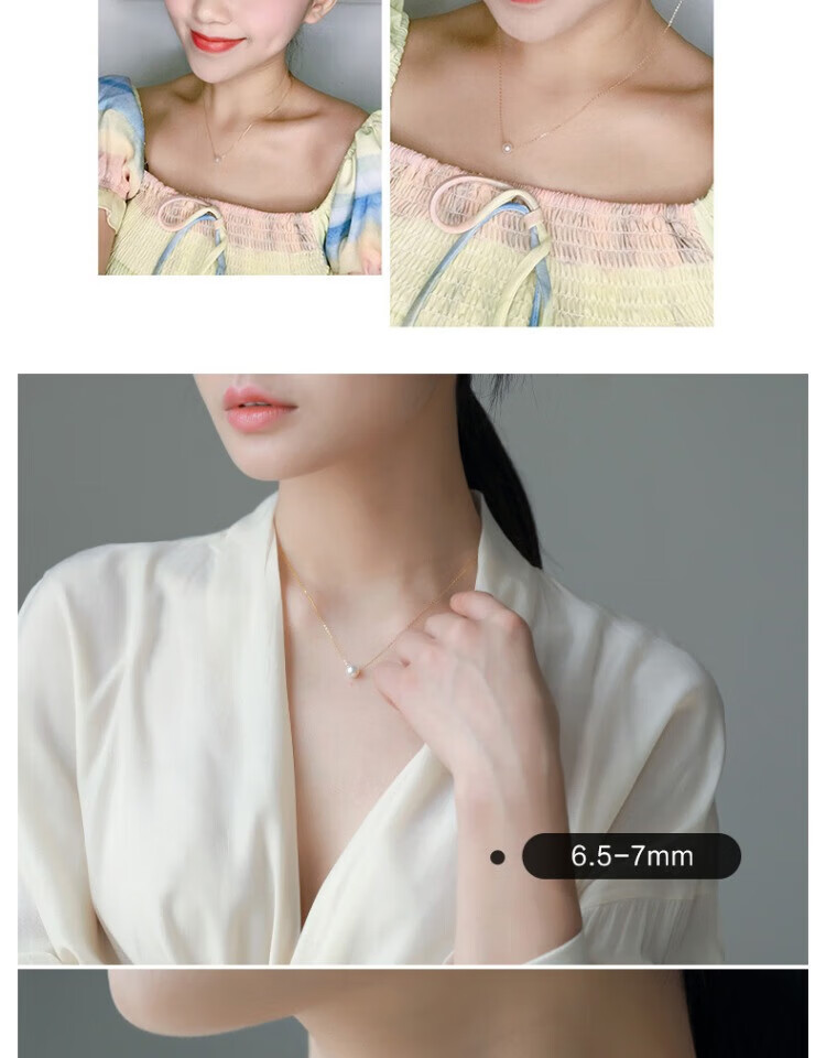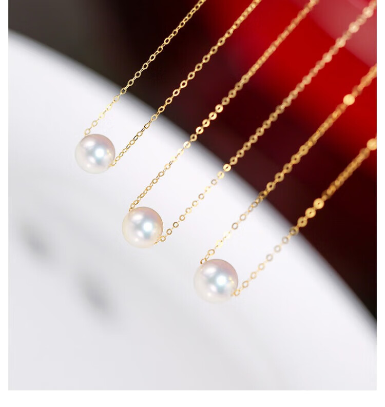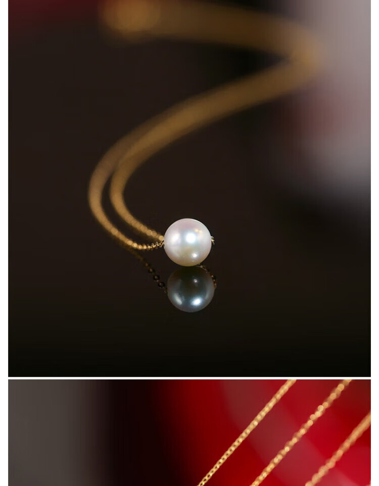 Jing Ruojingyi 18K gold selected Akoya seawater pearl pendant necklace for women 7.5-8mm40cm