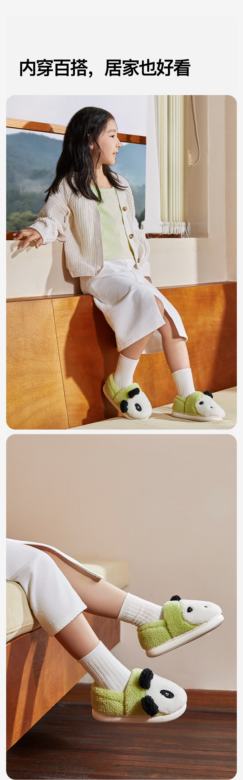Puxi children's cotton slippers girls winter parent-child baby slippers women's bag heel indoor plus velvet warm children's cotton shoes crayon green 32 210mm
