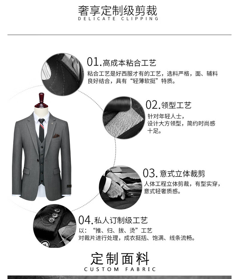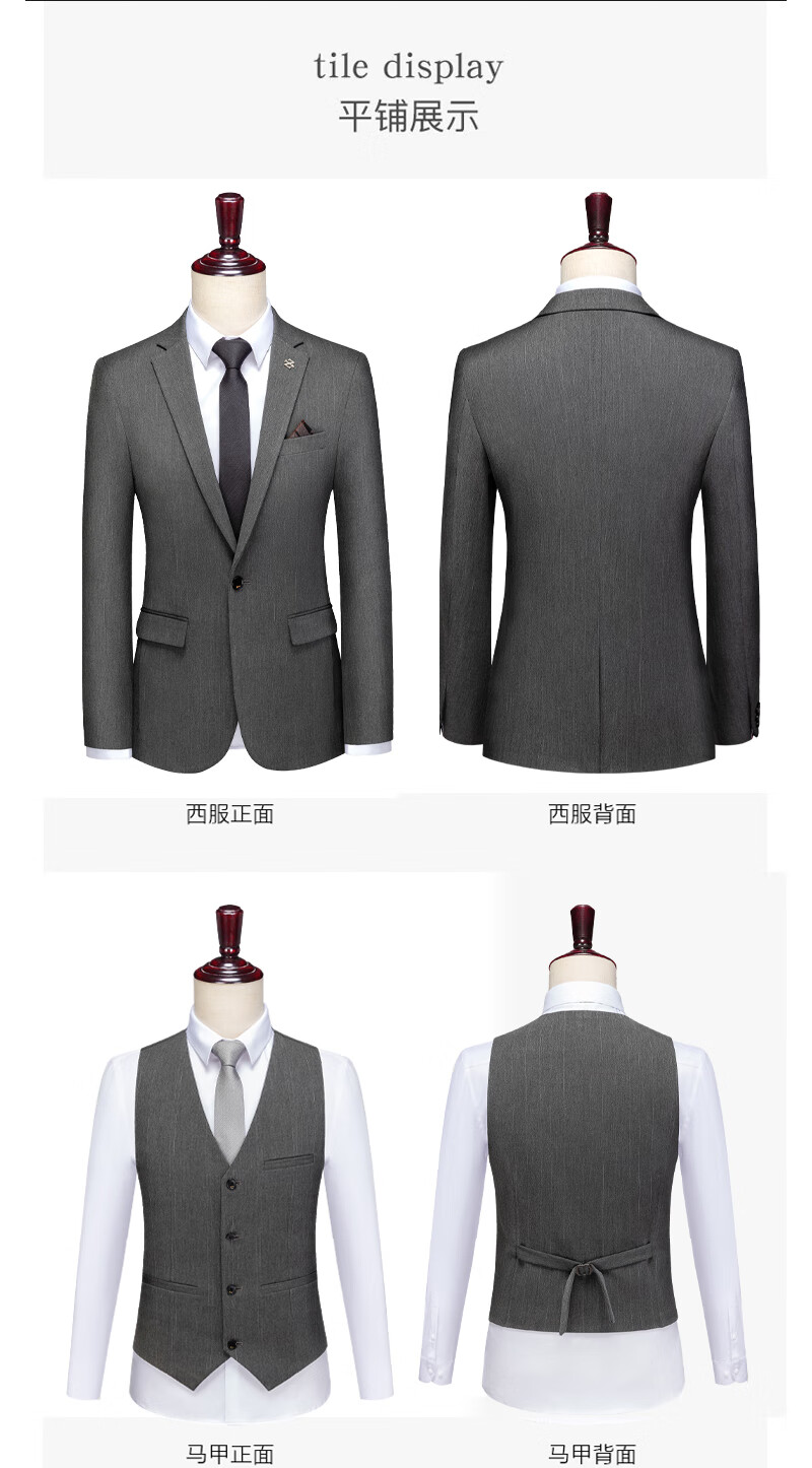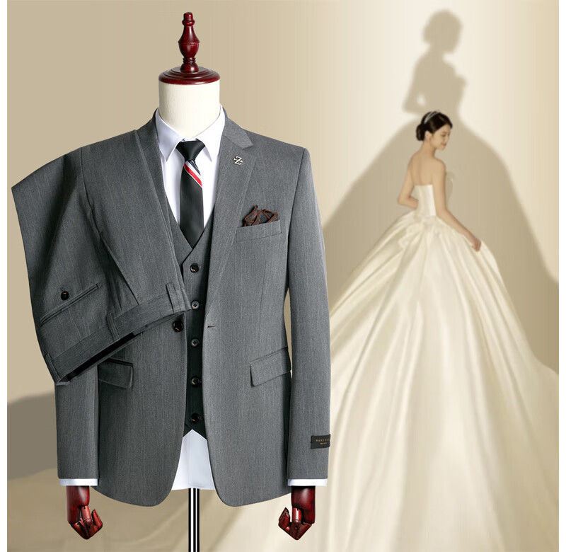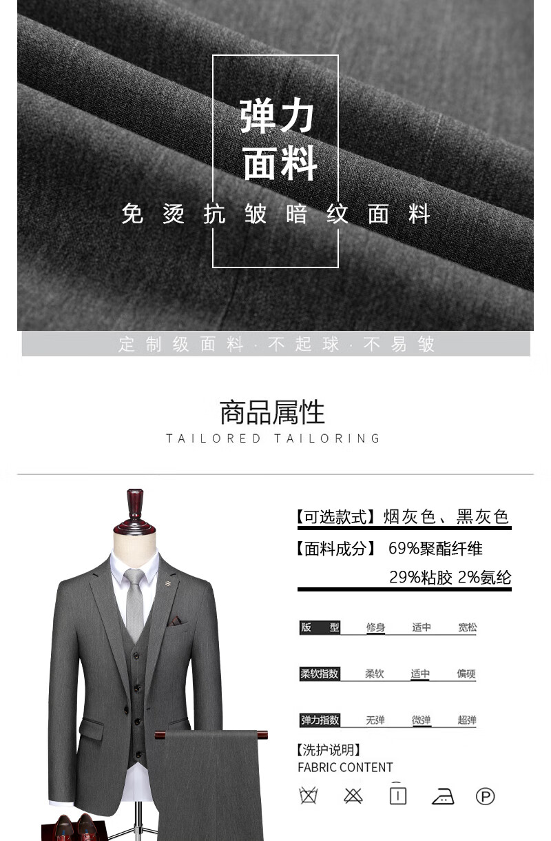 ROMON high-quality suit men's autumn suit men's business formal single-breasted groom's best man's wedding attire medium gray suit + pants two-piece set XL