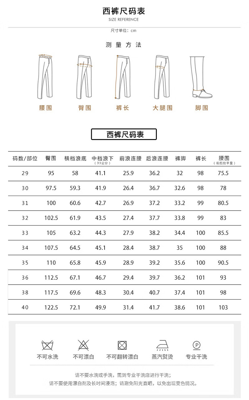 Outseam (cm) 99 cm 101.5 cm 104 cm 106.5 cm 109 cm