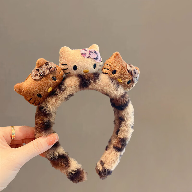 Jianla face wash special headband for women 2026 new autumn and winter cute bear headband hairband hairpin hair accessories plush headwear No. 100 kitty headband yellow leopard pattern A21-307