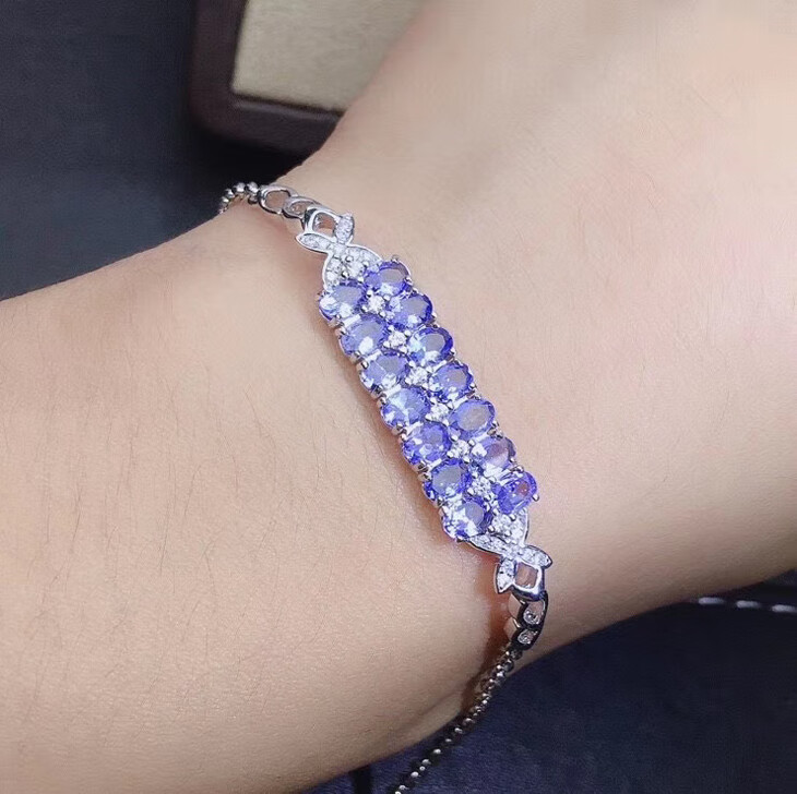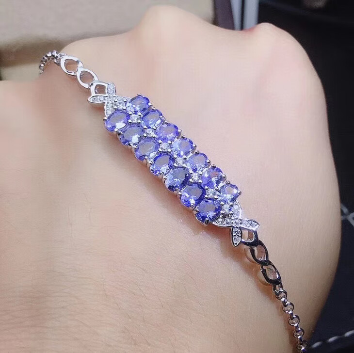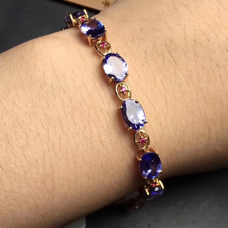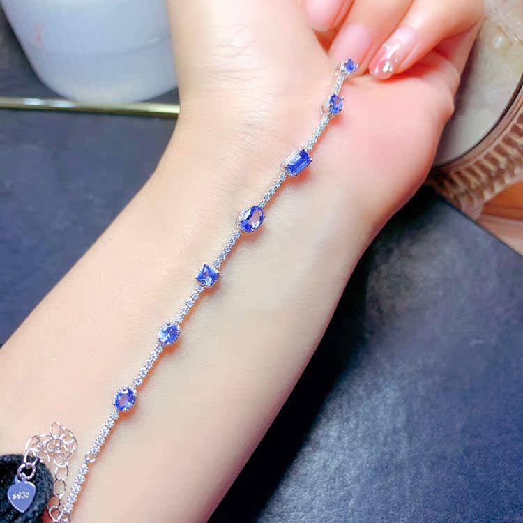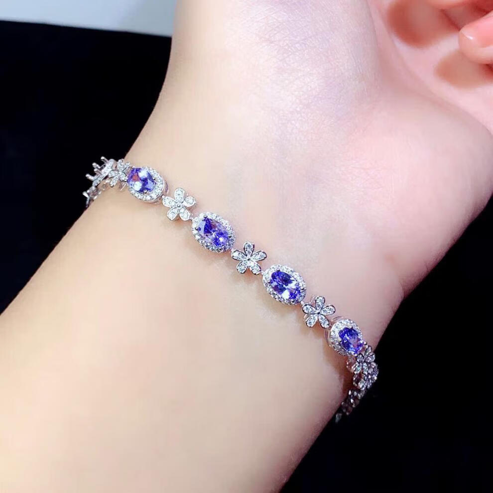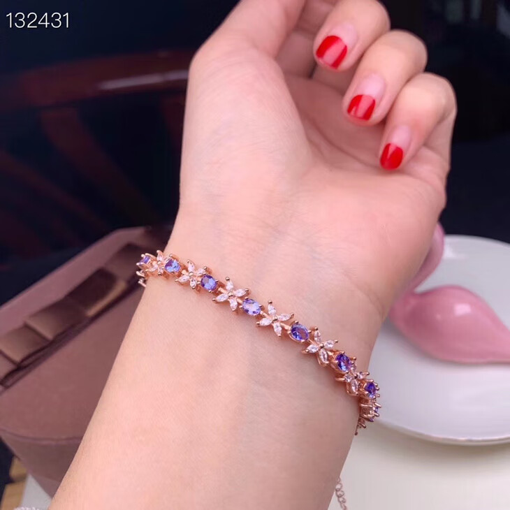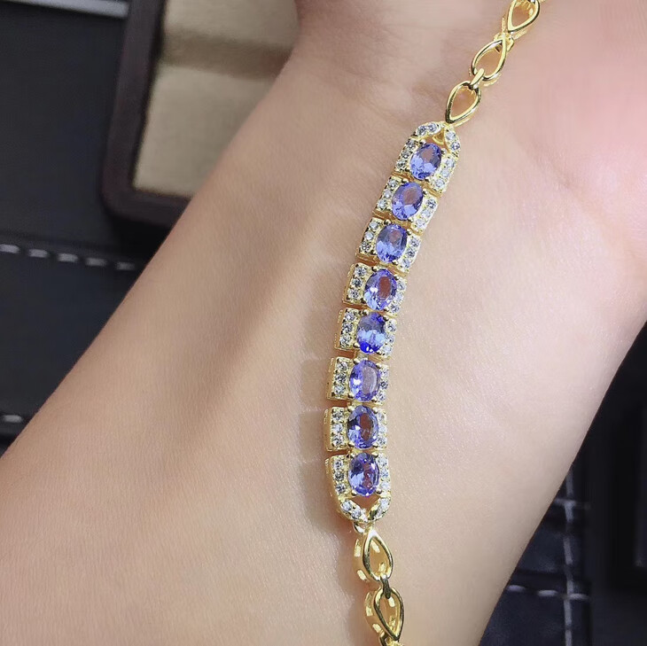 DL 1998 Fat Donglai same style tanzanite bracelet Japanese and Korean silver plated 18K gold inlaid natural l women's model 4a natural | natural tanzanite 4*5 bracelet