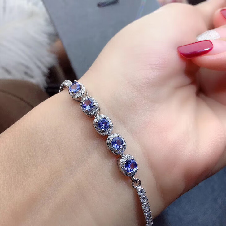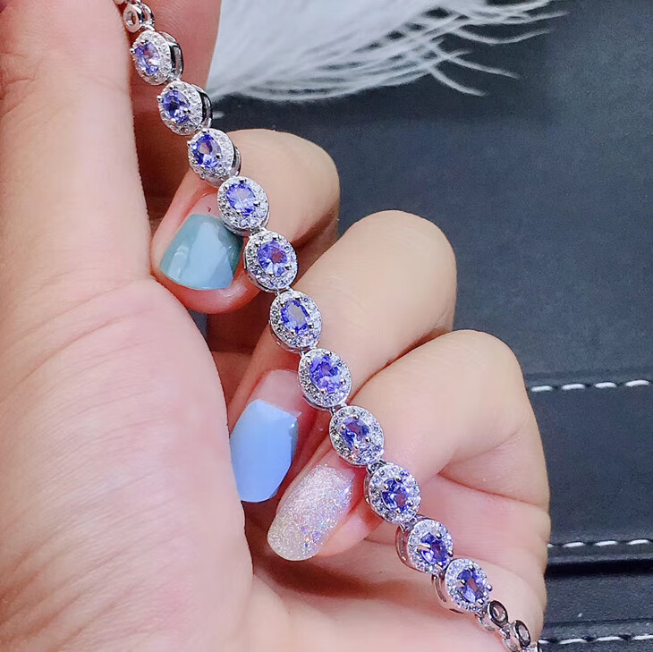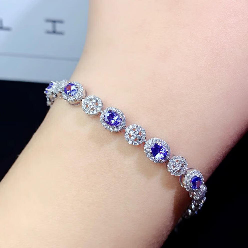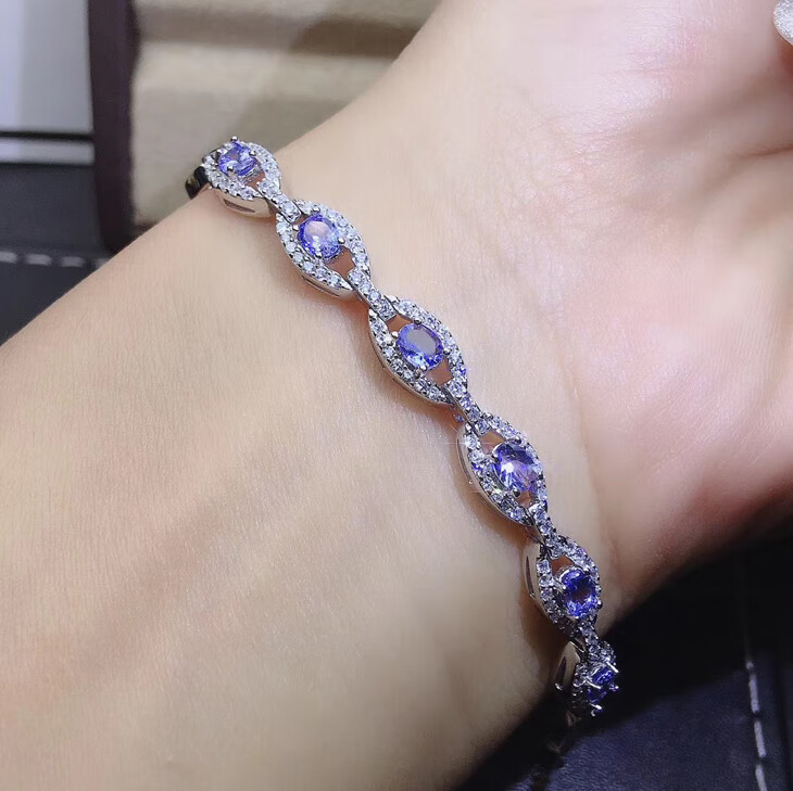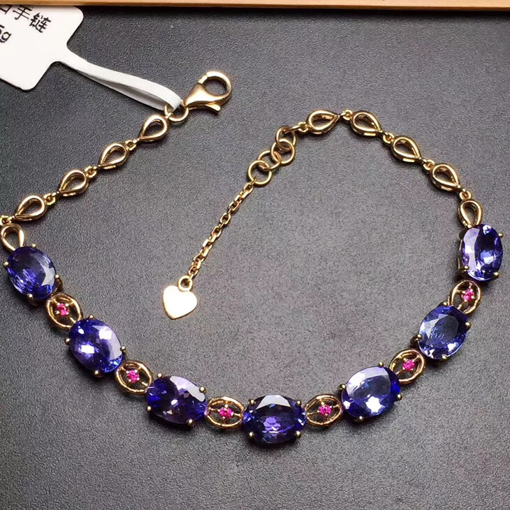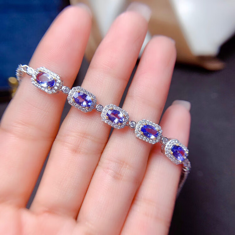 DL 1998 Fat Donglai same style tanzanite bracelet Japanese and Korean silver plated 18K gold inlaid natural l women's model 4a natural | natural tanzanite 4*5 bracelet