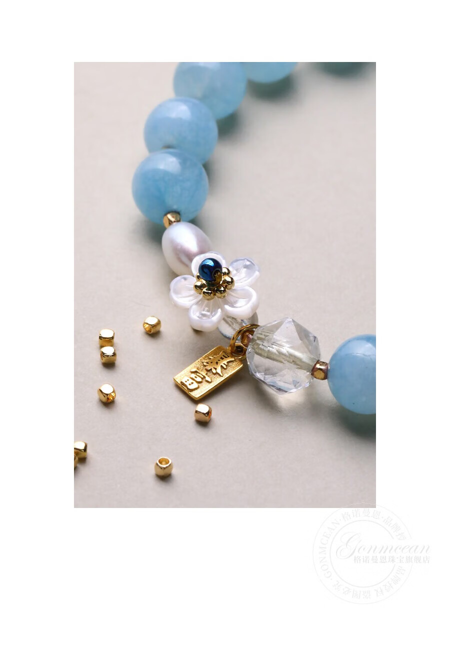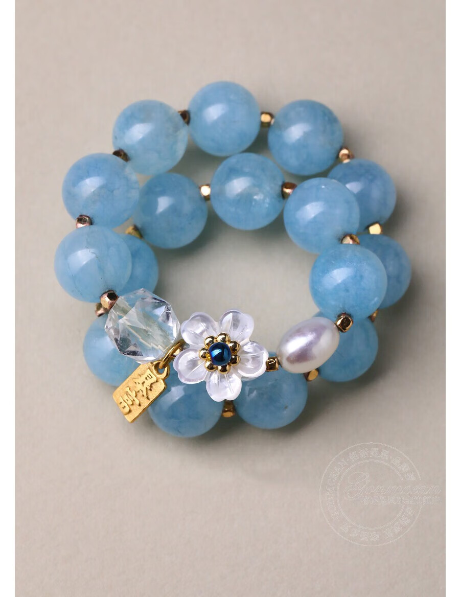 Generomanne Brazilian Aquamarine Bracelet Women's Chinese Bracelet Blue Gemstone Bracelet Flower Bracelet Beads 8mm