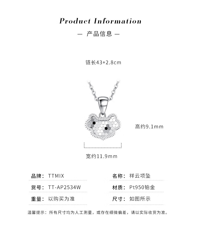 TTMIX platinum pendant women's fish scale pt950 chain platinum shiny auspicious cloud pendant for girlfriend chain set 7.0-7.2g + blue ribbon gift box