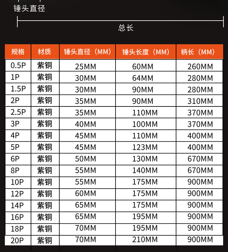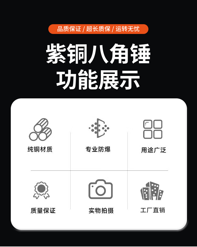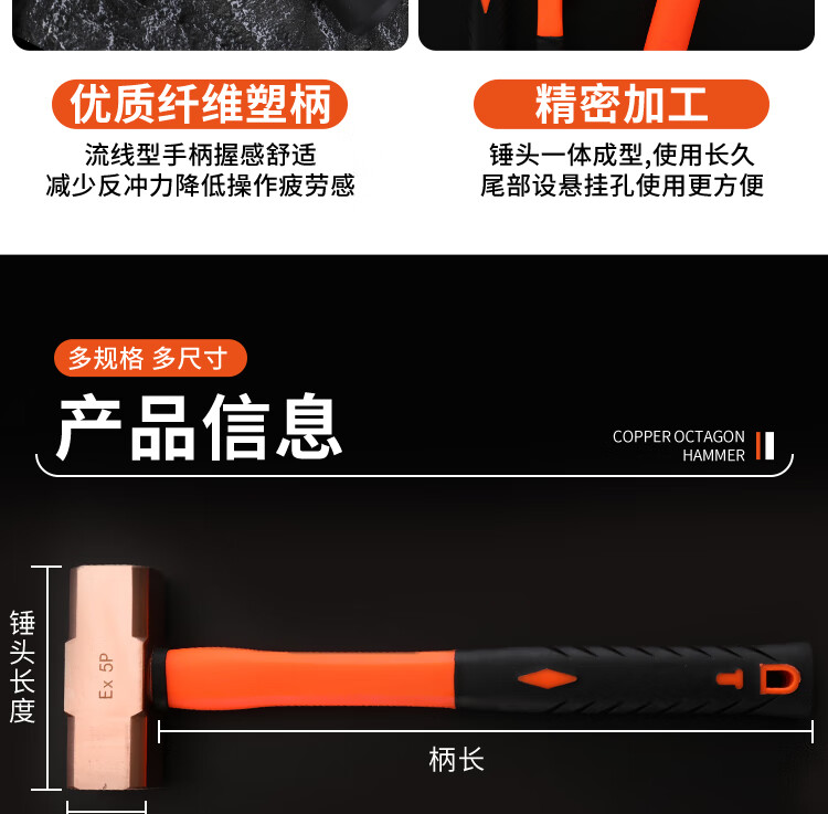Short cloud explosion-proof copper octagonal hammer, pure copper hammer, red copper hammer, copper hammer, solid hammer, large hammer, small hammer 0.5p-20p 20P (pound) 9kg