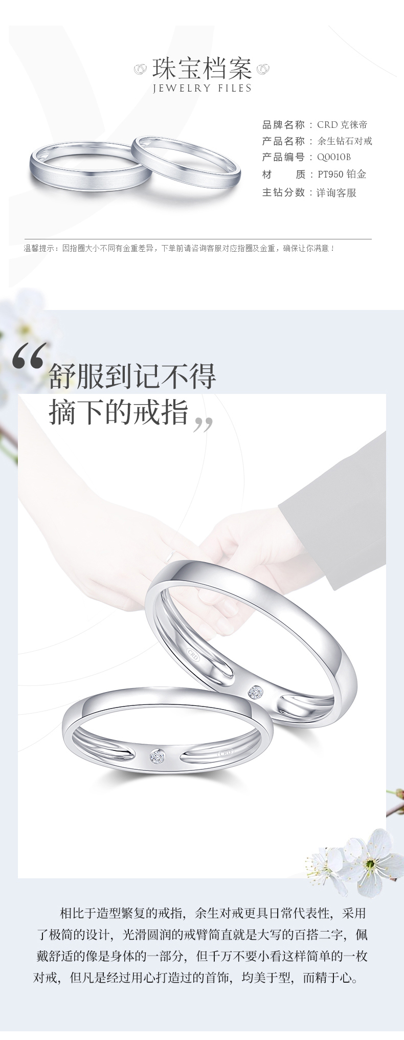 CRD Ke Laidi spot sparkling platinum ring for the rest of your life diamond couple wedding ring men's ring