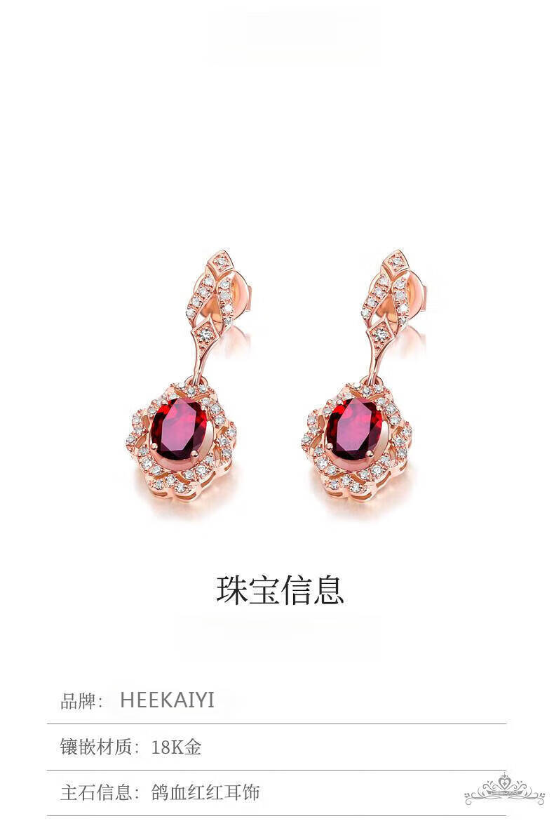 Haikai earrings for women, ruby earrings, luxury jewelry, Chinese Valentine's Day, birthday gift for wife, girlfriend, 0.9 carat ruby earrings (diamond 18 points)