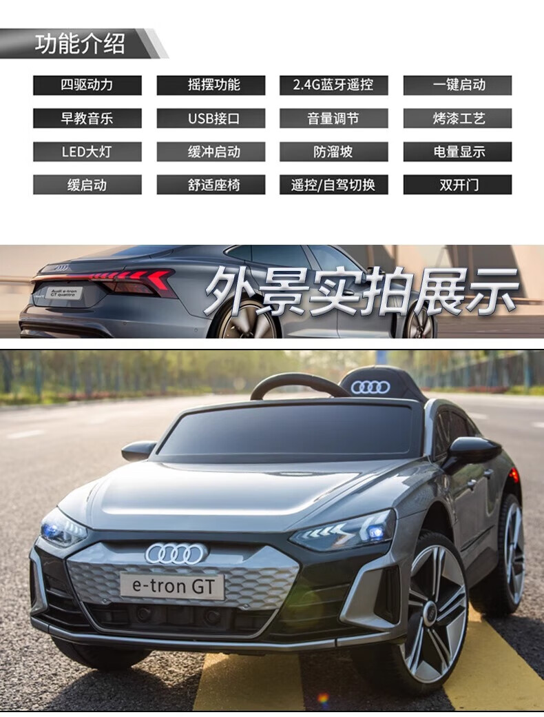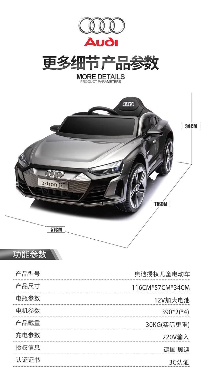 WORK BABY Audi genuine authorized children's electric car four-wheel sit-on remote control toy birthday gift for adults, babies and children, painted white/remote control/soft seat, electric drive