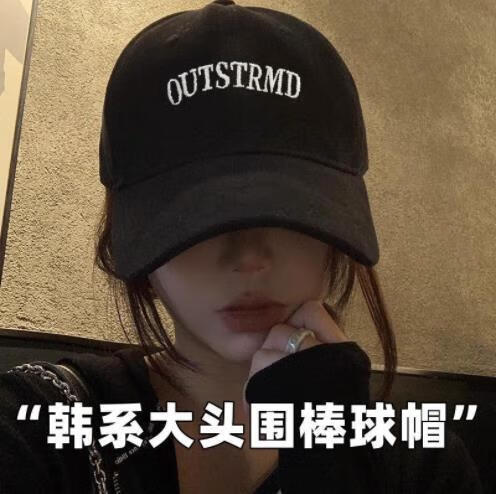 Manxinan black baseball cap for women 2024 new style enlarged and deepened peaked cap wide brim big head circumference showing face small versatile hat out black M (52-60cm) normal head circumference