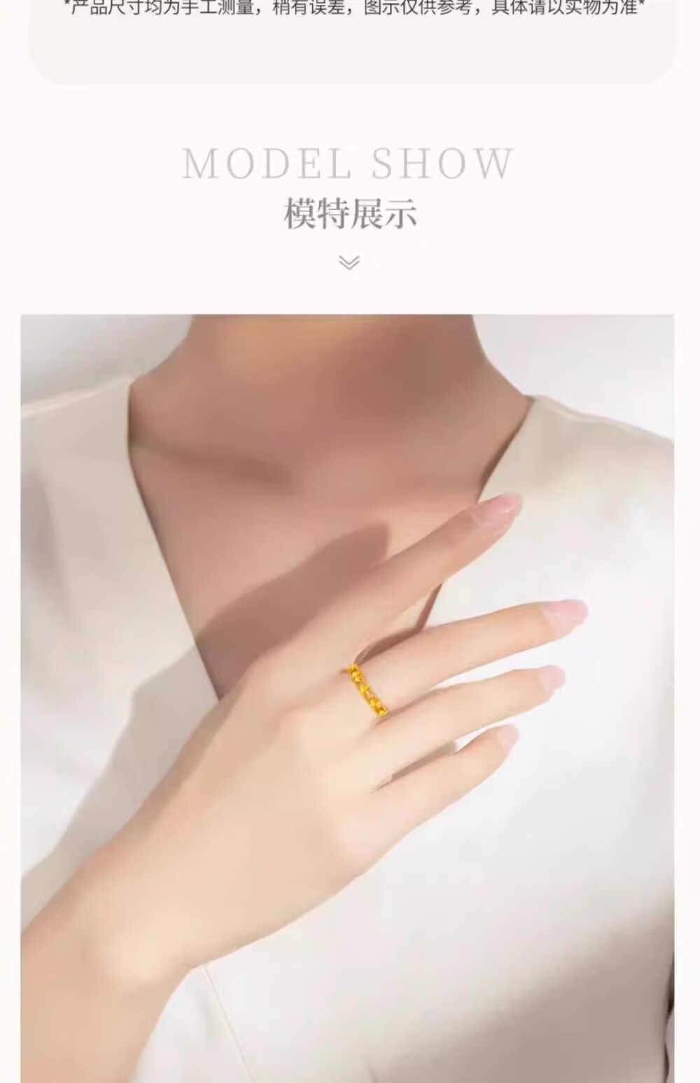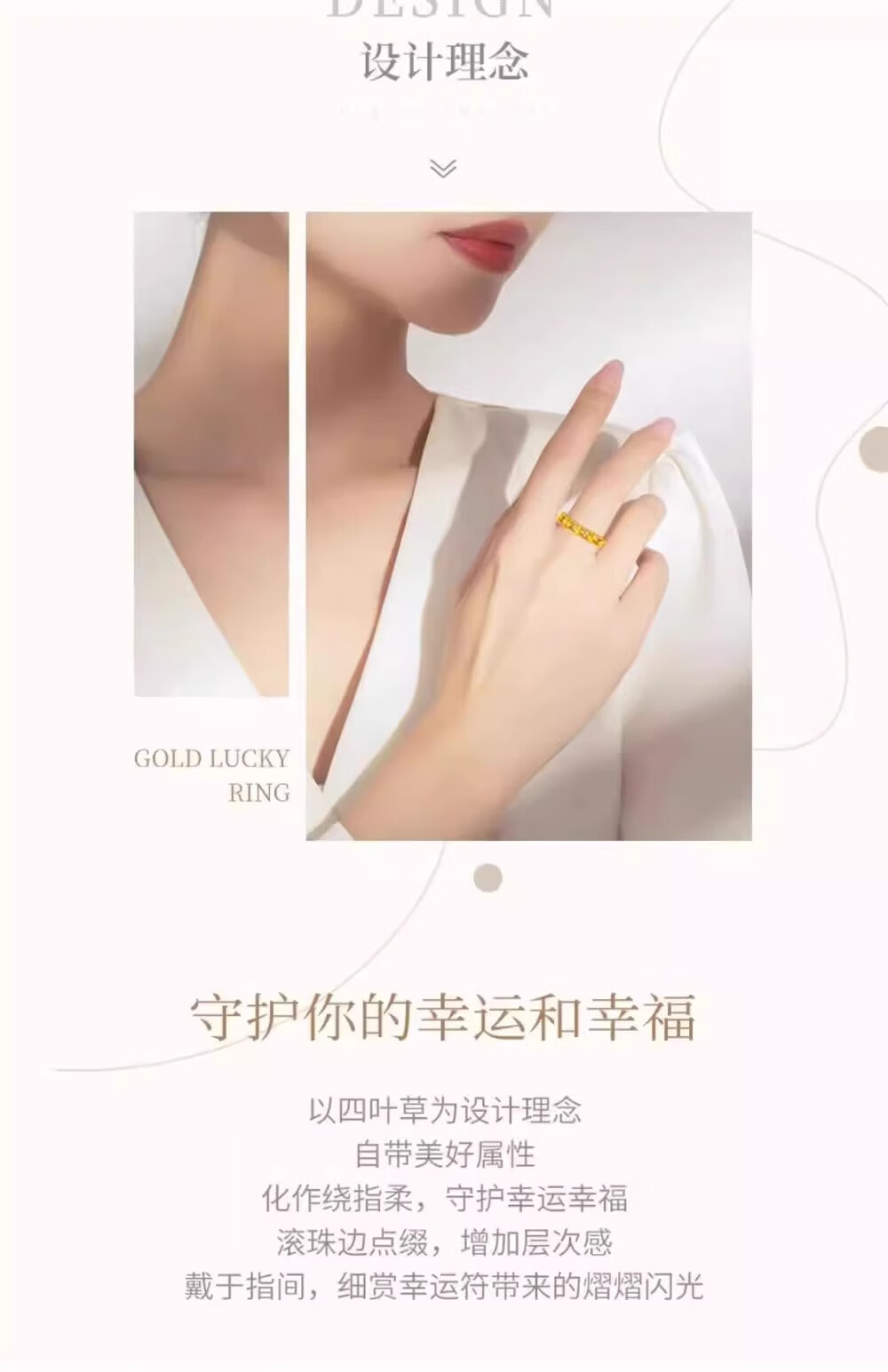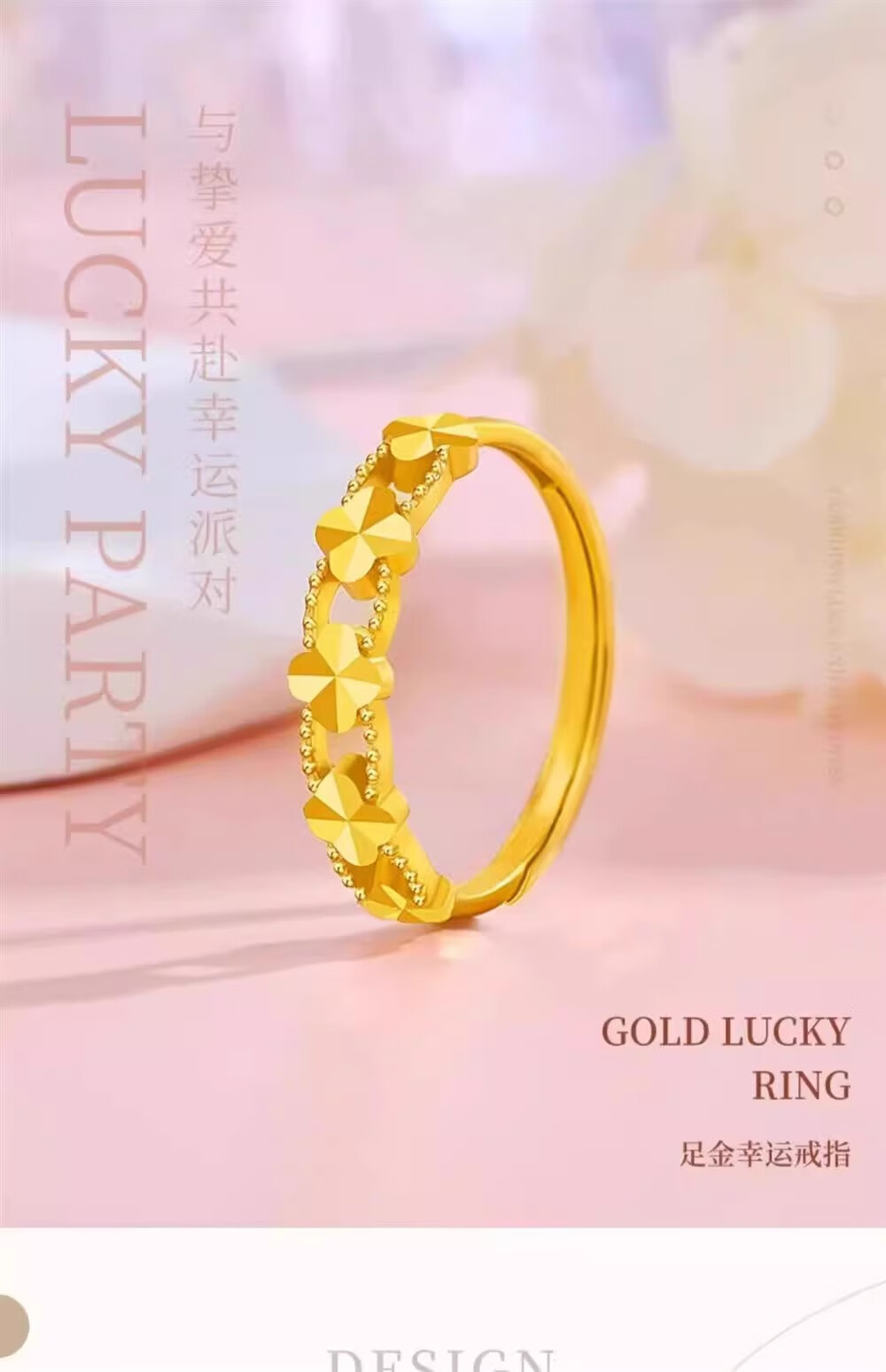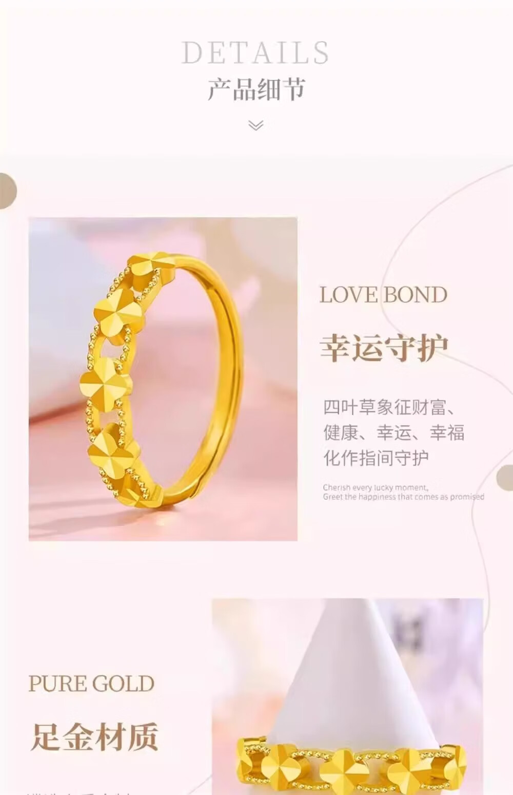 Liuwan water shell gold hollow four-leaf clover ring 999 pure gold women's 24K pure gold clover ring index finger ring live four-leaf clover ring gold-plated silver gold about 03g