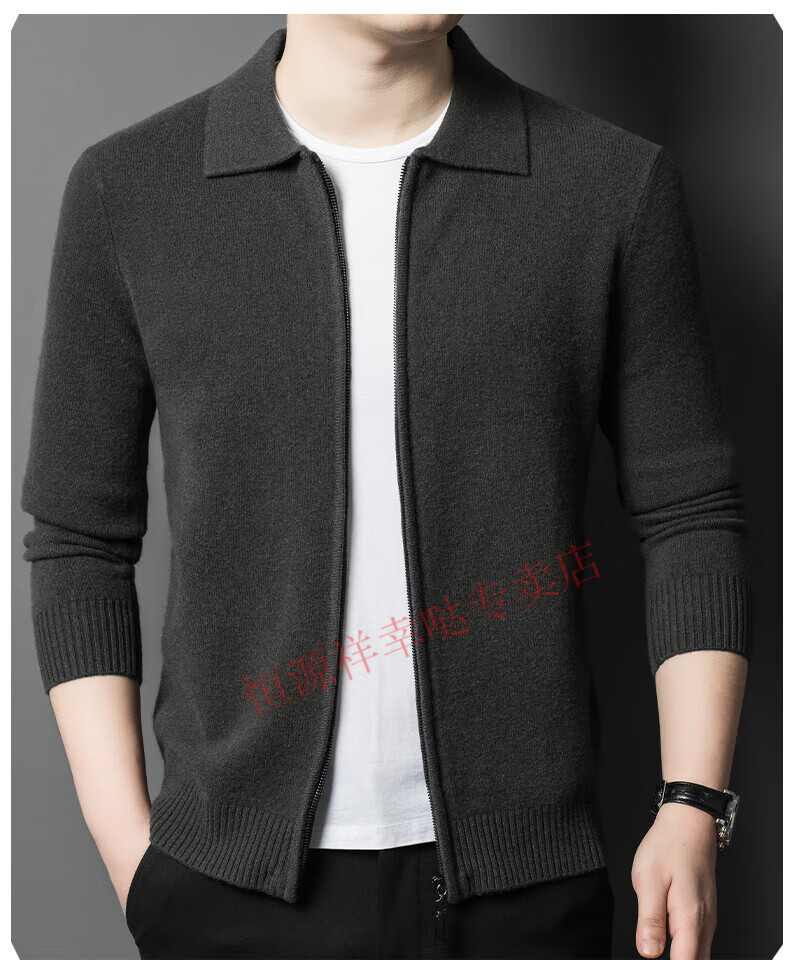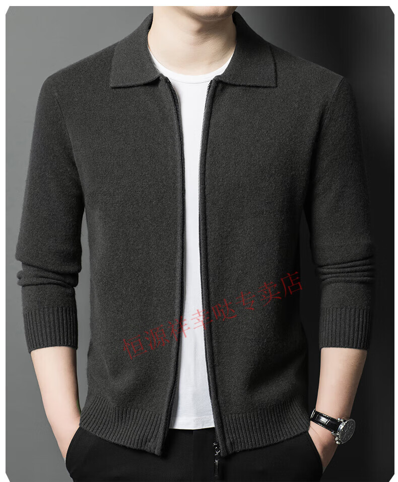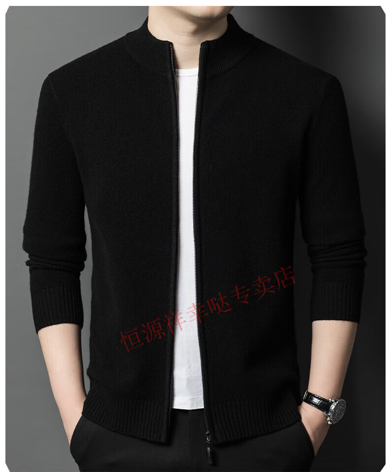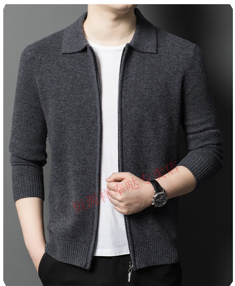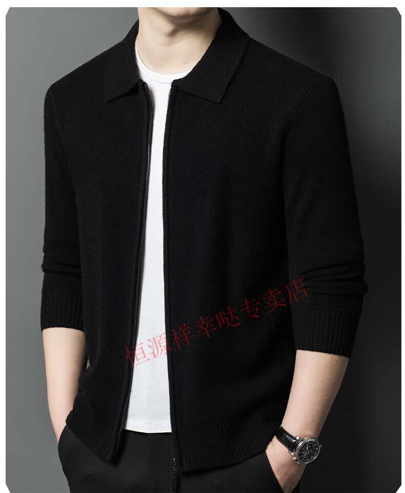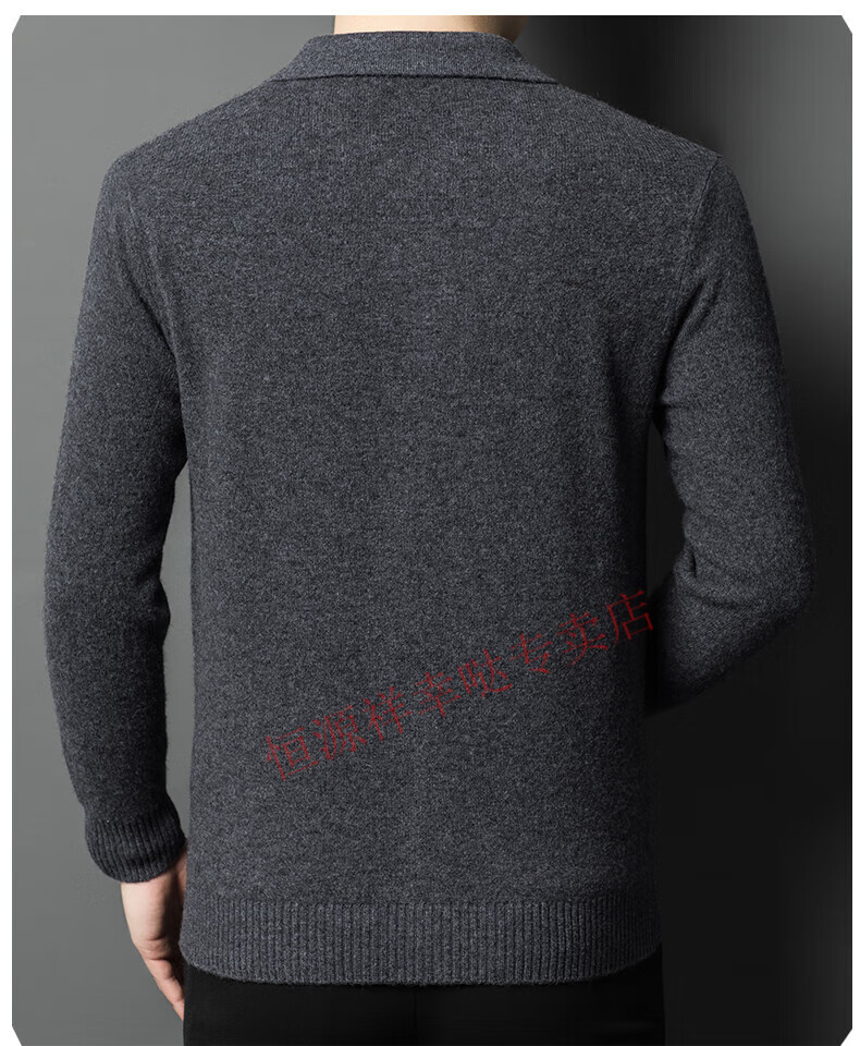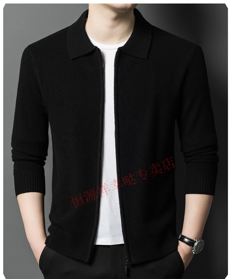 Hengyuanxiang wool sweater men's 100% pure wool zipper cardigan coat autumn and winter thickened lapel wool sweater men's black lapel 3301 pure new 100 180/XXL