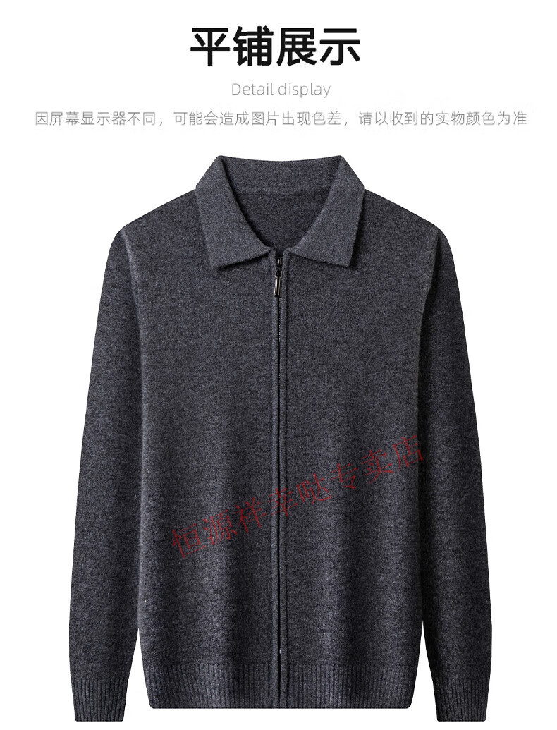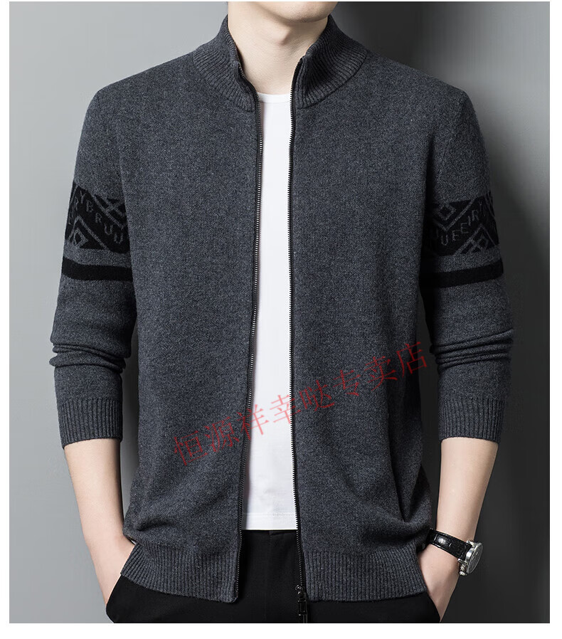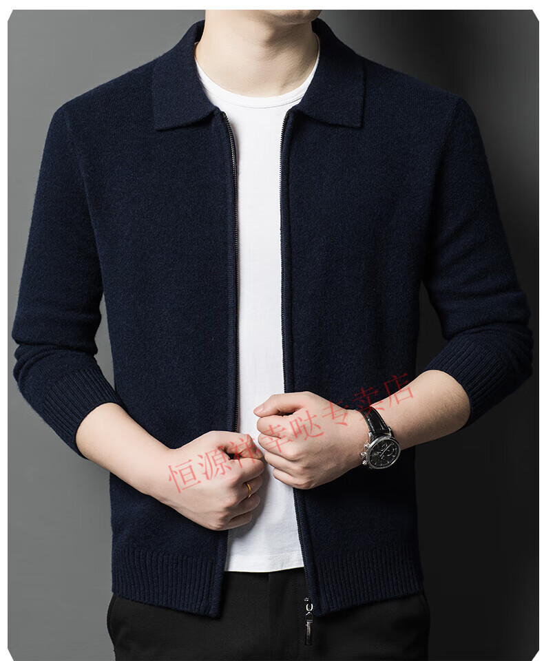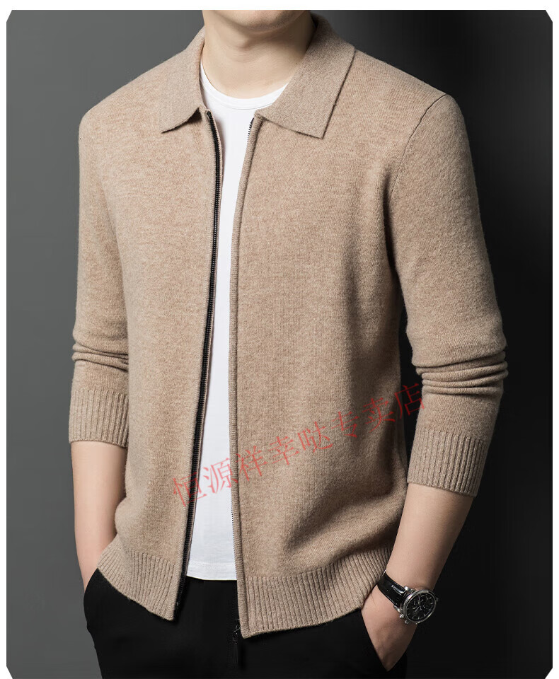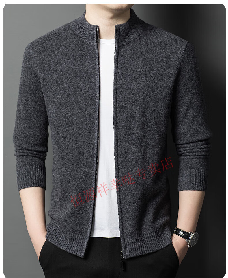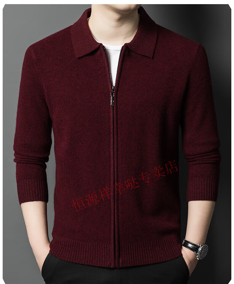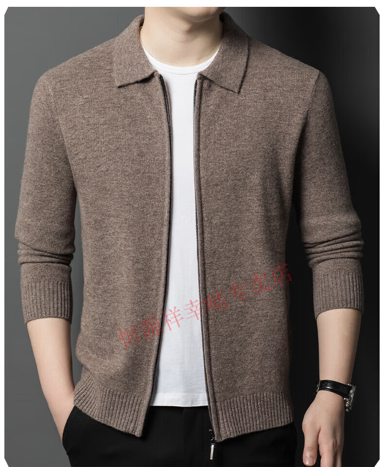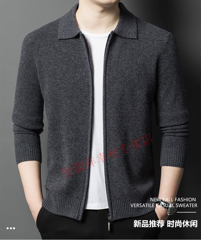 Hengyuanxiang wool sweater men's 100% pure wool zipper cardigan coat autumn and winter thickened lapel wool sweater men's black lapel 3301 pure new 100 180/XXL
