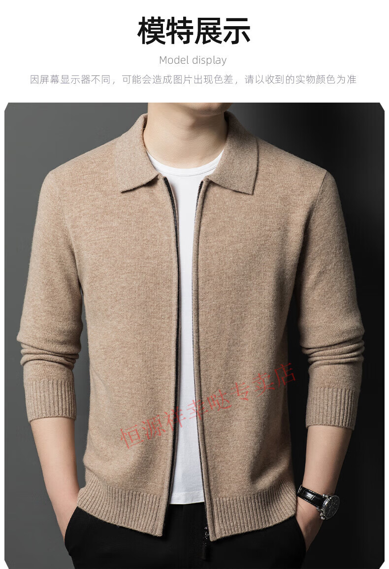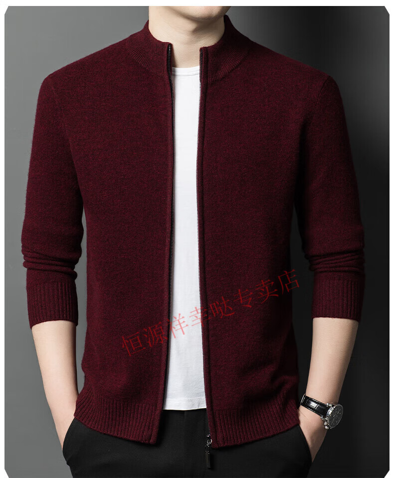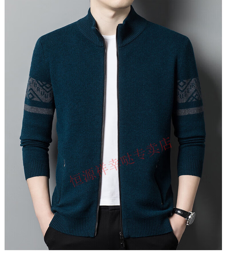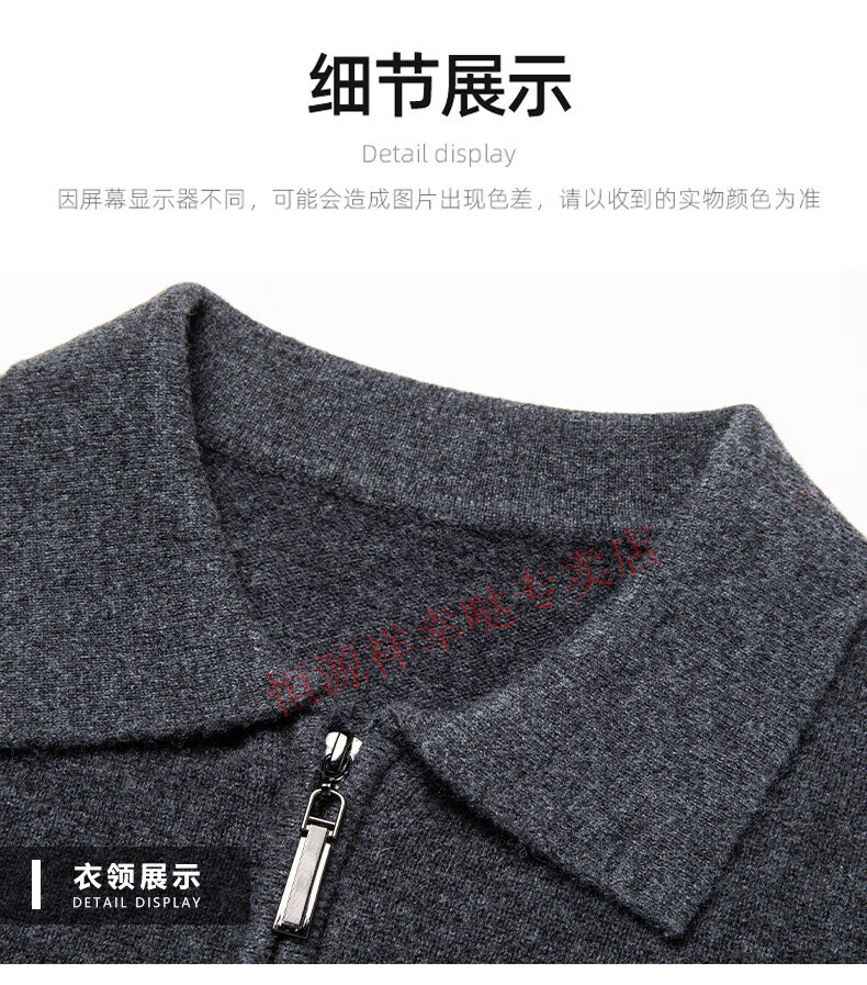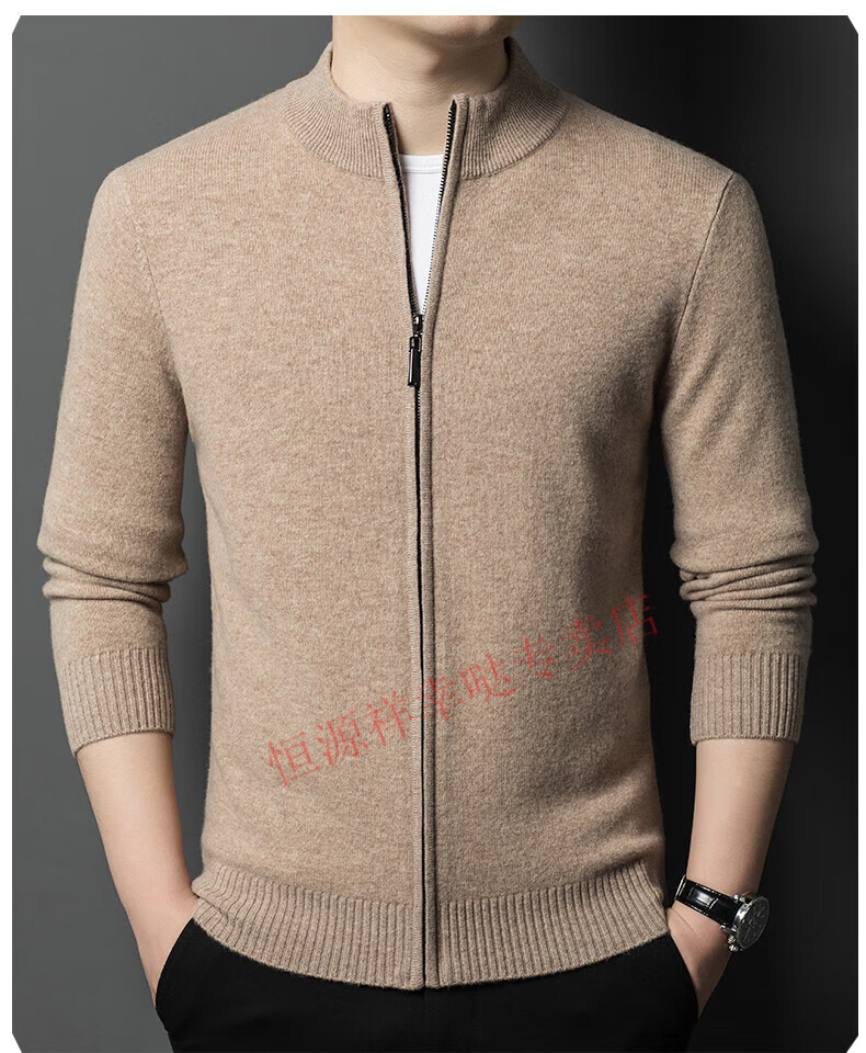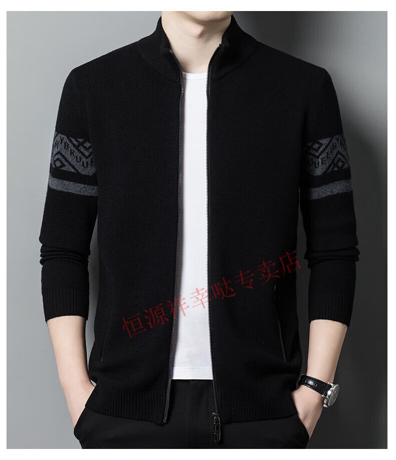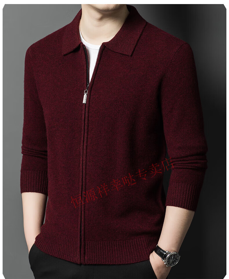Hengyuanxiang wool sweater men's 100% pure wool zipper cardigan coat autumn and winter thickened lapel wool sweater men's black lapel 3301 pure new 100 180/XXL