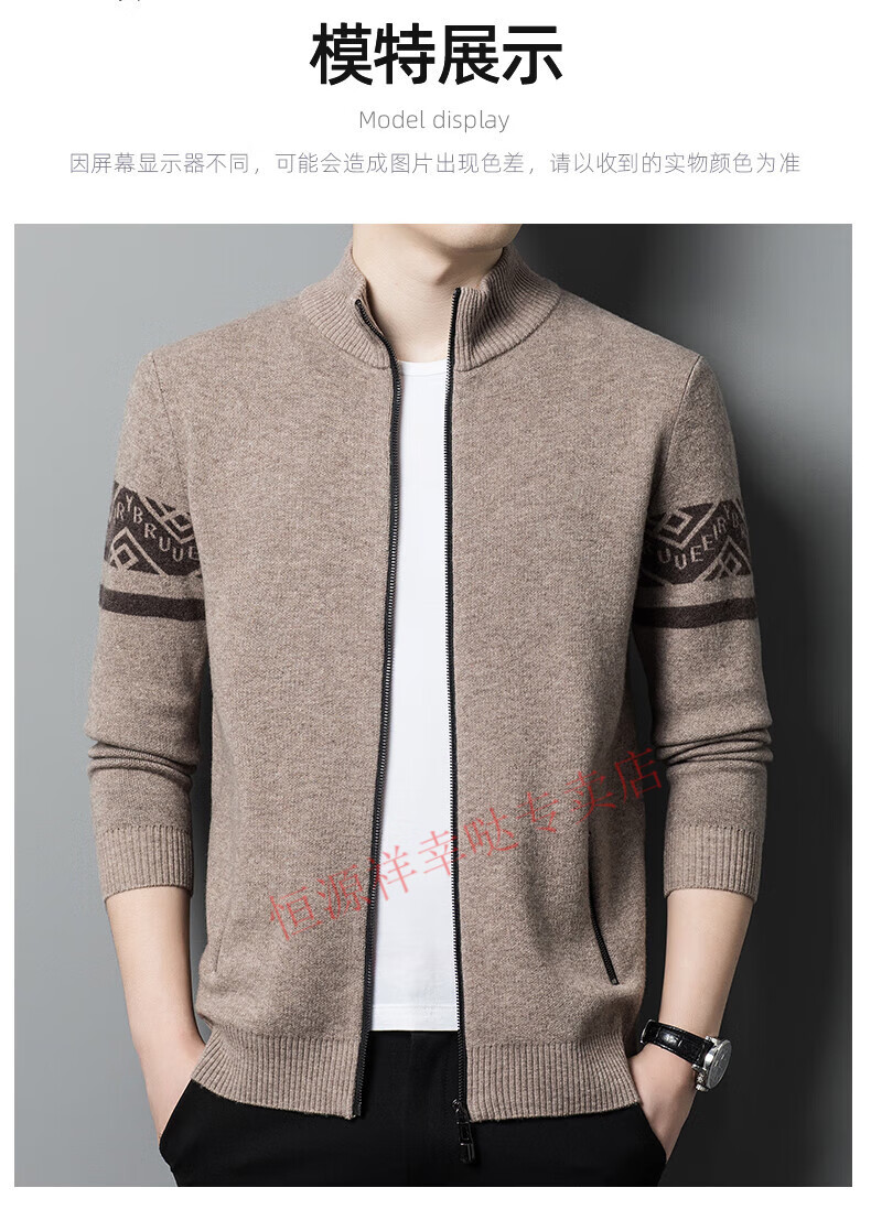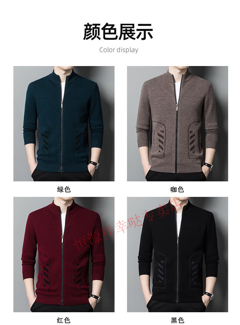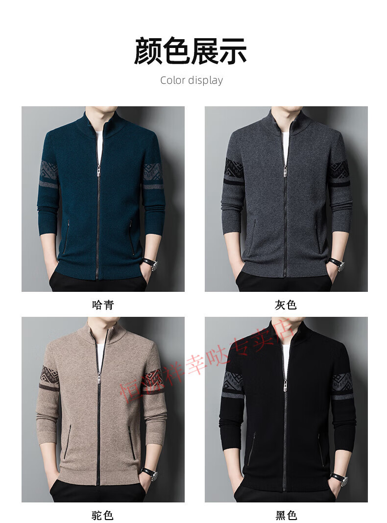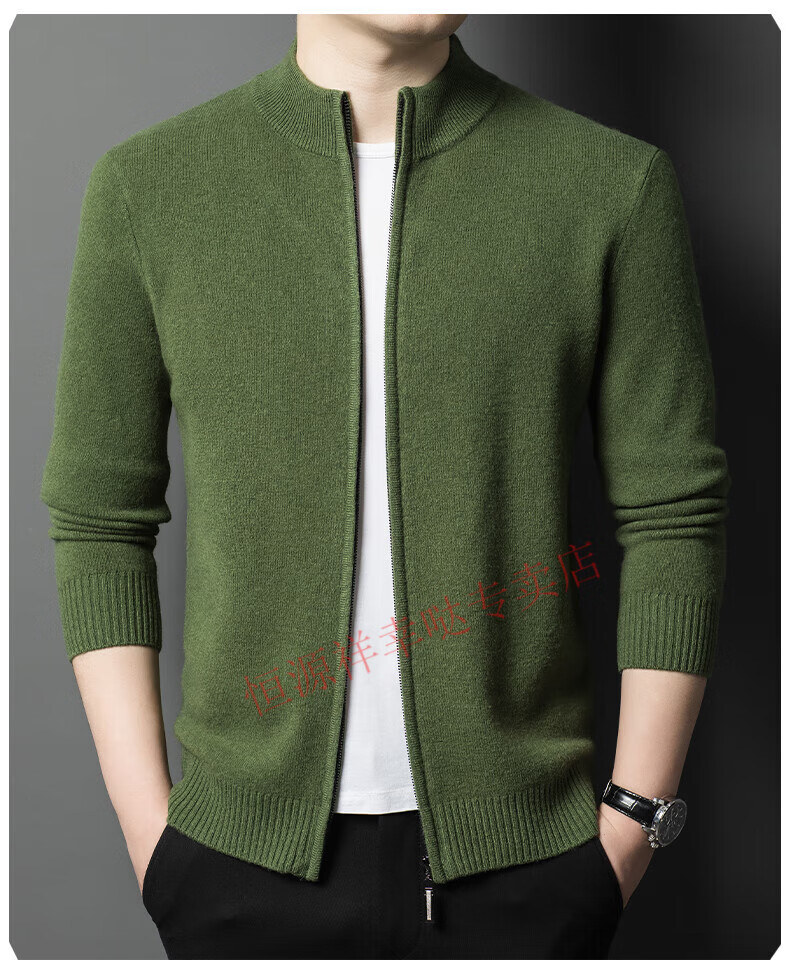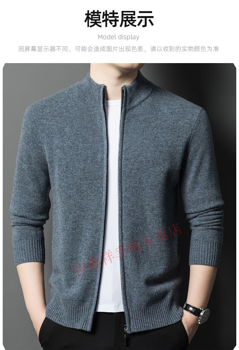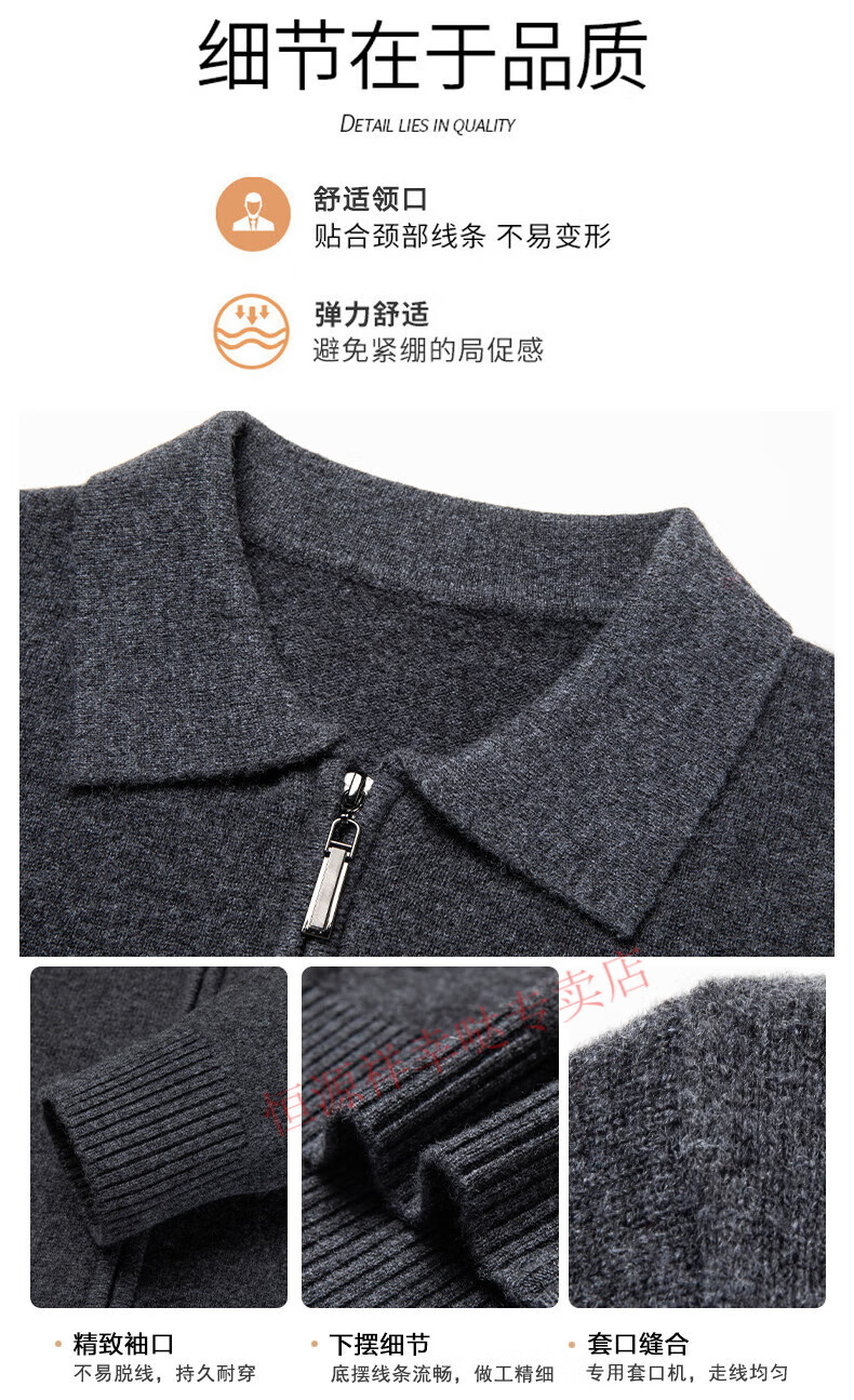 Hengyuanxiang wool sweater men's 100% pure wool zipper cardigan coat autumn and winter thickened lapel wool sweater men's black lapel 3301 pure new 100 180/XXL