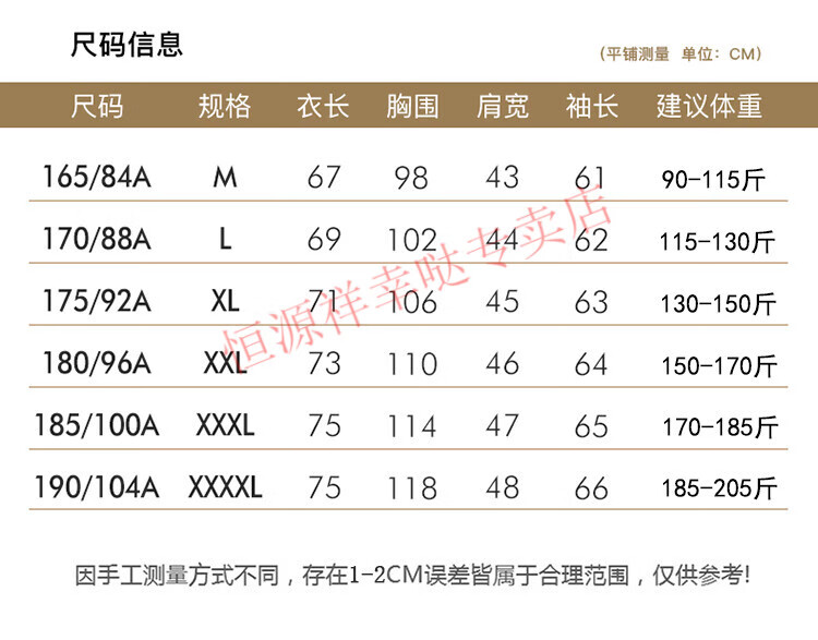 China (cm) 160-165/84-86 165-170 / 88-90 167-172 / 92-96 168-173 / 98-102 170-176 / 106-110