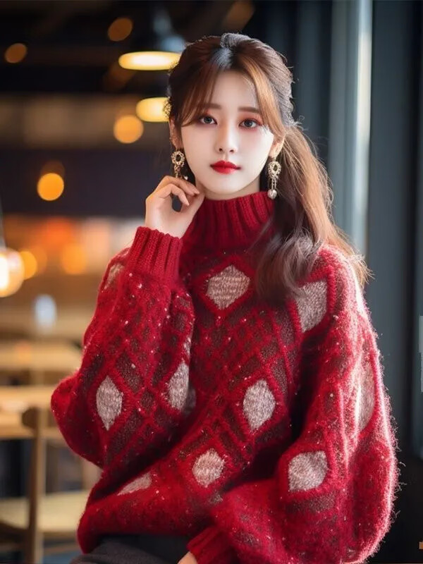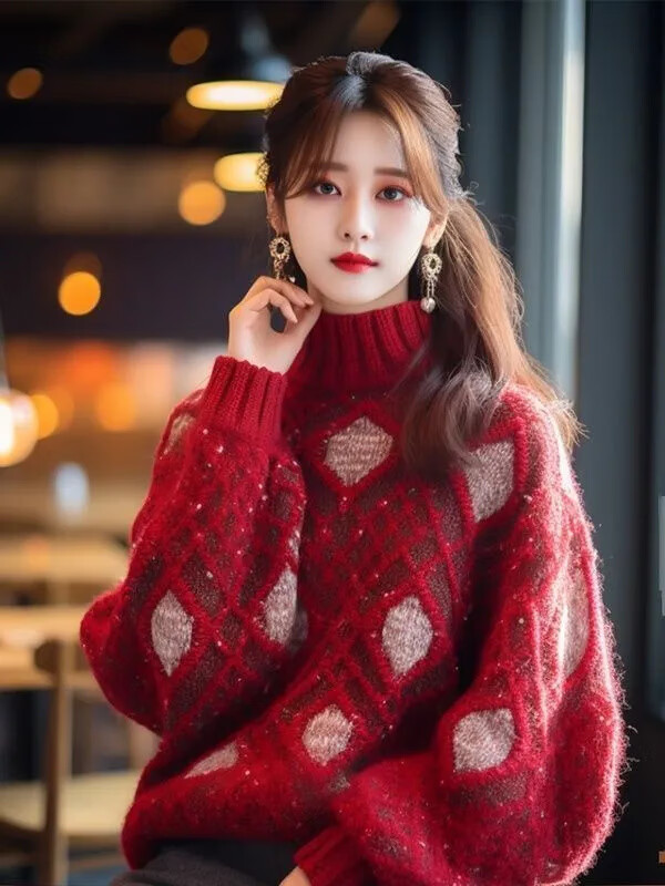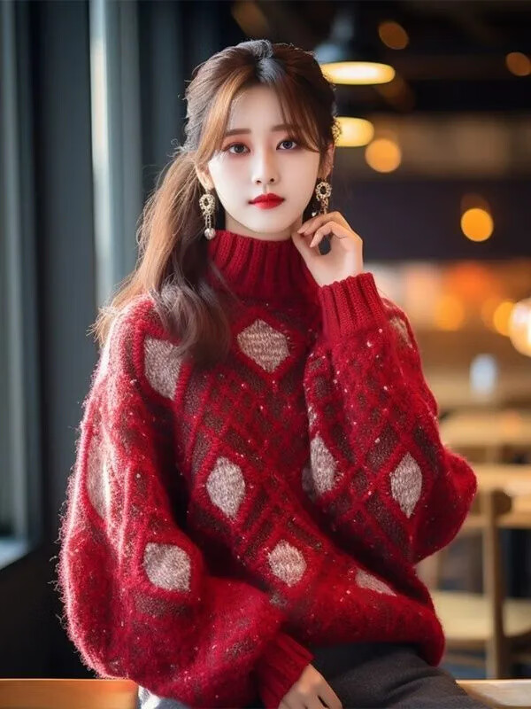 La Chapelle (La Chapelle) This year's popular beautiful red half-turtleneck sweater for women autumn and winter 2023 temperament small fragrance style sweater top Pure 100 automatic heating red thickened sweater (counter) Pure 100 automatic heating M