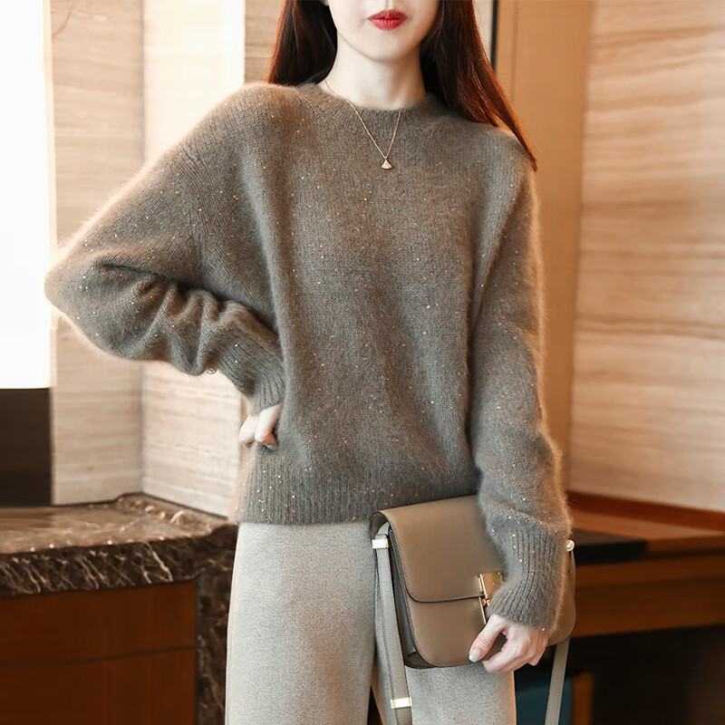 La Chapelle Small European Sweater Women's Chic Design Niche Tops Sweater Autumn and Winter Raccoon Velvet Pure 100 Automatic Heating Picture Color Pure 100 Automatic Heating M