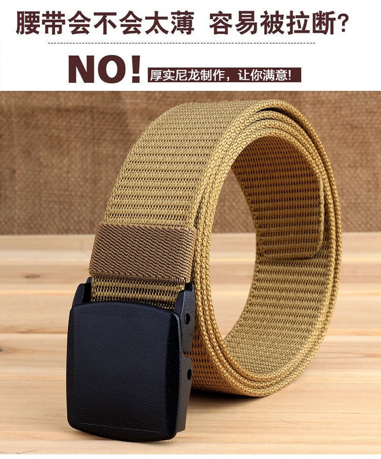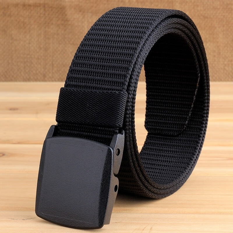 Manxinan iron-free nylon belt passes security inspection, metal-free trouser belt, outdoor smooth plastic buckle canvas belt for denim work, black, can pass security inspection, 120cm, length can be cut shorter