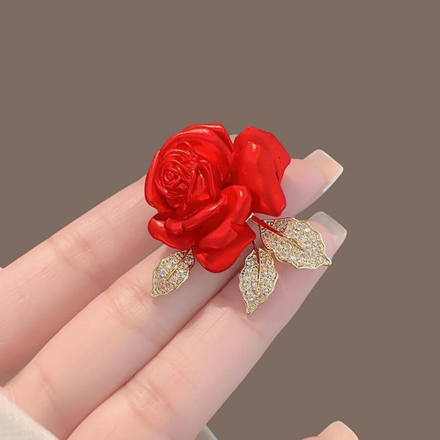 Mr. Ouyang's national style fashionable red rose brooch for women, exquisite retro corsage, temperament, flower coat brooch accessories, rose brooch A26-205
