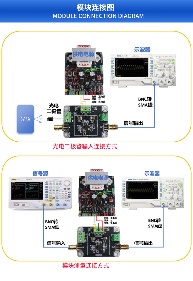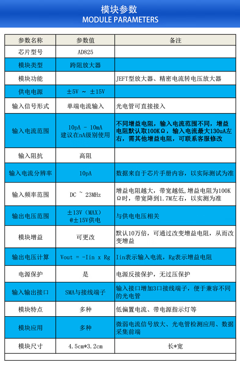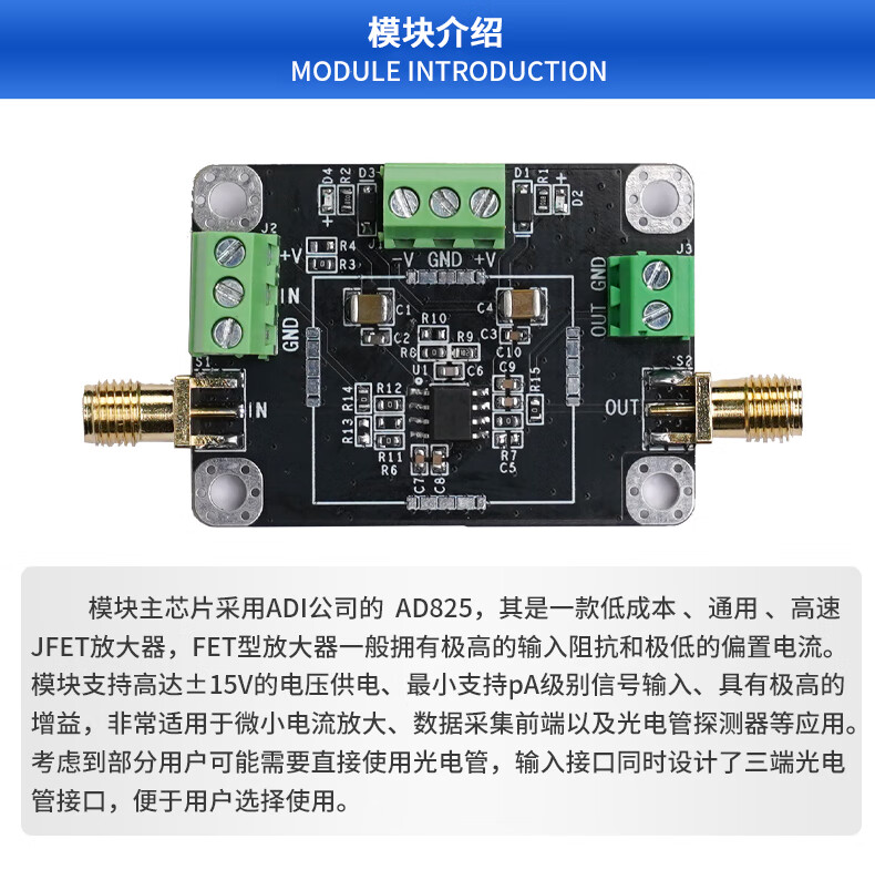 AD825 transimpedance TIA amplifier module nA high speed IV photocurrent to voltage APD PIN photodetector customized