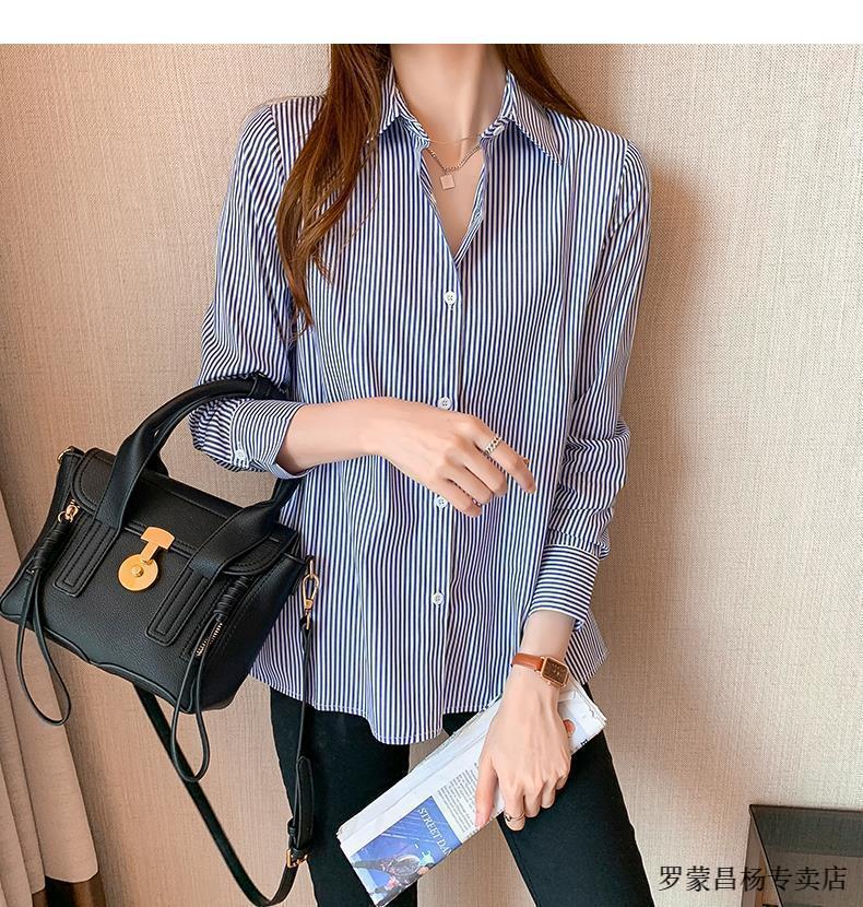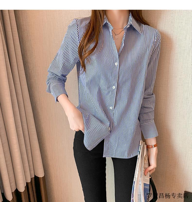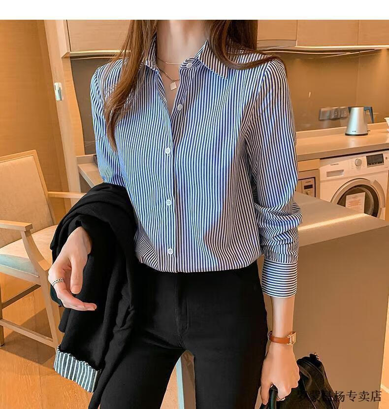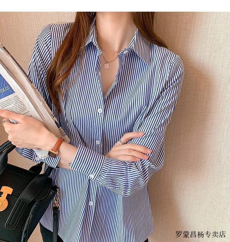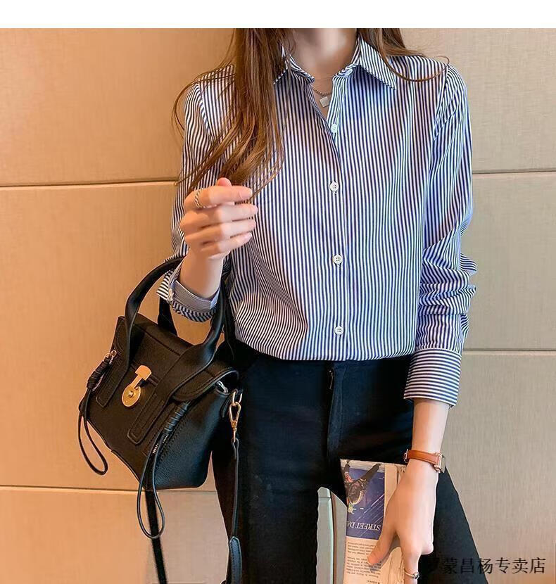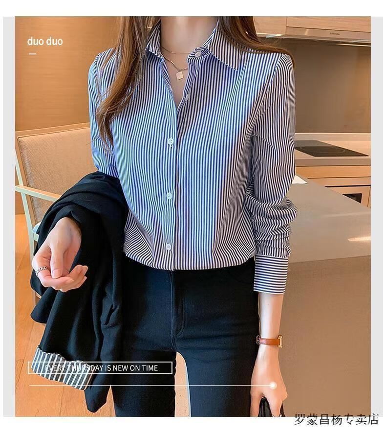 ROMON plus velvet striped shirt for women 2026 autumn new blue design niche shirt autumn and winter long-sleeved tops versatile blue and white stripes (plus/velvet style) XL