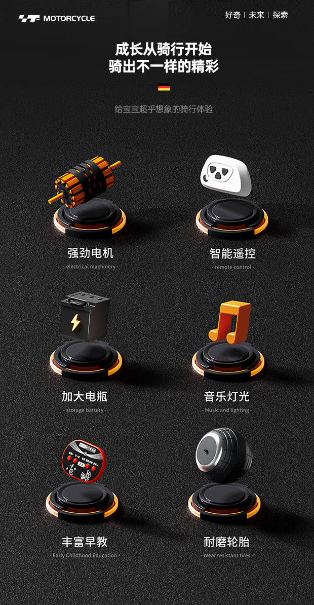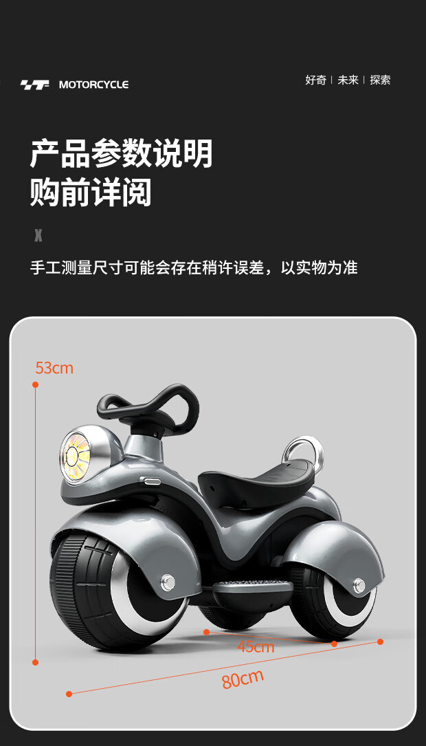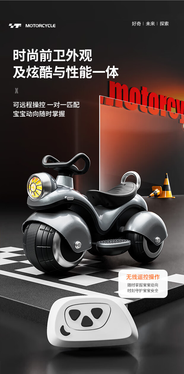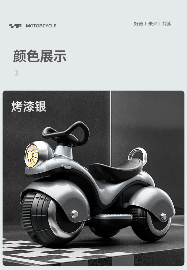Beibele children's electric car motorcycle can sit on a toy car for children 1-3-6 years old baby three-wheeled battery car for boys and girls single drive powder 6V4+early education music+Bluetooth 1-7 years old birthday and Children's Day gift