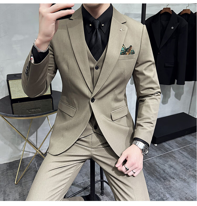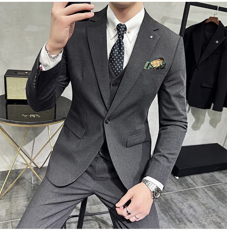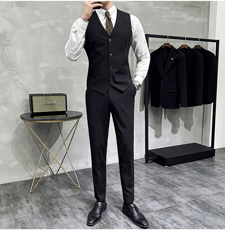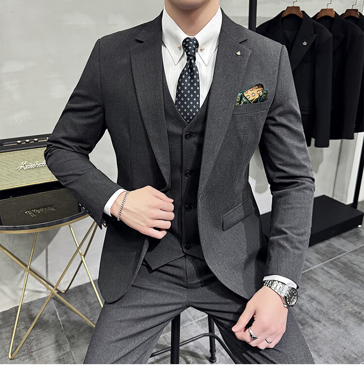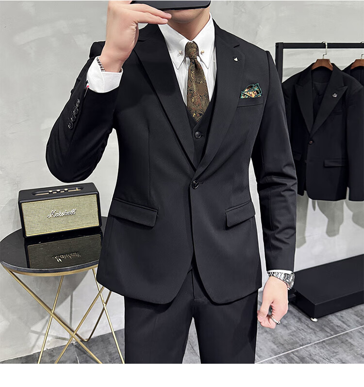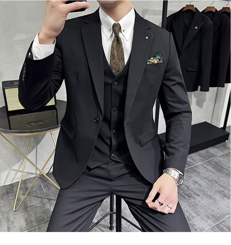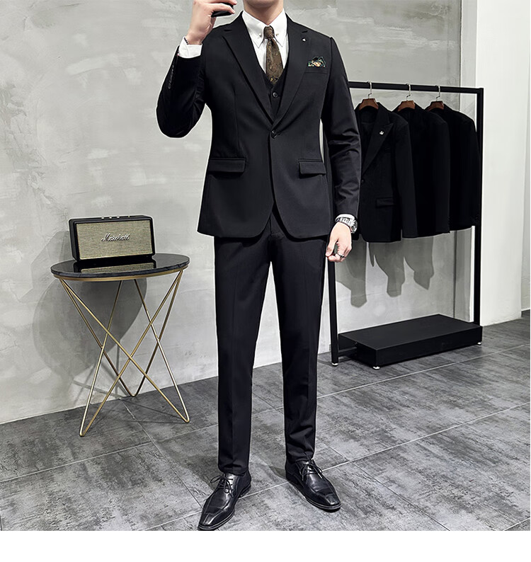 Pierre Cardin Groom Suit Men's Wedding Dress Casual Professional Formal British Slim Fit Small Suit Jacket Black Three-piece Suit + Vest + Pants 54/2XL 135-148Jin Jin equals 0.5 kg Wear