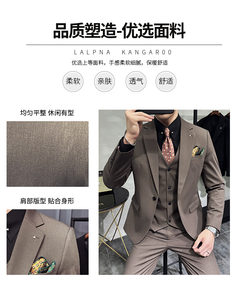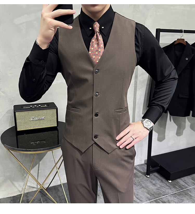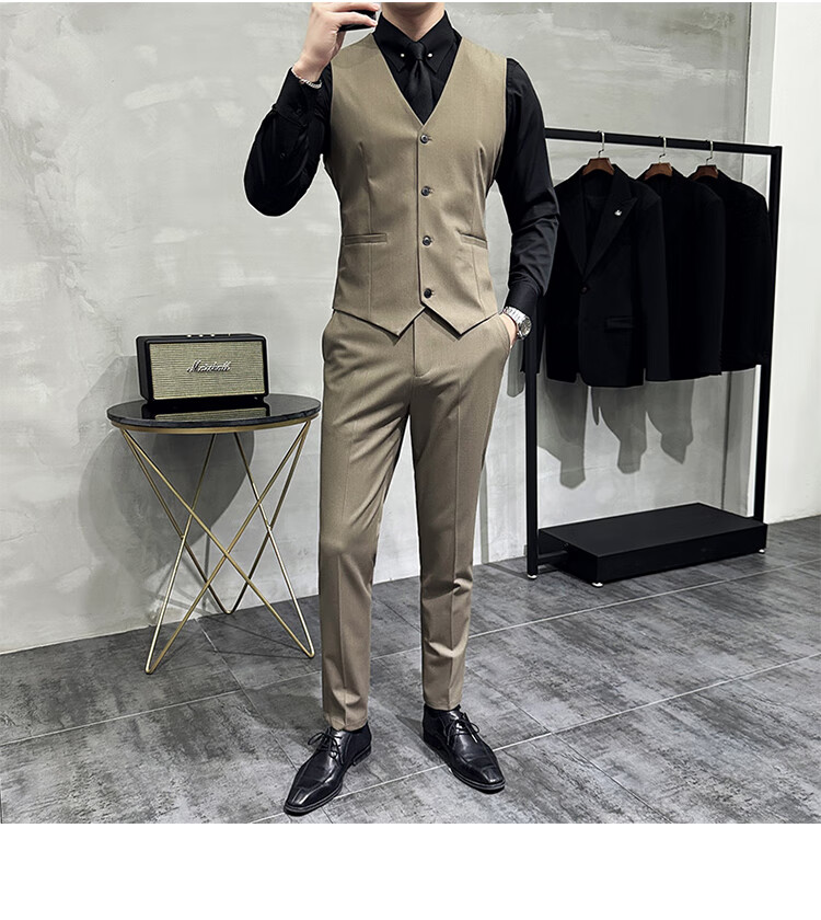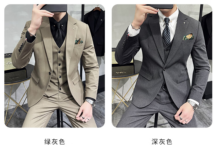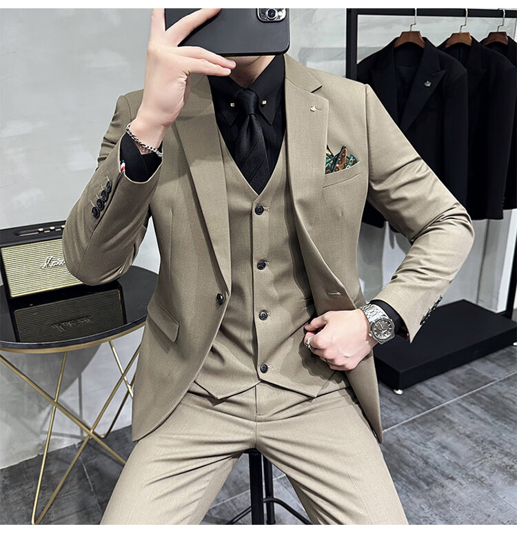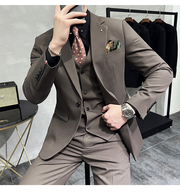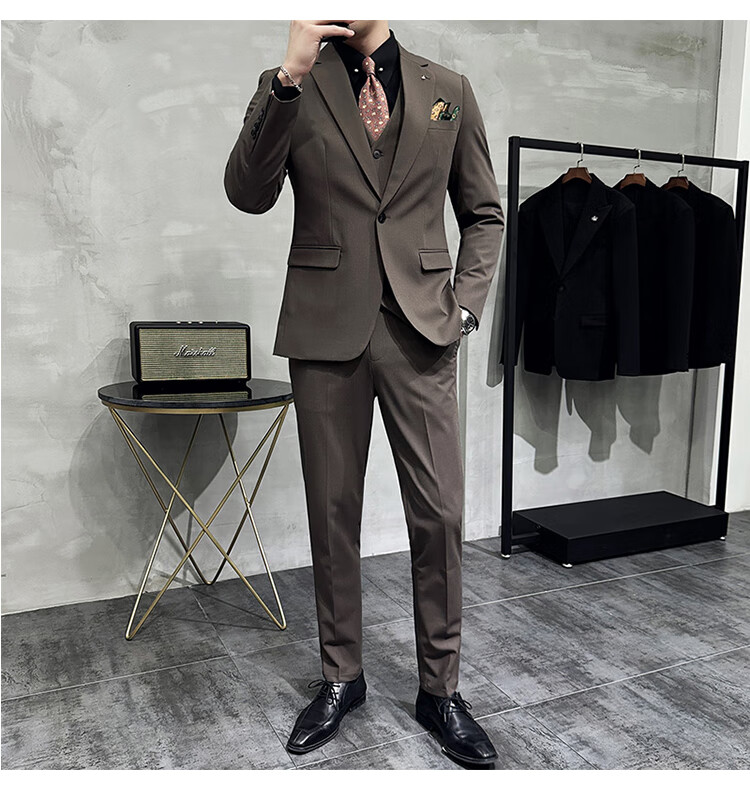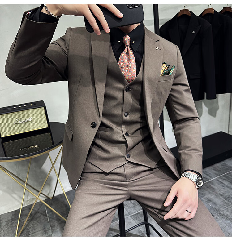 Pierre Cardin Groom Suit Men's Wedding Dress Casual Professional Formal British Slim Fit Small Suit Jacket Black Three-piece Suit + Vest + Pants 54/2XL 135-148Jin Jin equals 0.5 kg Wear