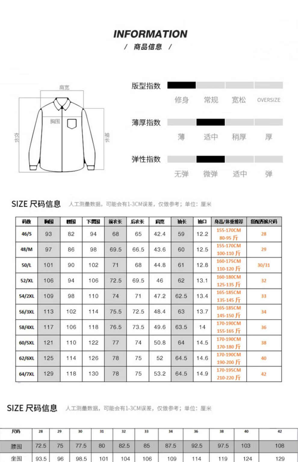 Size (cm) 42 44 46 48 50