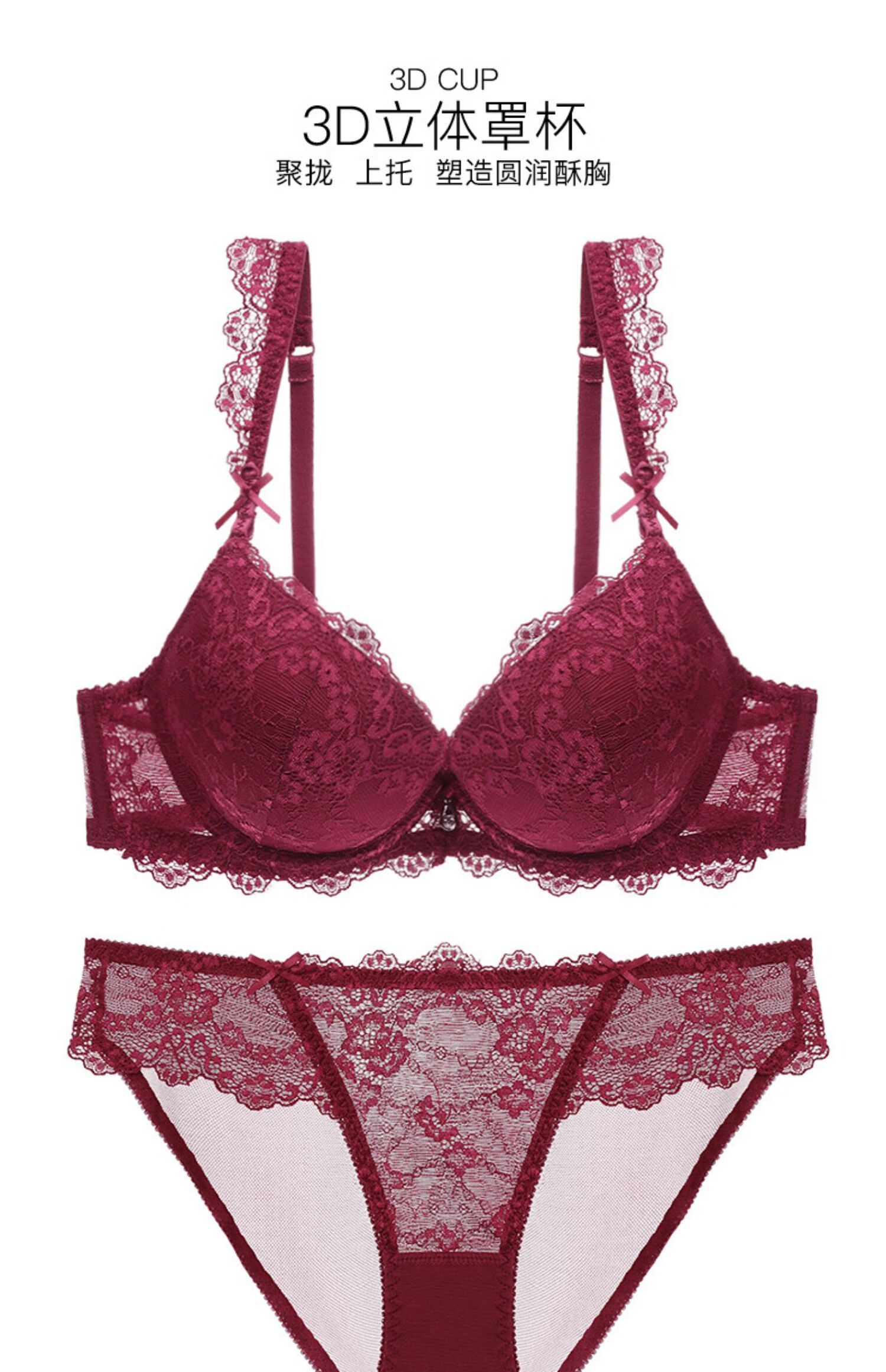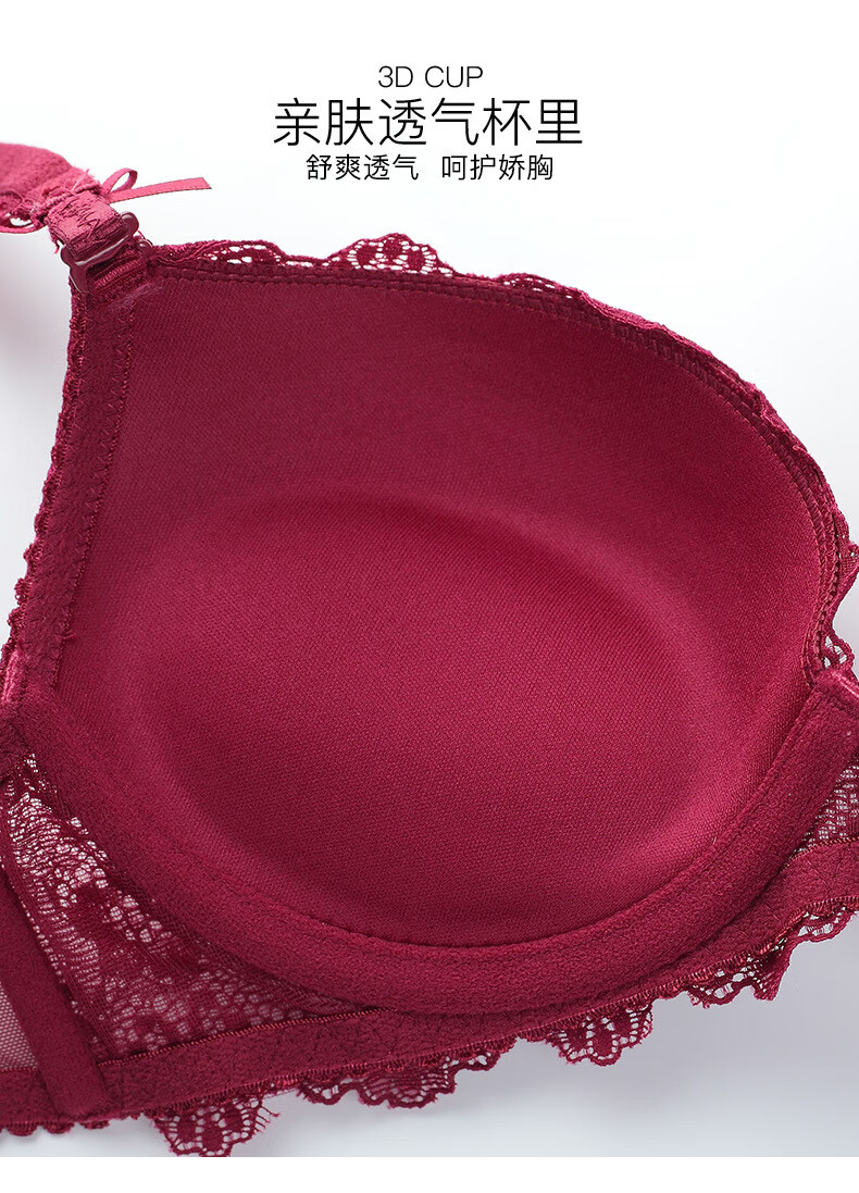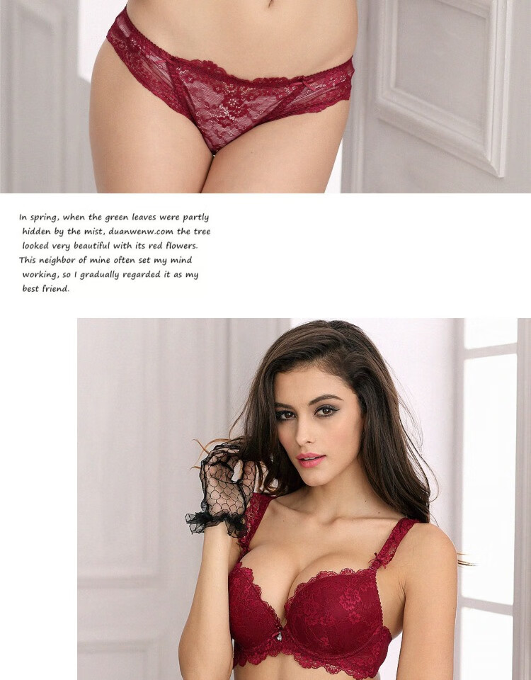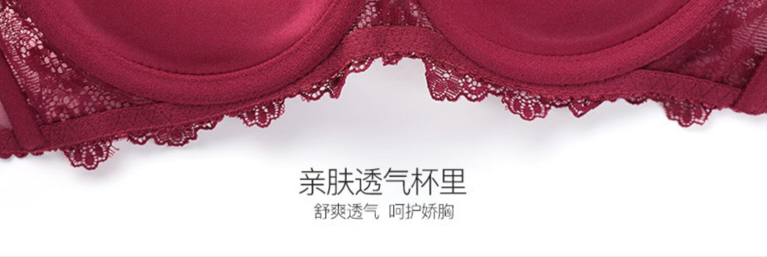Victoria Palace Sexy Bra Set Red Bra Underwear Small Breast Gathering Lace Adjustable Breast Reducing Bra Set Burgundy 38/85C