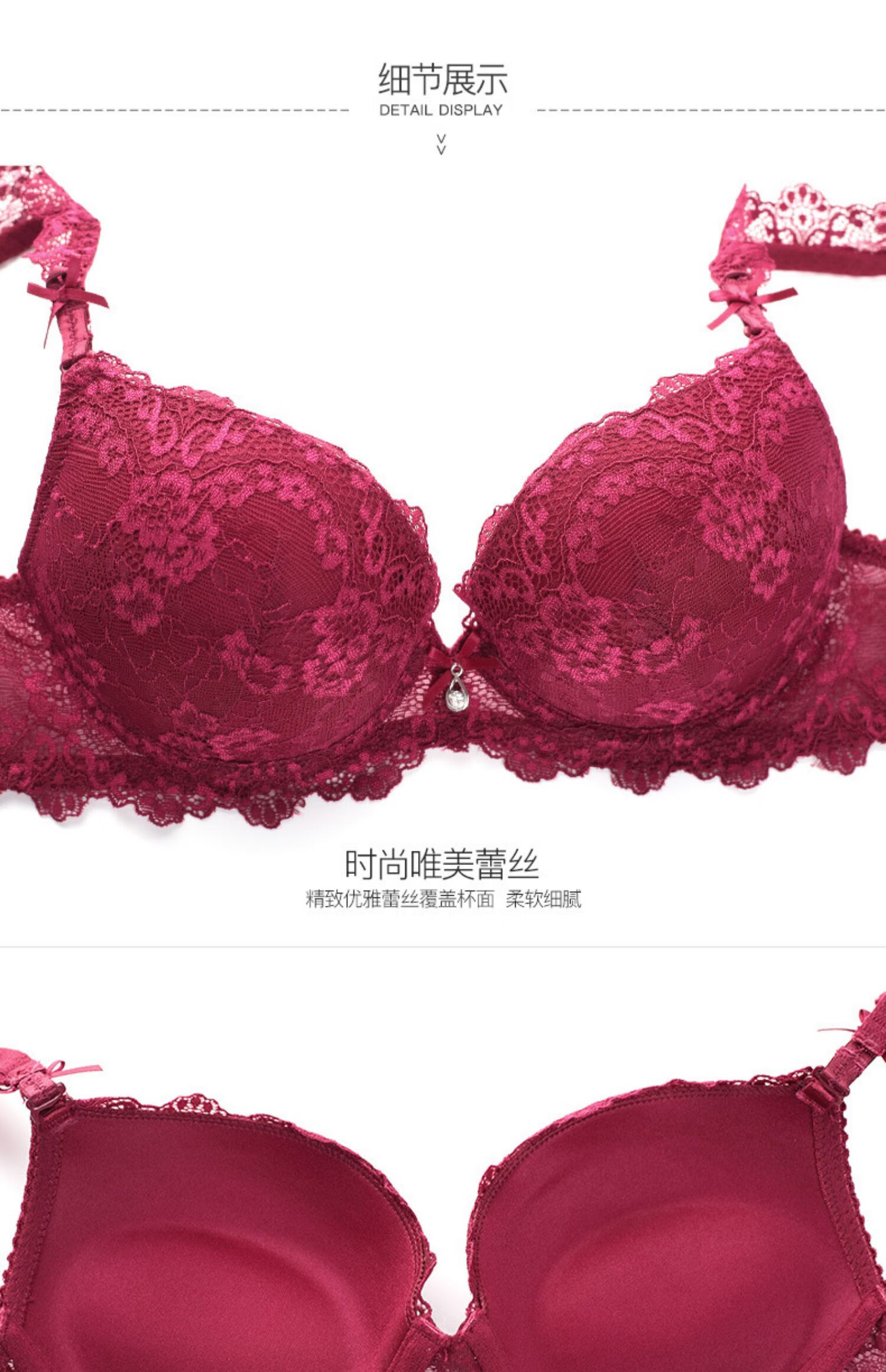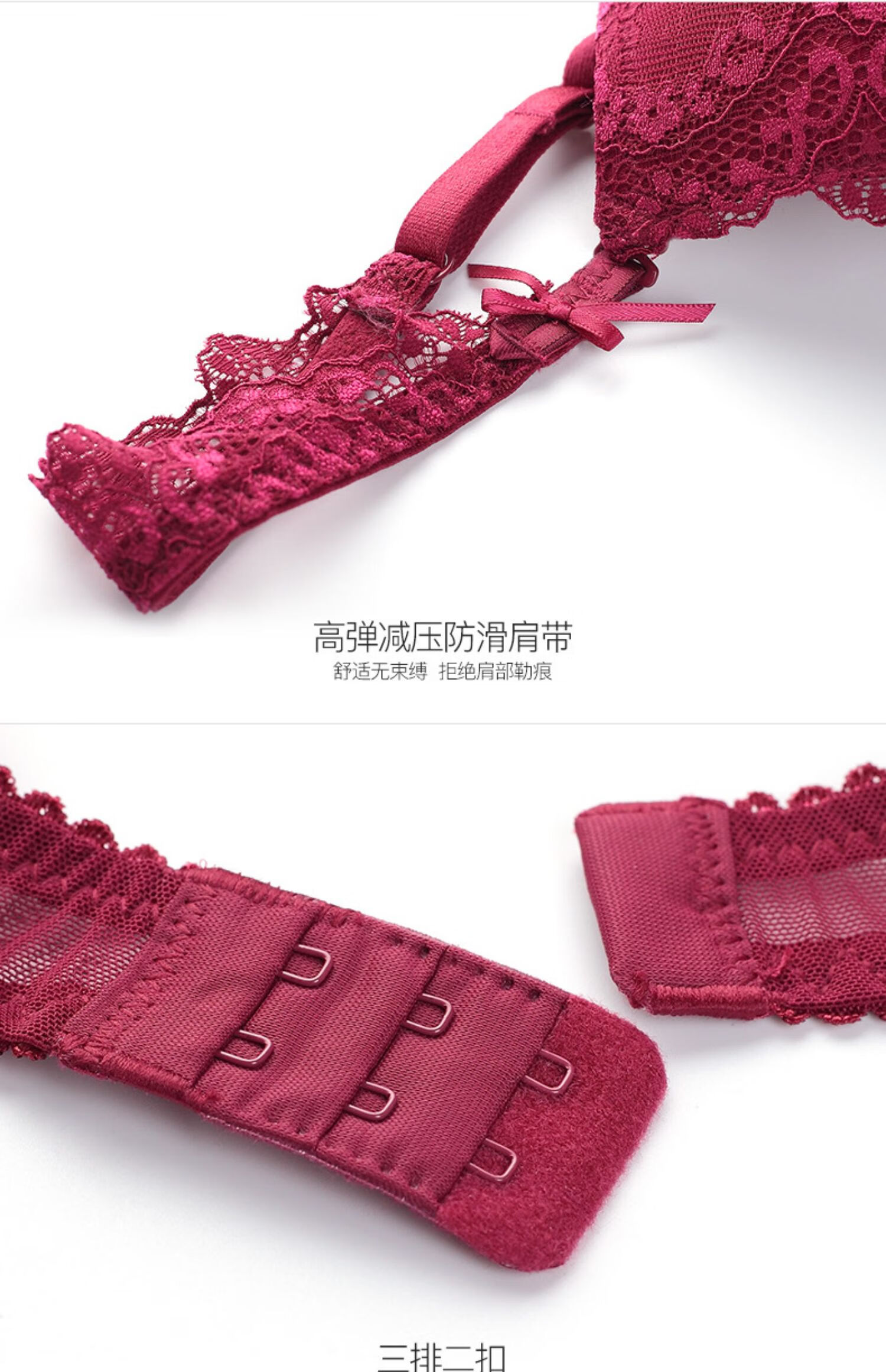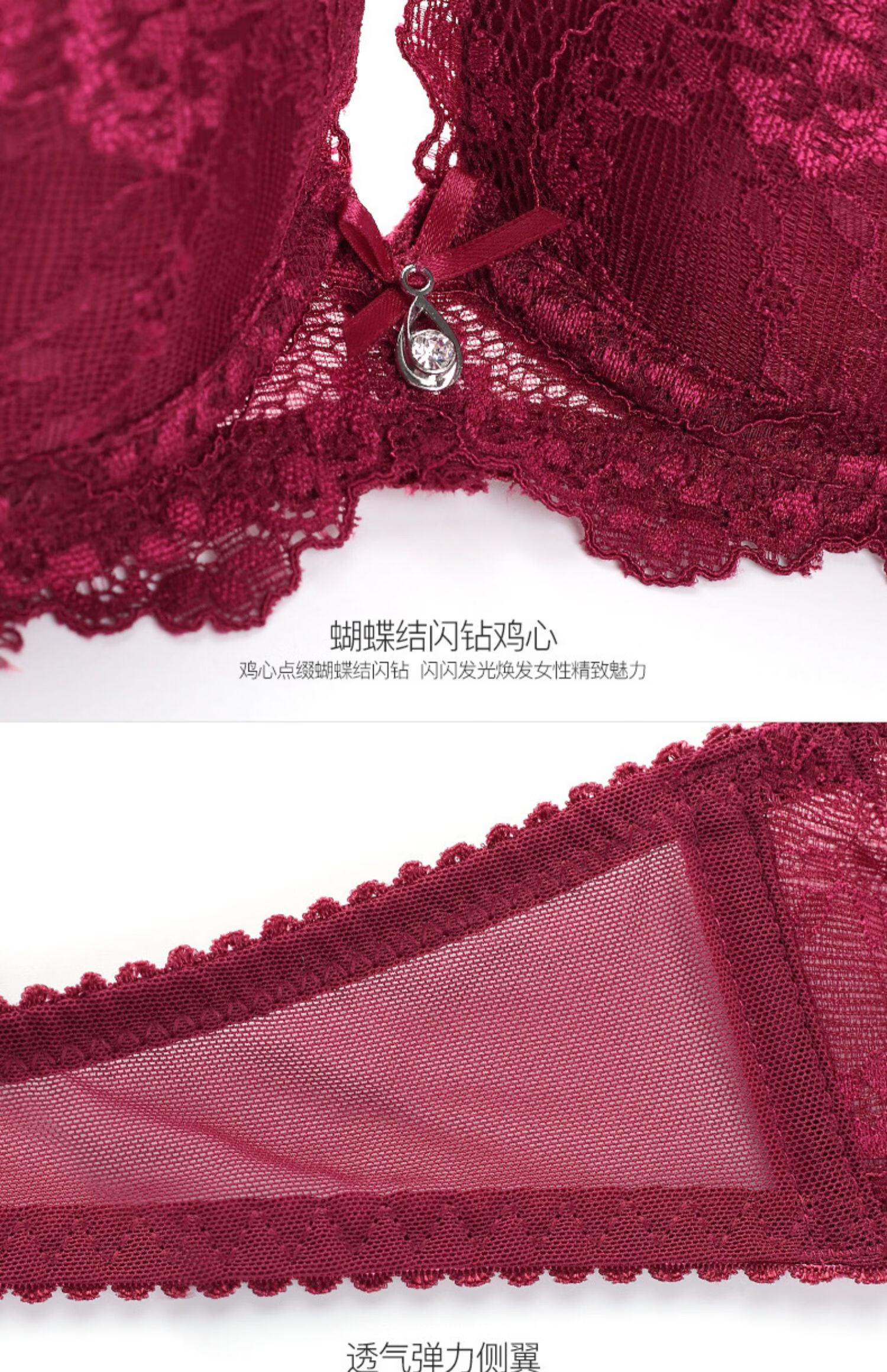 Victoria Palace Sexy Bra Set Red Bra Underwear Small Breast Gathering Lace Adjustable Breast Reducing Bra Set Burgundy 38/85C